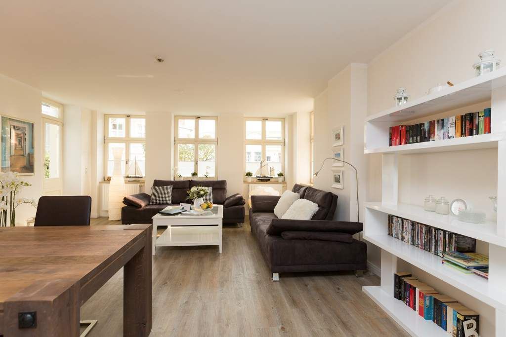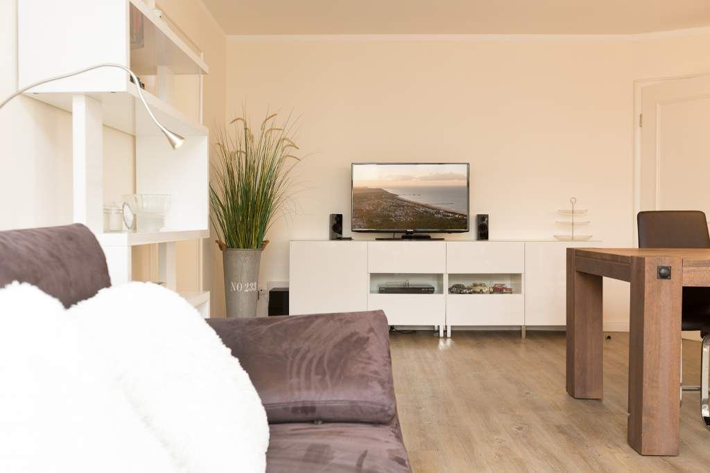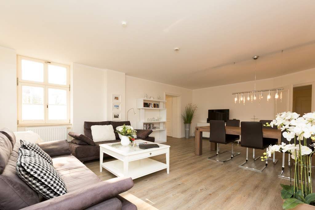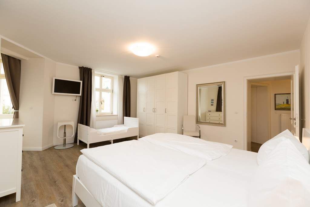 3-Raum-Ferienwohnung (100 qm) im EG für 2-4 Erwachsene und 1 Kind bis 12 Jahre, Wohnraum mit großzügiger Sitzgruppe, großer Esstisch, separate Küche, ein Schlafzimmer mit Doppelbett & Jugendbett ( 1,70m x 0,80 m) & TV, ein Schlafzimmer mit Doppelbett (auch getrennt stellbar) mit TV, Terrasse mit Gartenmöbeln, Bad mit großer Regenwalddusche & WC, 1 PKW-Stellplatz am Haus Für Ihren Komfort sind die Betten bei der Anreise bezogen und Handtücher liegen bereit (Erstausstattung). Das WLAN-Netz ist kostenfrei nutzbar.