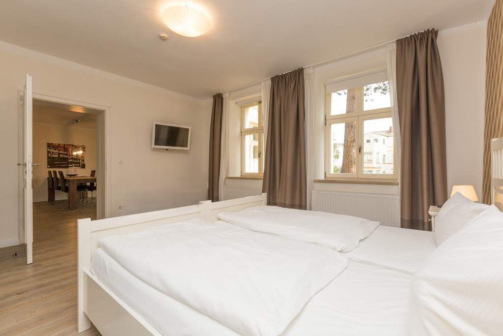 In exponierter Lage im Seebad Heringsdorf liegt in der Klenzestraße die restaurierte Villa Schlossbauer und deren Remise. Großzügige, helle Räume und Marmorbäder sind ebenso selbstverständlich wie eine gut ausgestattete Küche und hochwertiges Mobiliar in Wohn- und Schlafräumen. In der Villa Schlossbauer ist ein Fahrstuhl integriert (nicht in der Remise) der Ihnen ein komfortables erreichen der Wohnung garantiert. Ein Pkw-Stellplatz steht zur Verfügung. Das WLAN-Netz im Haus kann kostenfrei genutzt werden.