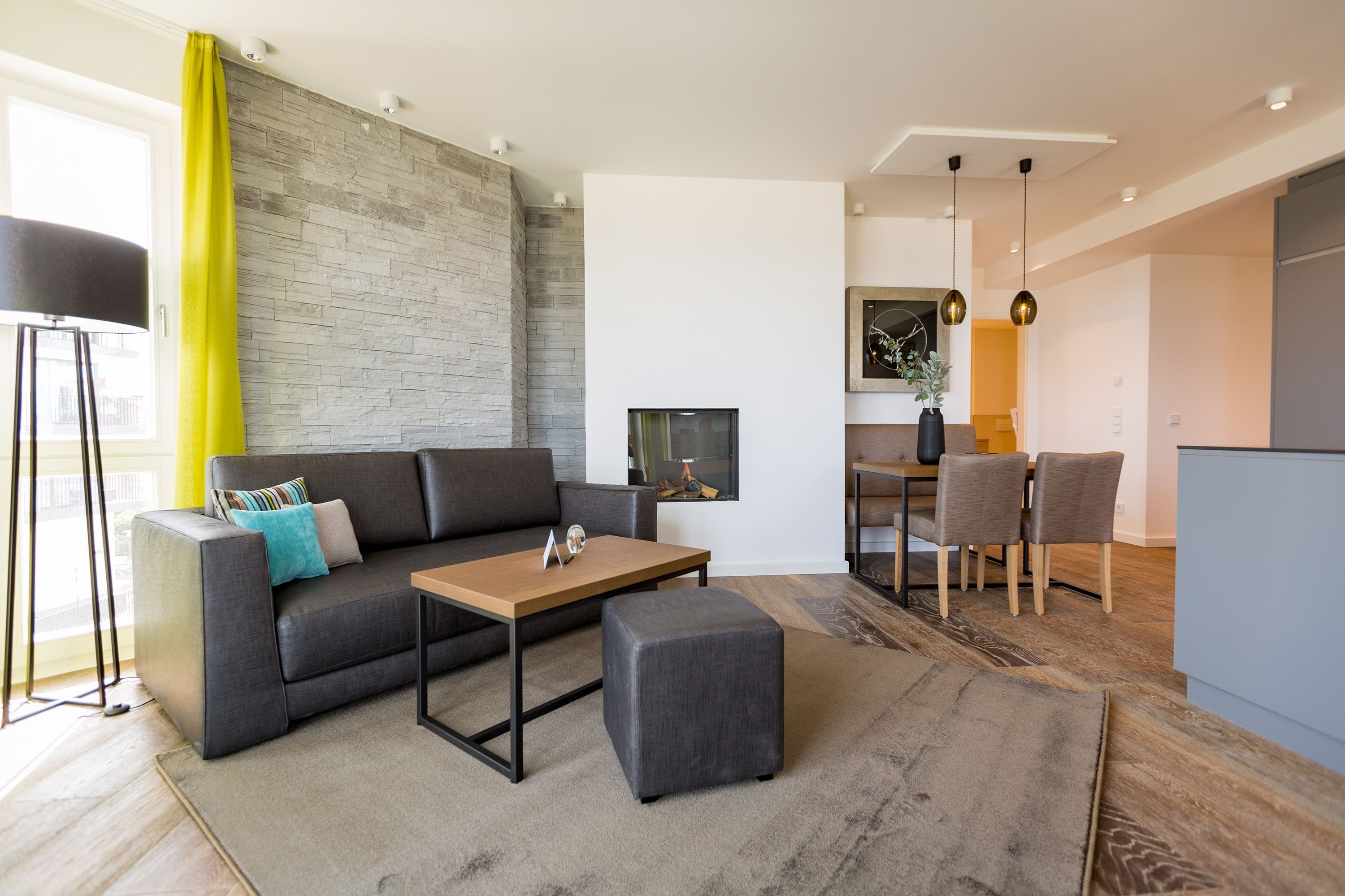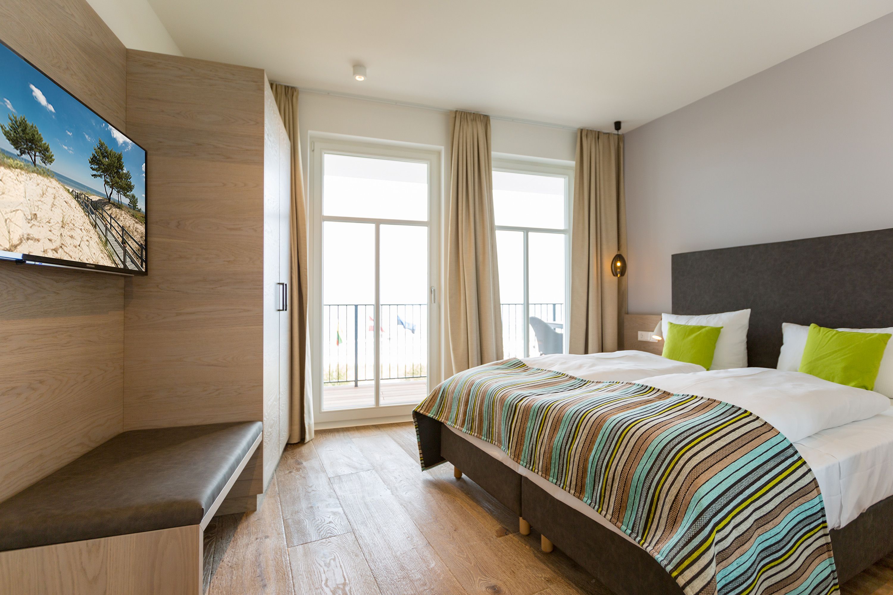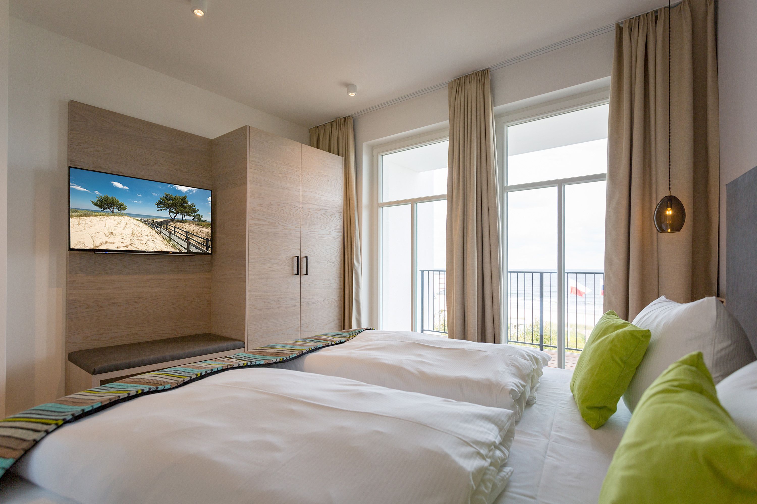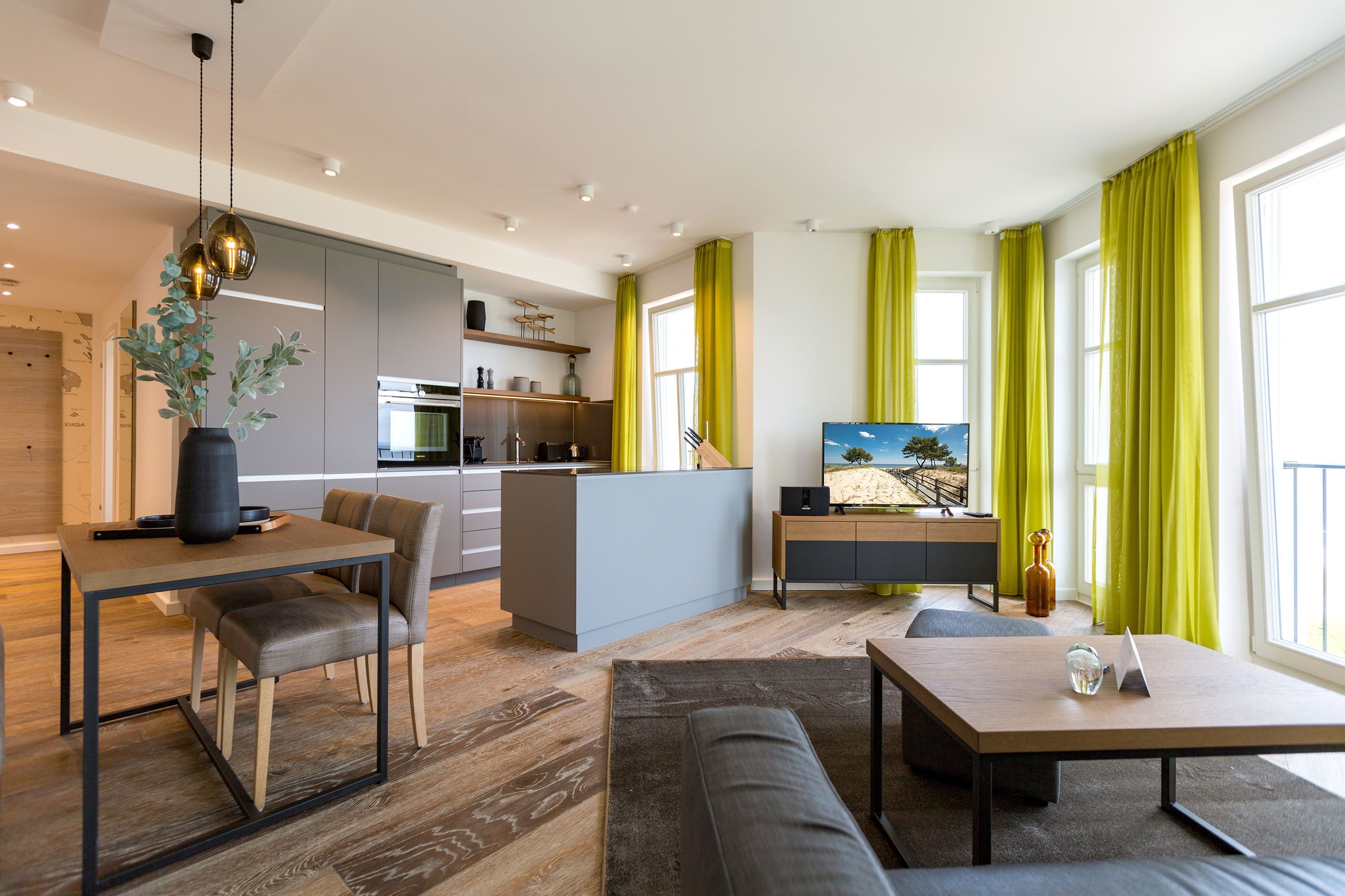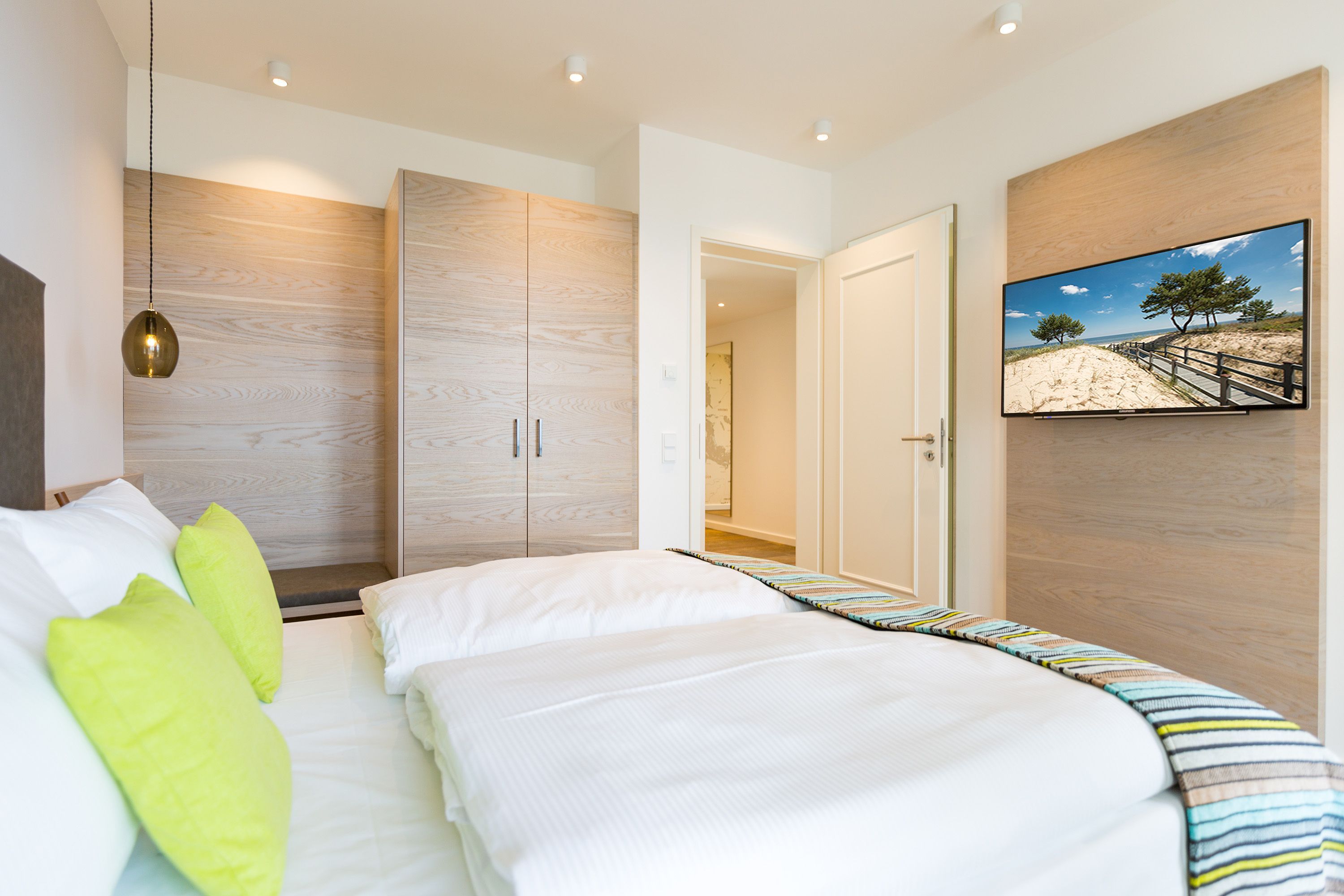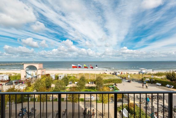 Leiden Sie auch an Meersehnsucht? In diesem Urlaubsparadies im 2. Stock des Beachhouses können Sie auf 74 Quadratmetern mit bis zu vier Personen und einem Kleinkind (bis drei Jahre im Kinderreisebett) Ihre Liebe zur Ostsee mit direktem Blick auf das endlose Blau genießen. Näher dran ist nur noch am Strand. Ob im wunderschön eingerichteten Wohnzimmer oder einem der beiden Schlafzimmer das Meer legt sich Ihnen in allen drei Zimmern zu Füßen. Von den beiden Balkonen (8 und 6 Quadratmeter) können Sie es schon morgens zum Frühstück genießen. Dann glitzert die Sonne auf den Wellen als lägen tausend Diamanten auf dem Wasser. In der offenen Wohnküche finden Sie alles, was Sie zum Zubereiten eines ausgiebigen Frühstückes, aber auch zum Kochen, Braten oder Backen brauchen. Hochwertige Markengeräte wie Geschirrspüler, Backofen, eine Kochinsel, Kühlschrank oder Mikrowelle erleichtern Ihnen das Zubereiten ungemein. Edles Geschirr sorgt für einen noblen Rahmen. Ist das Wetter einmal nicht zum Draußenessen geeignet, lädt der schöne Esstisch zum Einnehmen der Mahlzeiten ein. Das Wohn-Esszimmer strahlt durch seine großen Fenster, die viel Licht einlassen, die angenehmen und wohl temperierten Farbakzente und die exklusiven Design-Möbel eine harmonisierende und entspannende Atmosphäre aus. Auf dem bequemen Sofa lässt es sich wunderbar Relaxen. Für viel Gemütlichkeit sorgt ein Gas-Kamin. Zur Unterhaltung steht Ihnen ein großer Flat-TV sowie eine Hi-Fi-Anlage mit Bluetooth-Funktion zur Verfügung. Das WLAN ist in der Wohnung kostenfrei. Komfortable Boxspringdoppelbetten (1,80 m x 2,00 m und 1,60 m x 2,00 m) werden Ihren Träumen Flügel verleihen und die Urlaubsnächte zu einem echten Vergnügen machen. Ein jedes der beiden Schlafzimmer hat einen eigenen Balkon, einen Flat-TV und einen geräumigen Schrank. Das Appartement verfügt über zwei Bäder, in denen Sie jeweils eine schöne und ebenerdige Regendusche, einen Waschtisch mit großem Spiegel und ein WC vorfinden. Zu einer kleinen Wellness-Auszeit wird Ihr Ostseeurlaub außerdem. Denn im Masterbad erwartet Sie zudem eine Finnische Sauna. Da werden sogar die Schlechtwettertage an der Ostsee zu wunderbar entspannenden Kuscheltagen. Zum Waschen Ihrer Urlaubsgarderobe gibt es in einem separaten Hauswirtschaftsraum einen Wasch-Trockner. Kommen Sie also einfach an und genießen Sie Ihre Auszeit am Meer. Den Rest machen wir. Die Betten sind bei Ihrer Anreise bereits bezogen und Handtücher liegen bereit. In der modernen Tiefgarage ist für Sie der Stellplatz Nr. 11 im Doppelparker unten (max. Höhe 1,85 m, max. Länge 5,10 m, max. Breite 2,50 m, max. Last 2.600 kg) reserviert.