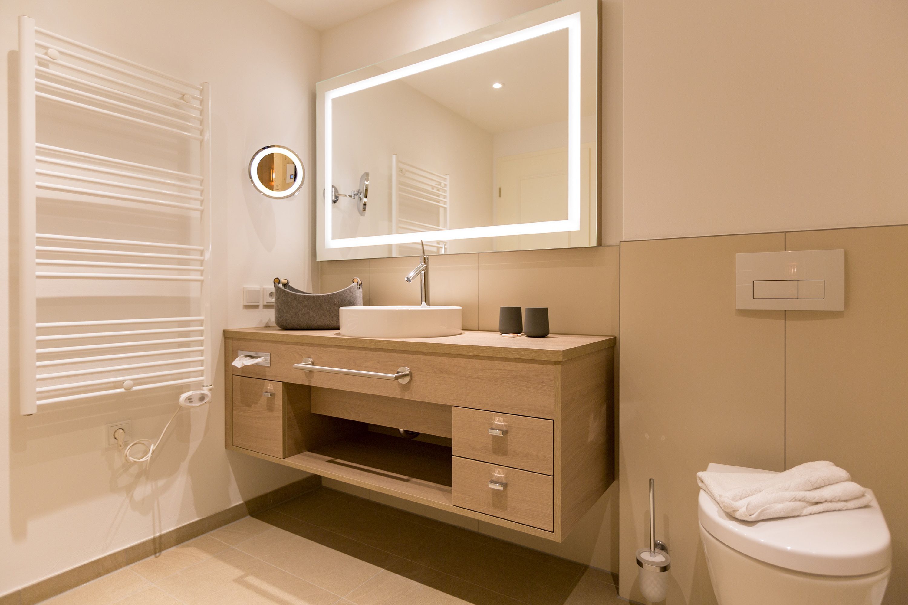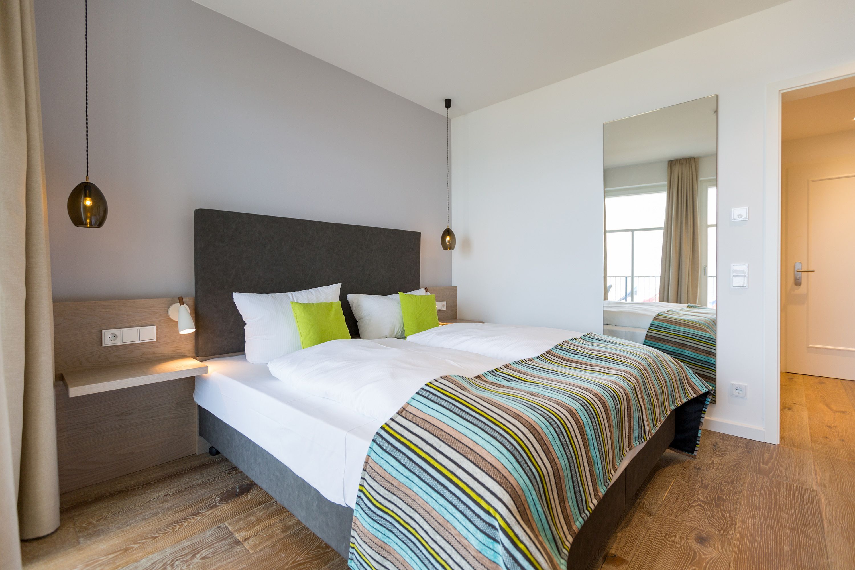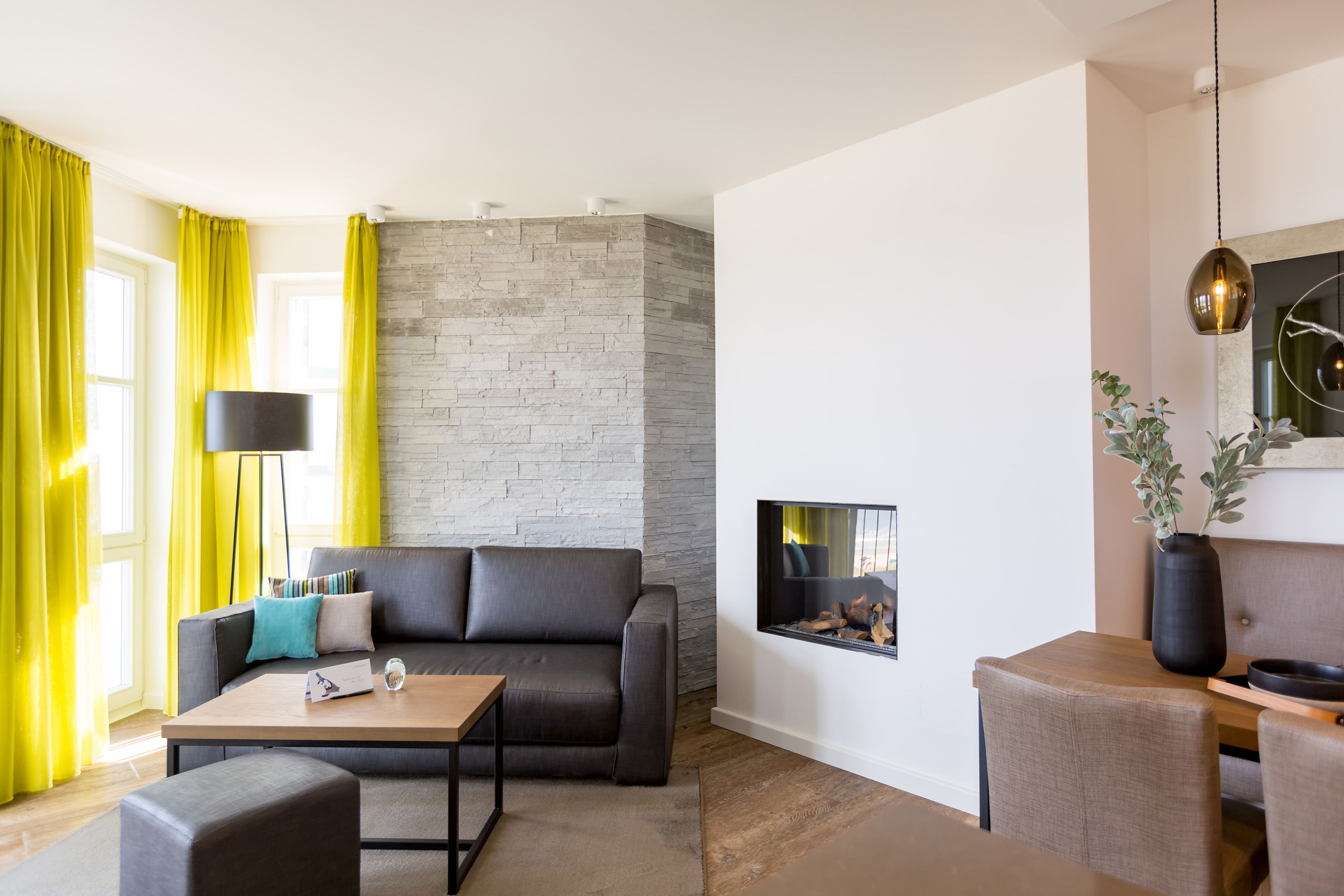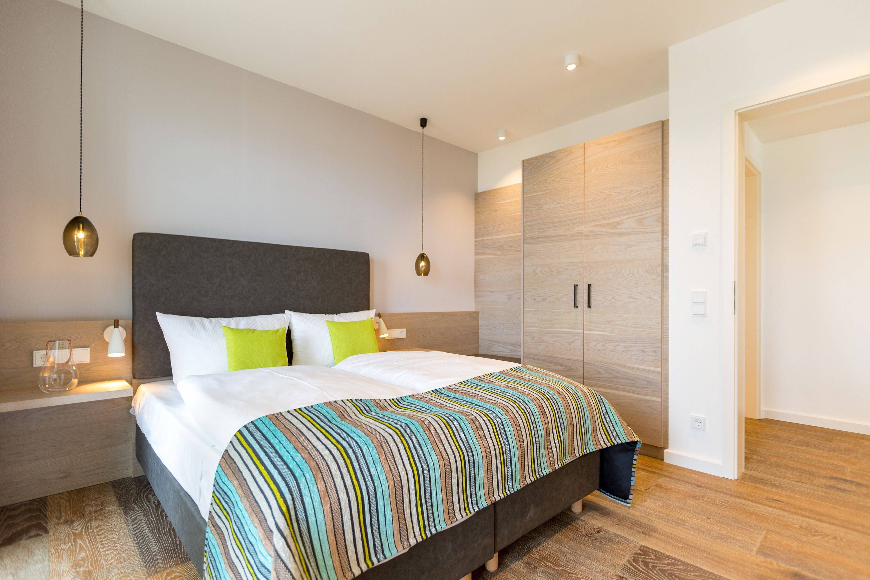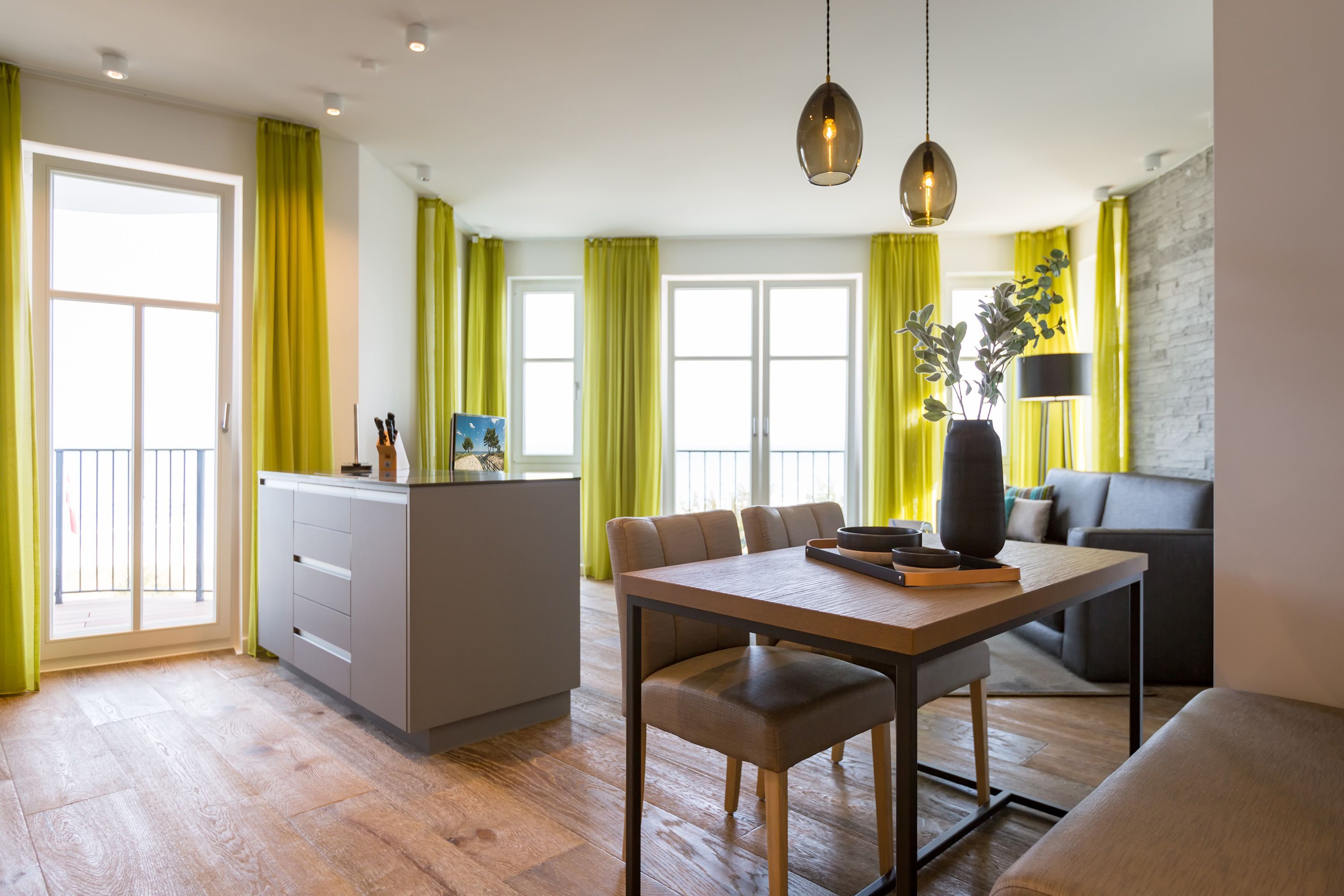 Leiden Sie auch an Meersehnsucht? In diesem Urlaubsparadies im 2. Stock des Beachhouses können Sie auf 74 Quadratmetern mit bis zu vier Personen und einem Kleinkind (bis drei Jahre im Kinderreisebett) Ihre Liebe zur Ostsee mit direktem Blick auf das endlose Blau genießen. Näher dran ist nur noch am Strand. Ob im wunderschön eingerichteten Wohnzimmer oder einem der beiden Schlafzimmer das Meer legt sich Ihnen in allen drei Zimmern zu Füßen. Von den beiden Balkonen (8 und 6 Quadratmeter) können Sie es schon morgens zum Frühstück genießen. Dann glitzert die Sonne auf den Wellen als lägen tausend Diamanten auf dem Wasser. In der offenen Wohnküche finden Sie alles, was Sie zum Zubereiten eines ausgiebigen Frühstückes, aber auch zum Kochen, Braten oder Backen brauchen. Hochwertige Markengeräte wie Geschirrspüler, Backofen, eine Kochinsel, Kühlschrank oder Mikrowelle erleichtern Ihnen das Zubereiten ungemein. Edles Geschirr sorgt für einen noblen Rahmen. Ist das Wetter einmal nicht zum Draußenessen geeignet, lädt der schöne Esstisch zum Einnehmen der Mahlzeiten ein. Das Wohn-Esszimmer strahlt durch seine großen Fenster, die viel Licht einlassen, die angenehmen und wohl temperierten Farbakzente und die exklusiven Design-Möbel eine harmonisierende und entspannende Atmosphäre aus. Auf dem bequemen Sofa lässt es sich wunderbar Relaxen. Für viel Gemütlichkeit sorgt ein Gas-Kamin. Zur Unterhaltung steht Ihnen ein großer Flat-TV sowie eine Hi-Fi-Anlage mit Bluetooth-Funktion zur Verfügung. Das WLAN ist in der Wohnung kostenfrei. Komfortable Boxspringdoppelbetten (1,80 m x 2,00 m und 1,60 m x 2,00 m) werden Ihren Träumen Flügel verleihen und die Urlaubsnächte zu einem echten Vergnügen machen. Ein jedes der beiden Schlafzimmer hat einen eigenen Balkon, einen Flat-TV und einen geräumigen Schrank. Das Appartement verfügt über zwei Bäder, in denen Sie jeweils eine schöne und ebenerdige Regendusche, einen Waschtisch mit großem Spiegel und ein WC vorfinden. Zu einer kleinen Wellness-Auszeit wird Ihr Ostseeurlaub außerdem. Denn im Masterbad erwartet Sie zudem eine Finnische Sauna. Da werden sogar die Schlechtwettertage an der Ostsee zu wunderbar entspannenden Kuscheltagen. Zum Waschen Ihrer Urlaubsgarderobe gibt es in einem separaten Hauswirtschaftsraum einen Wasch-Trockner. Kommen Sie also einfach an und genießen Sie Ihre Auszeit am Meer. Den Rest machen wir. Die Betten sind bei Ihrer Anreise bereits bezogen und Handtücher liegen bereit. In der modernen Tiefgarage ist für Sie der Stellplatz Nr. 11 im Doppelparker unten (max. Höhe 1,85 m, max. Länge 5,10 m, max. Breite 2,50 m, max. Last 2.600 kg) reserviert.