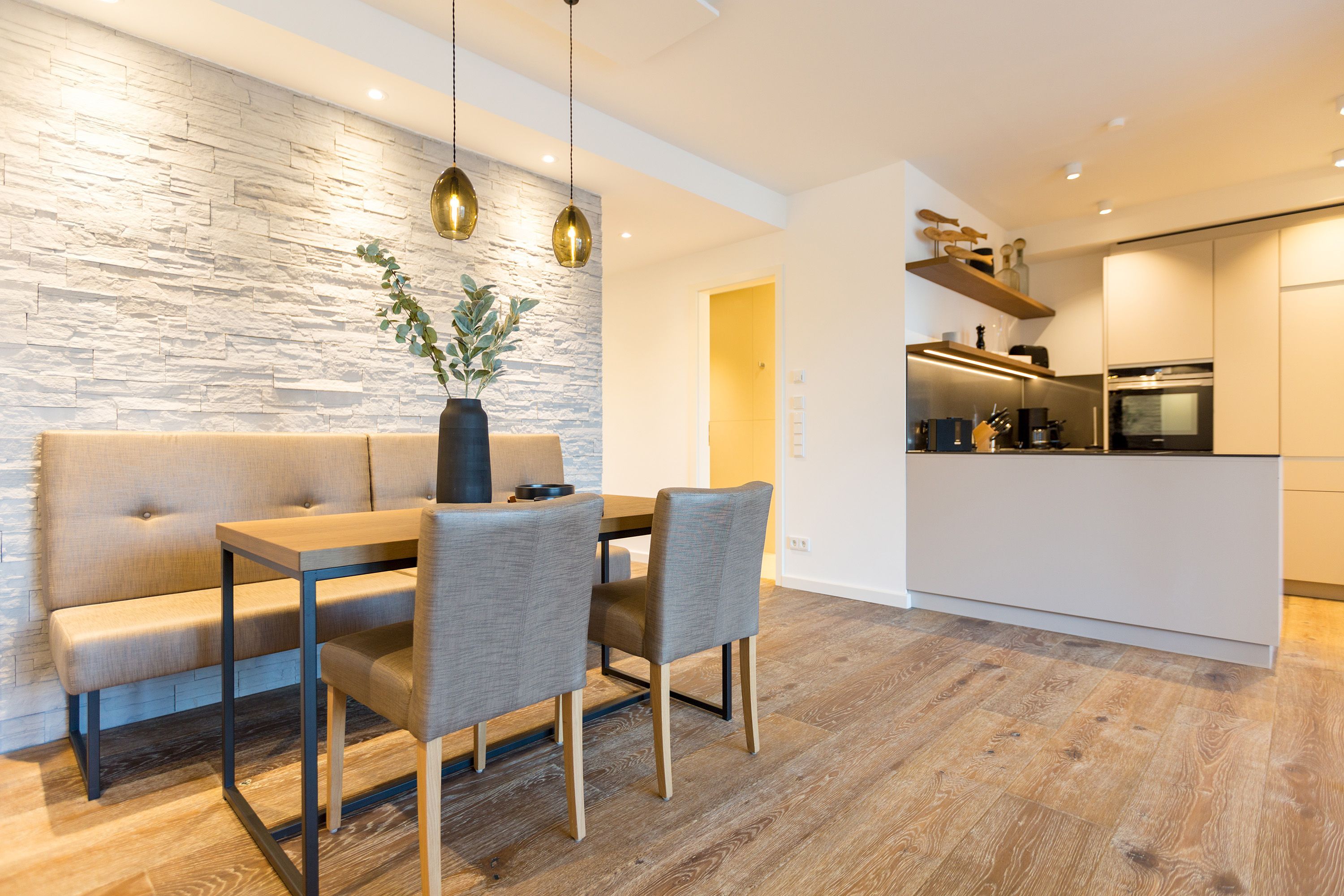 Modernes Wohndesign empfängt Sie auf den 53 Quadratmetern dieses wunderschönen Zwei-Zimmer-Appartements im 1. Stock des Beachhouses. Sie wünschen sich nichts sehnlicher, als einmal für ein paar Tage den Alltag hinter sich zu lassen, den Kopf auszuschalten, frische Meeresluft zu schnuppern und in einer Umgebung zu entspannen, die Ihnen neue Energie gibt? Für zwei Personen und ein geliebtes Haustier geht in diesem Urlaubsparadies dieser Wunsch in Erfüllung. Das gesamte Wohnkonzept ist aufeinander abgestimmt. Harmonie und Wohlfühlen steht an oberster Stelle. Hochwertige Möbel, Naturmaterialien, stylische Lampen und Accessoires hier ist alles exklusiv auf Ihr Wohlgefühl hin ausgerichtet: Vom Balkon (7 Quadratmeter) mit seitlichem Ostsee-Blick über das bequeme Sofa mit Blick auf das Flammenspiel des Gas-Kamins bis zum gemütlichen Essen am Esstisch. Das Wohnzimmer verfügt über einen Flat-TV und über eine Hi-Fi-Anlage mit Bluetooth-Funktion. Zum Wohnbereich gehört zudem eine offene Küche, in der es an nichts fehlt, was zum Kochen, Braten und Frühstücken benötigt wird. Hochwertige Markengeräte und edles Geschirr machen das Wirbeln darin zum Vergnügen. Ein echtes Vergnügen wird auch Ihr Schlaf werden. In dem komfortablen Boxspringdoppelbett (1,80 m x 2,00 m) werden Sie träumen wie auf Wolke 7. Und weckt Sie morgens das leise Rauschen der Ostsee, genießen Sie vom Balkon aus den Blick auf das morgendliche Glitzern der Wellen. Auch im Schlafzimmer befindet sich ein Flat-TV. Im Badezimmer wartet mit der Finnischen Sauna ein Highlight auf Sie. Wärmen Sie sich an kühlen Tagen oder Abenden darin auf. Zur Badausstattung gehört zudem eine Regendusche, ein Waschtisch mit beleuchtetem Spiegel und ein WC. In einem separaten Hauswirtschaftsraum können Sie im Wasch-Trockner Ihre Wäsche waschen. Bei Ankunft sind die Betten bezogen und Handtücher liegen bereit. Sie brauchen als nichts weiter zu tun, als anzukommen und zu entspannen. Das WLAN ist im Appartement kostenfrei. In der modernen Tiefgarage ist für Sie der Stellplatz Nr. 9 im Doppelparker oben (max. Höhe 2,00m, max. Länge 5,10 m, max. Breite 2,50 m, max. Last 2.600 kg) reserviert.