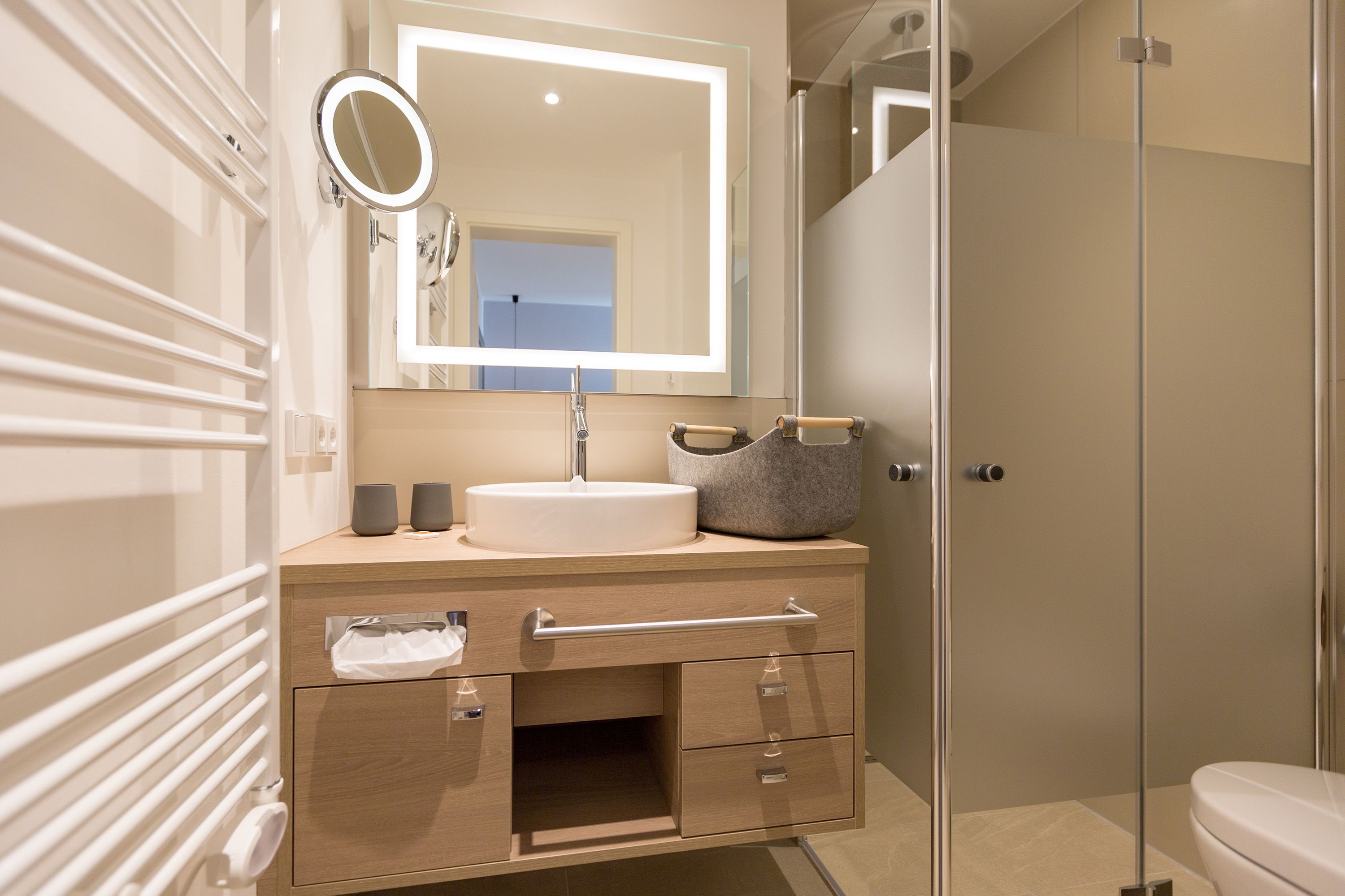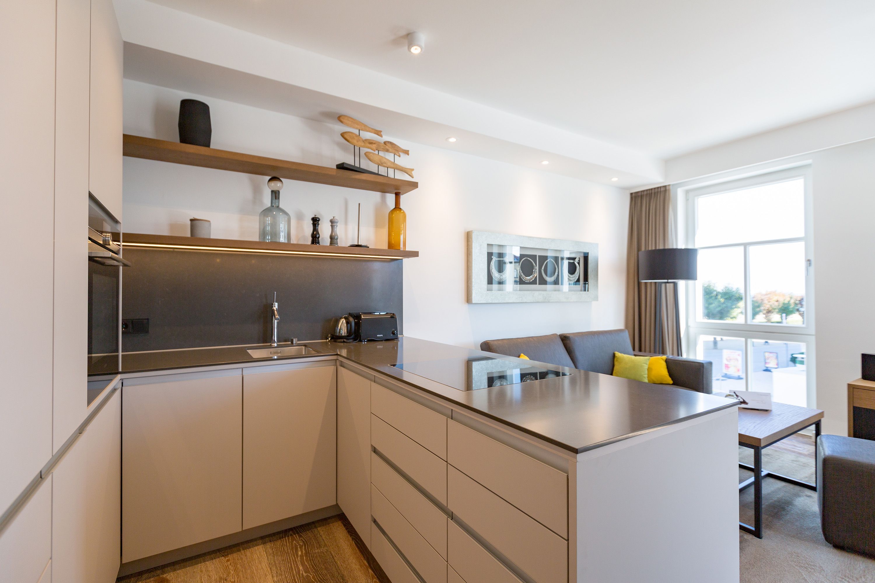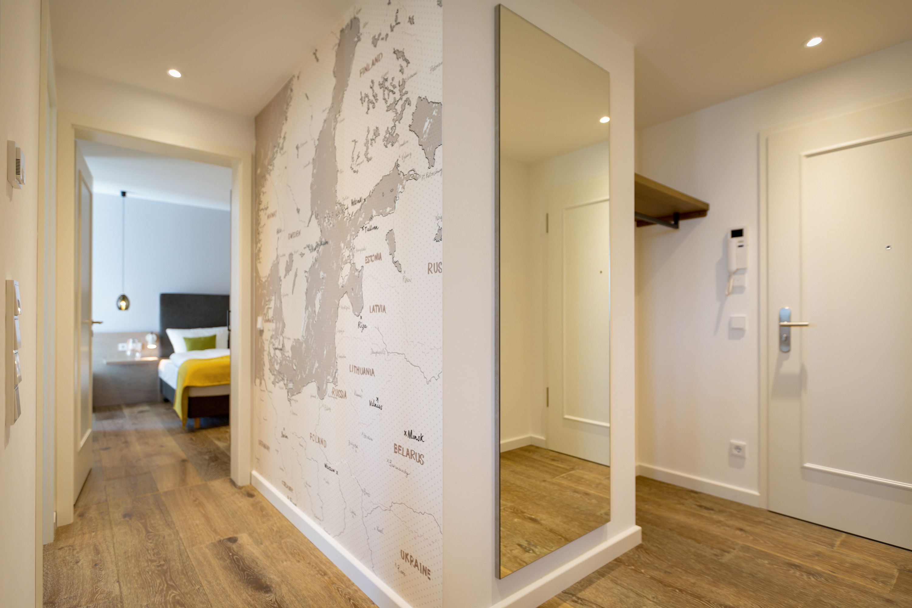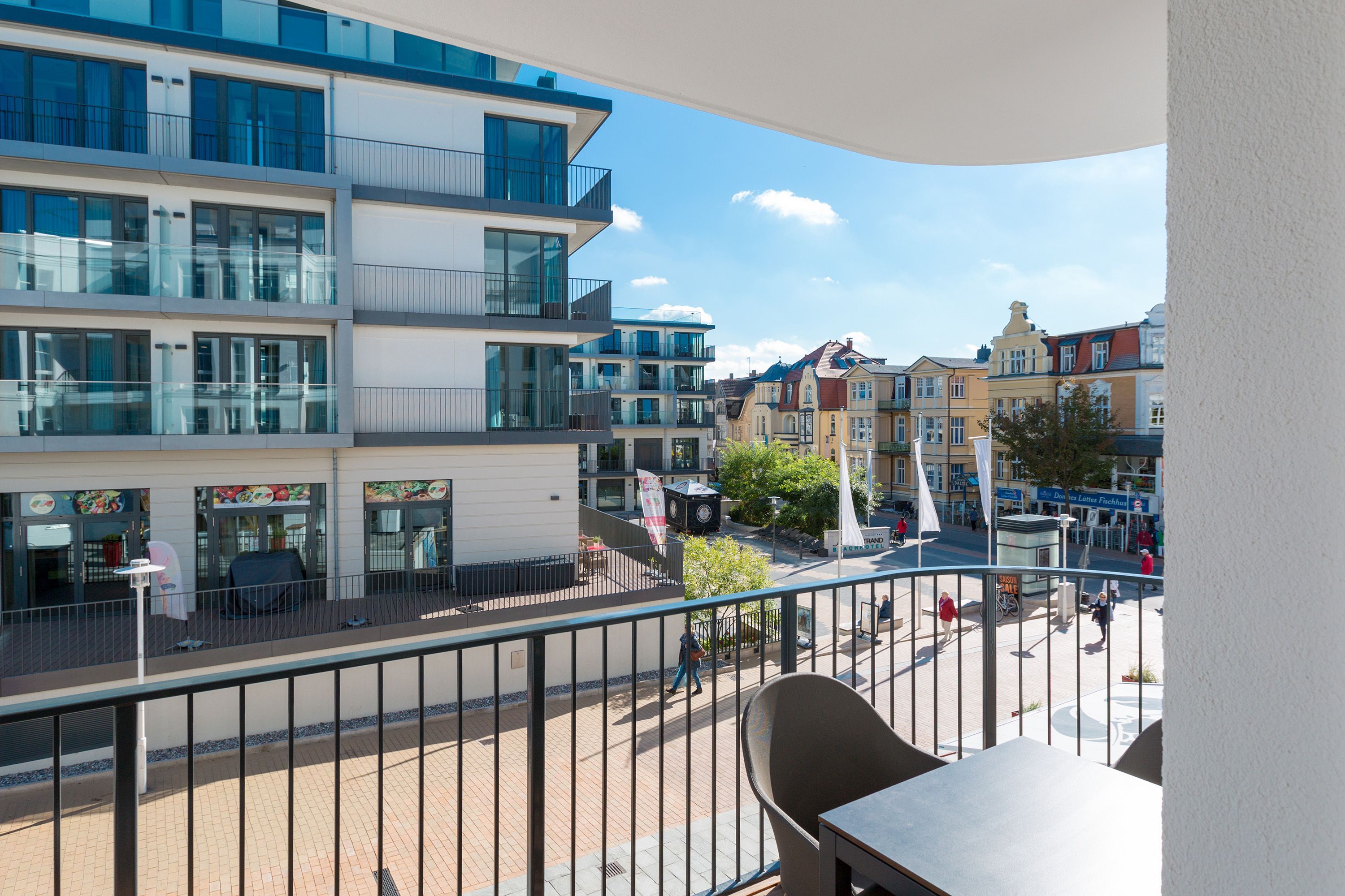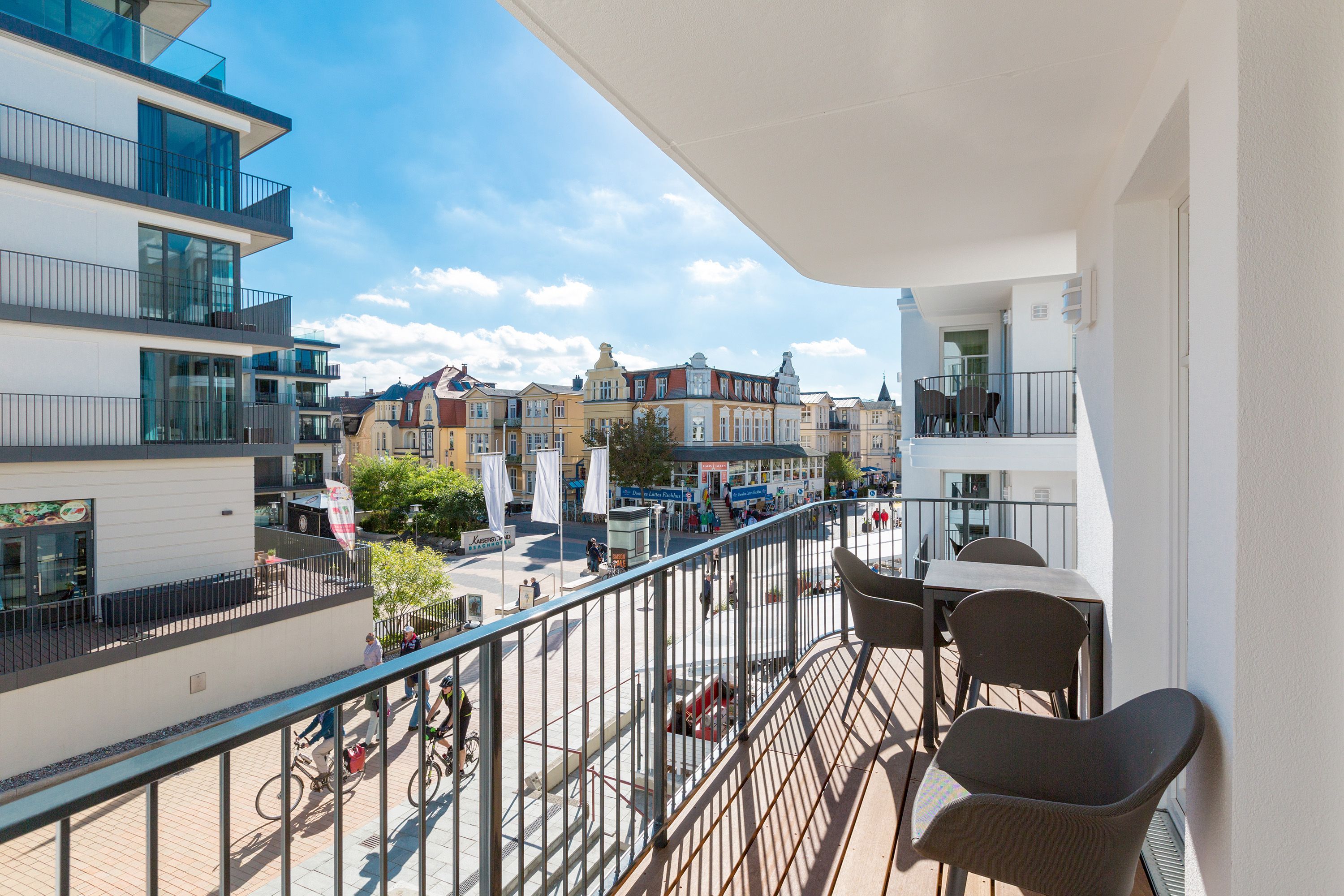 Modern, offen, lichtdurchflutet dieses 66 Quadratmeter große Feriendomizil im 1. Obergeschoss macht Ihren Urlaub zu einer Ostsee-Auszeit der exklusiven Art. Vier Personen, ein Kleinkind bis drei Jahre (im Kinderreisebett) und der geliebte Vierbeiner werden sich hier so pudelwohl fühlen, dass sie gar nicht wieder nach Hause wollen. Das Drei-Zimmer-Appartement bietet allen Komfort, den man sich nur vorstellen kann. Dazu modernste Technik und ein ausgewählt stylisches Interieur. Das großzügige und offene Wohn-Esszimmer bildet den Mittelpunkt der Wohnung. Bodentiefe Fenster lassen viel Licht ins Innere. Ein wunderschöner Gas-Kamin sorgt für Behaglichkeit. Ebenso die harmonisch aufeinander abgestimmten Naturmaterialien Holz und Stein. Und immer im Blick das Wasser der Ostsee. Denn vom Balkon (9 Quadratmeter groß) aus haben Sie seitlichen Meerblick. Dieser ist übrigens von allen drei Zimmern aus begehbar. Im Wohnzimmer wartet eine bequeme Couch nur darauf, dass Sie sich einfach fallen und verwöhnen lassen. Ein großer Flat-TV und eine Hi-Fi-Anlage mit Bluetooth sorgen für qualitativ hochwertige Unterhaltung. Ein schöner Essplatz mit zwei Stühlen und einer Sitzbank lädt zum ausgiebigen Dinieren ein. Das Essen können Sie in der vollausgestatteten und in den Wohnraum integrierten Küche zubereiten. Die freistehende Kochinsel eignet sich ideal als Raumteiler. In den Schränken finden Sie ausgewähltes Design-Geschirr. Etwas, was man vor allem im Urlaub sich sehnlichst wünscht, ist ein erholsamer Schlaf. In den bequemen Boxspringdoppelbetten (1,60 m x 2,00 m) werden diese Träume in den beiden Schlafzimmern Realität. Das angenehme Farbkonzept und die anheimelnde Atmosphäre der Einrichtung machen es Ihnen leicht. Das Appartement verfügt über zwei Bäder. Bad Nummer 1 ist nur über eines der beiden Schlafzimmer zugänglich. Beide Bäder jedoch sind mit einer ebenerdigen und großen Regendusche, einem Waschtisch und einem WC ausgestattet. Ein absolutes Highlight erwartet Sie zudem im 2. Bad: Eine Finnische Sauna. Was gibt es Schöneres, als einen entspannten Urlaubstag mit einem noch entspannenderem Saunagang abzuschließen? Handtücher finden Sie natürlich vor Ort. Ebenso sind die Betten bei Ihrer Anreise bereits bezogen. Wenn Sie ins Internet gehen wollen, können Sie das über das kostenfreie WLAN tun. In der Wohnung gibt es einen kleinen Hauswirtschaftsraum, in dem ein Waschtrockner steht. In der modernen Tiefgarage ist für Sie der Stellplatz Nr. 3 im Doppelparker oben (max. Höhe 1,90m, max. Länge 5,10 m, max. Breite 2,50 m, max. Last 2.600 kg) reserviert.