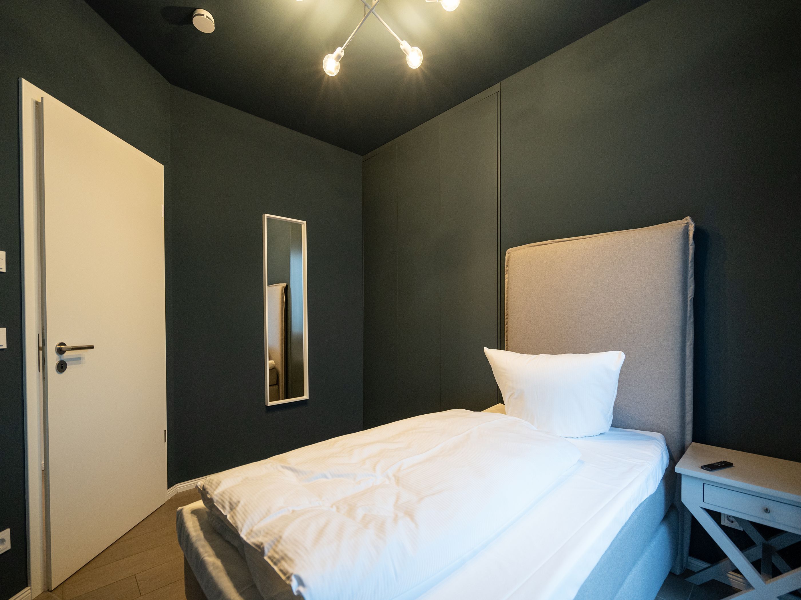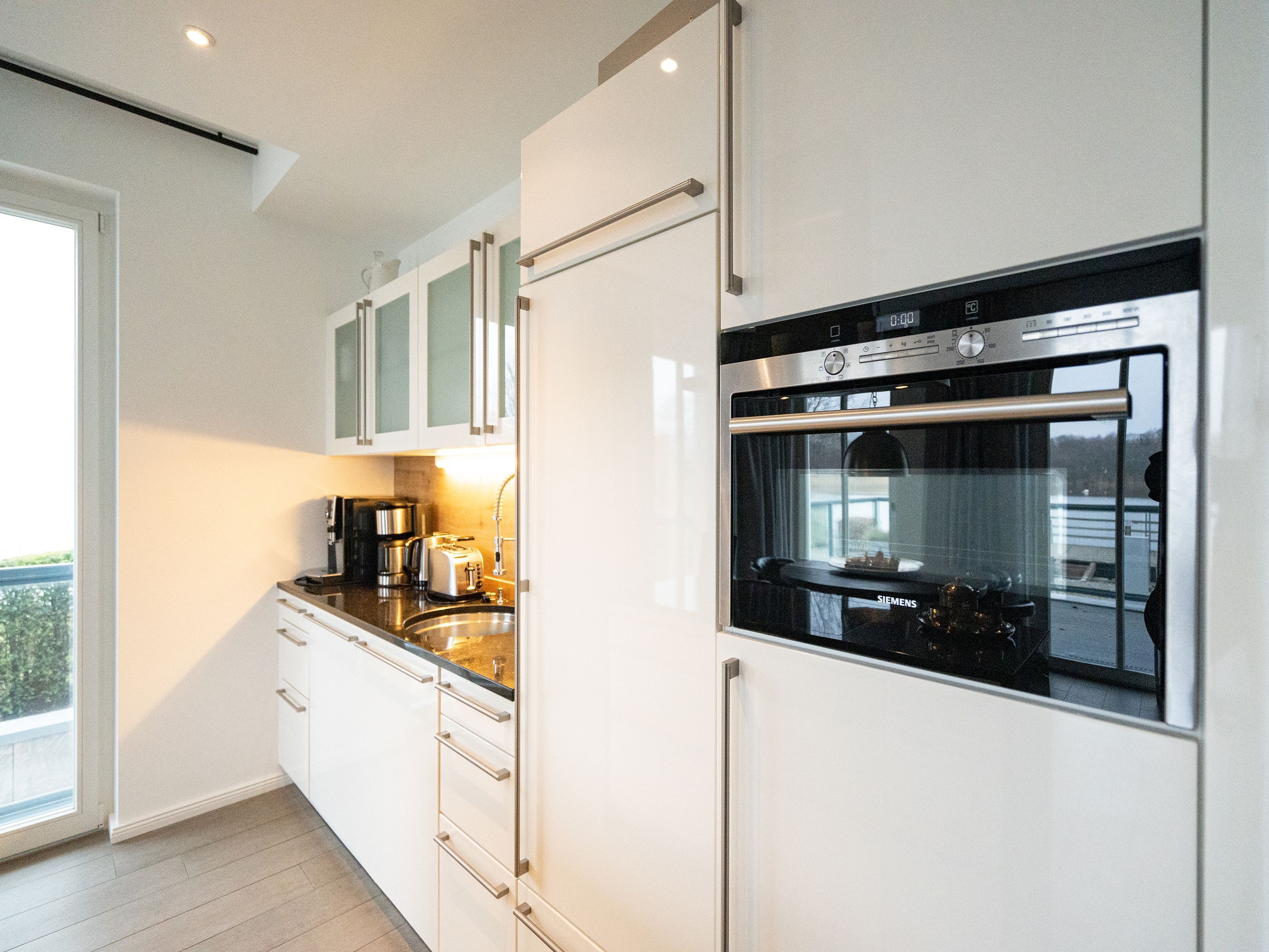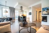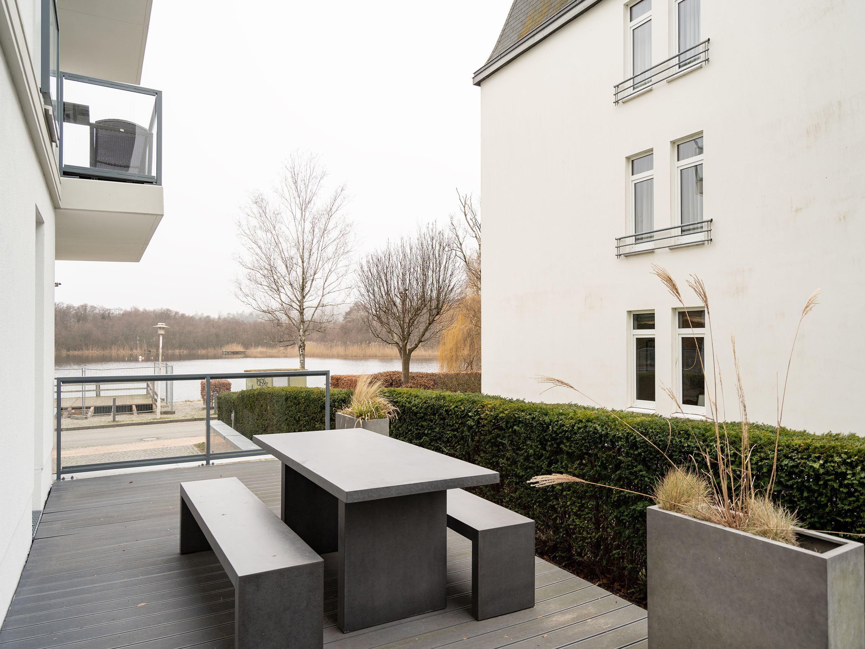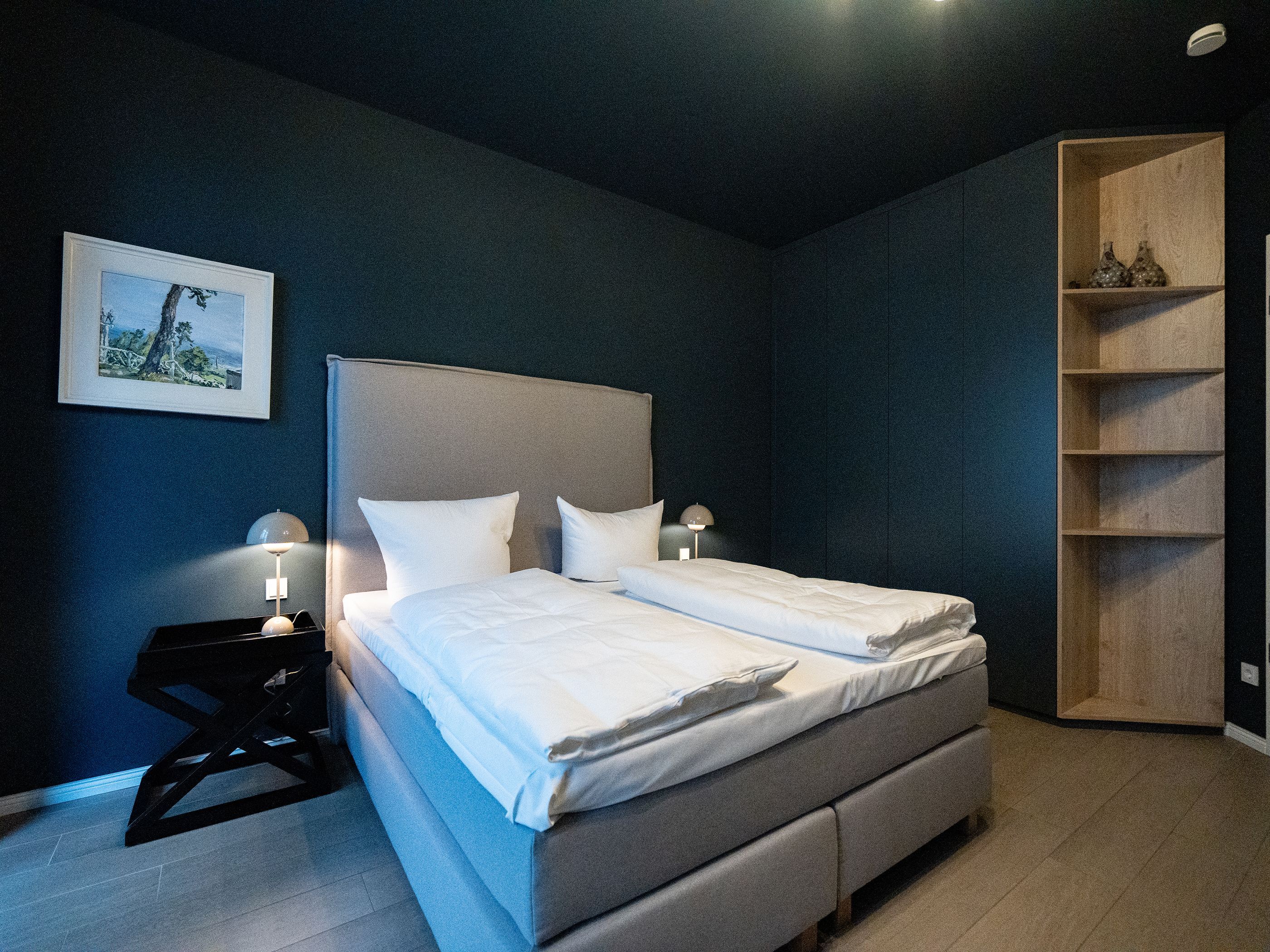 Gemütlicher Lifestyle, eine riesige Sonnenterrasse und ein wunderschöner Ausblick auf den Schloonsee! Unsere neue 4-Raum-Ferienwohnung im Erdgeschoss der Strandresidenzen bietet auf großzügigen 120 Quadratmetern (buchbar für 5 Personen & 2 Kleinkinder bis 3 Jahre im Kinderreisebett) ein perfektes Urlaubsdomizil. Freuen Sie sich auf zeitgemäßes Design, kombiniert mit wohnlichen Accessories und abgestimmten Farben und Stoffen. Der helle Wohnbereich mit lässiger Sitzgruppe, Flat-TV und schönem Kamin schließt sich die komplett ausgestattete, offene Küche und an den sonnigen Essplatz an. Der schöne Blick auf den Schloonsee und der großzügige Südbalkon versetzen Sie sicher gleich in Urlaubslaune. Zwei große Schlafzimmer sind mit je einem Doppelboxspringbett (1,80 m x 2,00m) ausgestattet, die für einen erholsamen Schlaf sorgen. Das 3. kleinere Schlafzimmer verfügt über ein Einzelboxspringbett (0,90m x 2,00m) und einen Einbaukleiderschrank. In allen Zimmern kann ein zusätzliches Kinderreisebett (zubuchbar) aufgestellt werden. Ergänzt wird die Wohnung durch ein Bad mit Badewanne und ein Bad mit Dusche, die hier integrierte Sauna lädt zum Relaxen ein. Ein besonderes Highlight ist die riesige 50 qm große, halbumlaufende Südwest-Terrasse. Ausgestattet mit schönen Gartenmöbeln, Strandkorb und Blick auf den Schloonsee wird sie in den wärmeren Jahreszeiten sicher schnell zu Ihrem Lieblingsplatz. Für Ihren Komfort sind die Betten bei der Anreise bezogen und Handtücher liegen bereit. Zwei Pkw-Stellplätze stehen in der Tiefgarage zur Verfügung. Auf Wunsch stellen wir ein Kinderreisebett und einen Kinderhochstuhl gegen Aufpreis zur Verfügung. Das WLAN-Netz in der Wohnung steht kostenfrei zur Verfügung - bitte fragen Sie an unserer Rezeption danach. Für den Tag am Meer steht Ihnen als besonderes Bonbon von Mitte Mai bis Ende September (je nach Witterung) zusätzlich ein Strandkorb am Strand und auf der Terrasse kostenlos zur Verfügung.