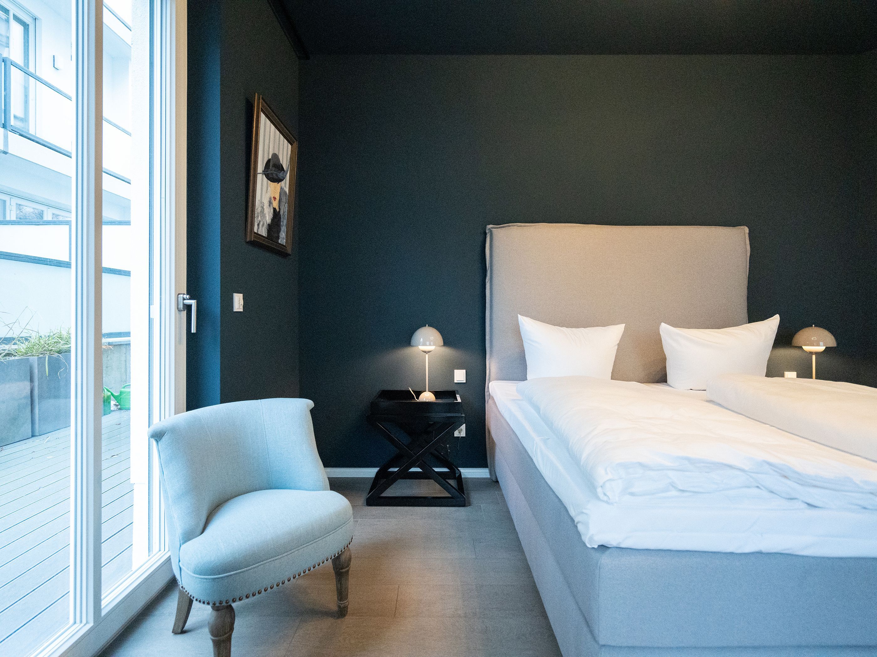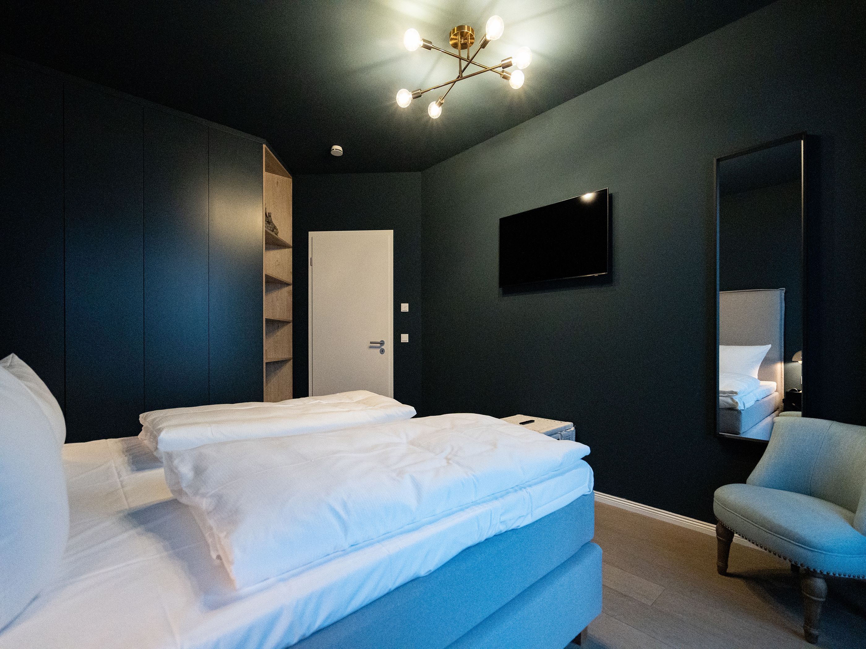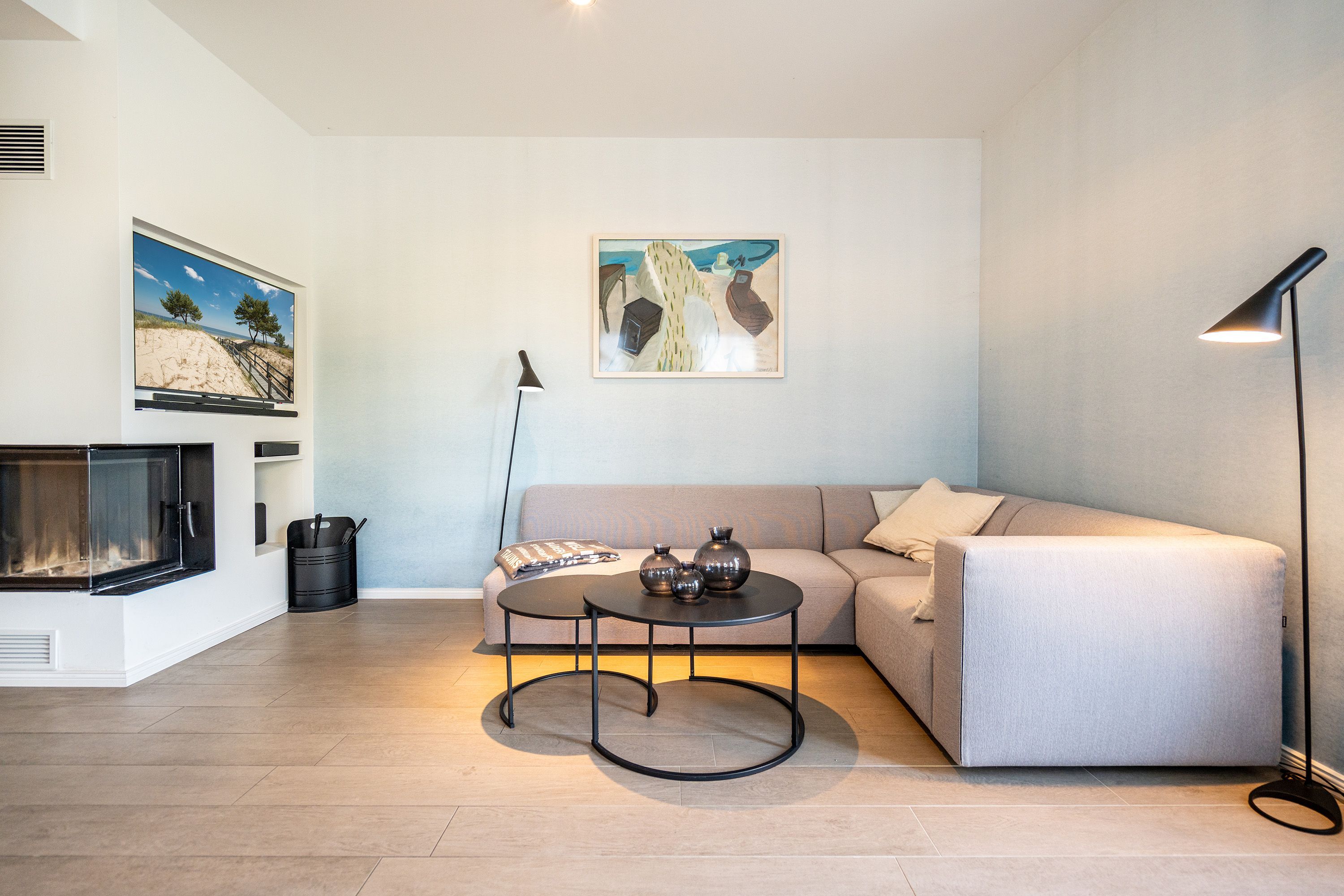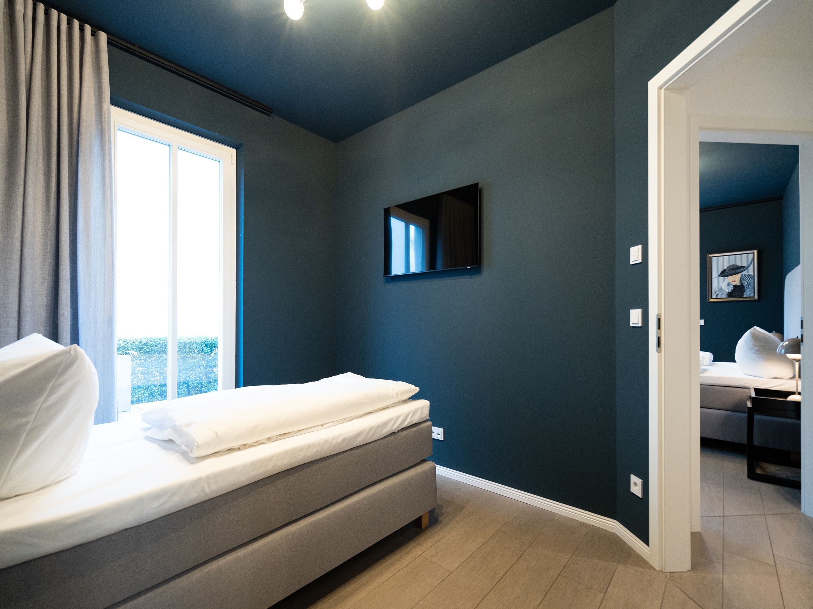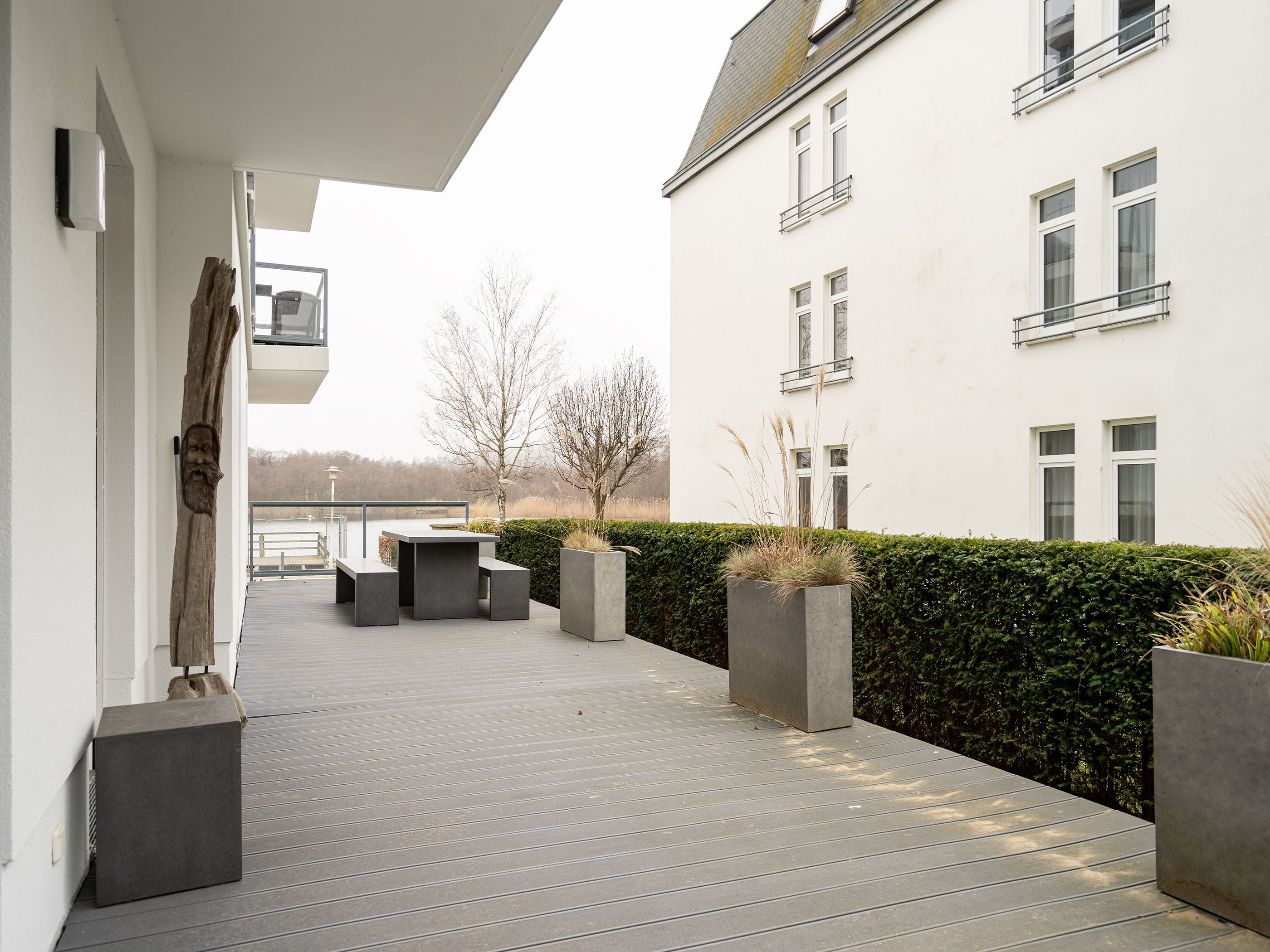 Gemütlicher Lifestyle, eine riesige Sonnenterrasse und ein wunderschöner Ausblick auf den Schloonsee! Unsere neue 4-Raum-Ferienwohnung im Erdgeschoss der Strandresidenzen bietet auf großzügigen 120 Quadratmetern (buchbar für 5 Personen & 2 Kleinkinder bis 3 Jahre im Kinderreisebett) ein perfektes Urlaubsdomizil. Freuen Sie sich auf zeitgemäßes Design, kombiniert mit wohnlichen Accessories und abgestimmten Farben und Stoffen. Der helle Wohnbereich mit lässiger Sitzgruppe, Flat-TV und schönem Kamin schließt sich die komplett ausgestattete, offene Küche und an den sonnigen Essplatz an. Der schöne Blick auf den Schloonsee und der großzügige Südbalkon versetzen Sie sicher gleich in Urlaubslaune. Zwei große Schlafzimmer sind mit je einem Doppelboxspringbett (1,80 m x 2,00m) ausgestattet, die für einen erholsamen Schlaf sorgen. Das 3. kleinere Schlafzimmer verfügt über ein Einzelboxspringbett (0,90m x 2,00m) und einen Einbaukleiderschrank. In allen Zimmern kann ein zusätzliches Kinderreisebett (zubuchbar) aufgestellt werden. Ergänzt wird die Wohnung durch ein Bad mit Badewanne und ein Bad mit Dusche, die hier integrierte Sauna lädt zum Relaxen ein. Ein besonderes Highlight ist die riesige 50 qm große, halbumlaufende Südwest-Terrasse. Ausgestattet mit schönen Gartenmöbeln, Strandkorb und Blick auf den Schloonsee wird sie in den wärmeren Jahreszeiten sicher schnell zu Ihrem Lieblingsplatz. Für Ihren Komfort sind die Betten bei der Anreise bezogen und Handtücher liegen bereit. Zwei Pkw-Stellplätze stehen in der Tiefgarage zur Verfügung. Auf Wunsch stellen wir ein Kinderreisebett und einen Kinderhochstuhl gegen Aufpreis zur Verfügung. Das WLAN-Netz in der Wohnung steht kostenfrei zur Verfügung - bitte fragen Sie an unserer Rezeption danach. Für den Tag am Meer steht Ihnen als besonderes Bonbon von Mitte Mai bis Ende September (je nach Witterung) zusätzlich ein Strandkorb am Strand und auf der Terrasse kostenlos zur Verfügung.