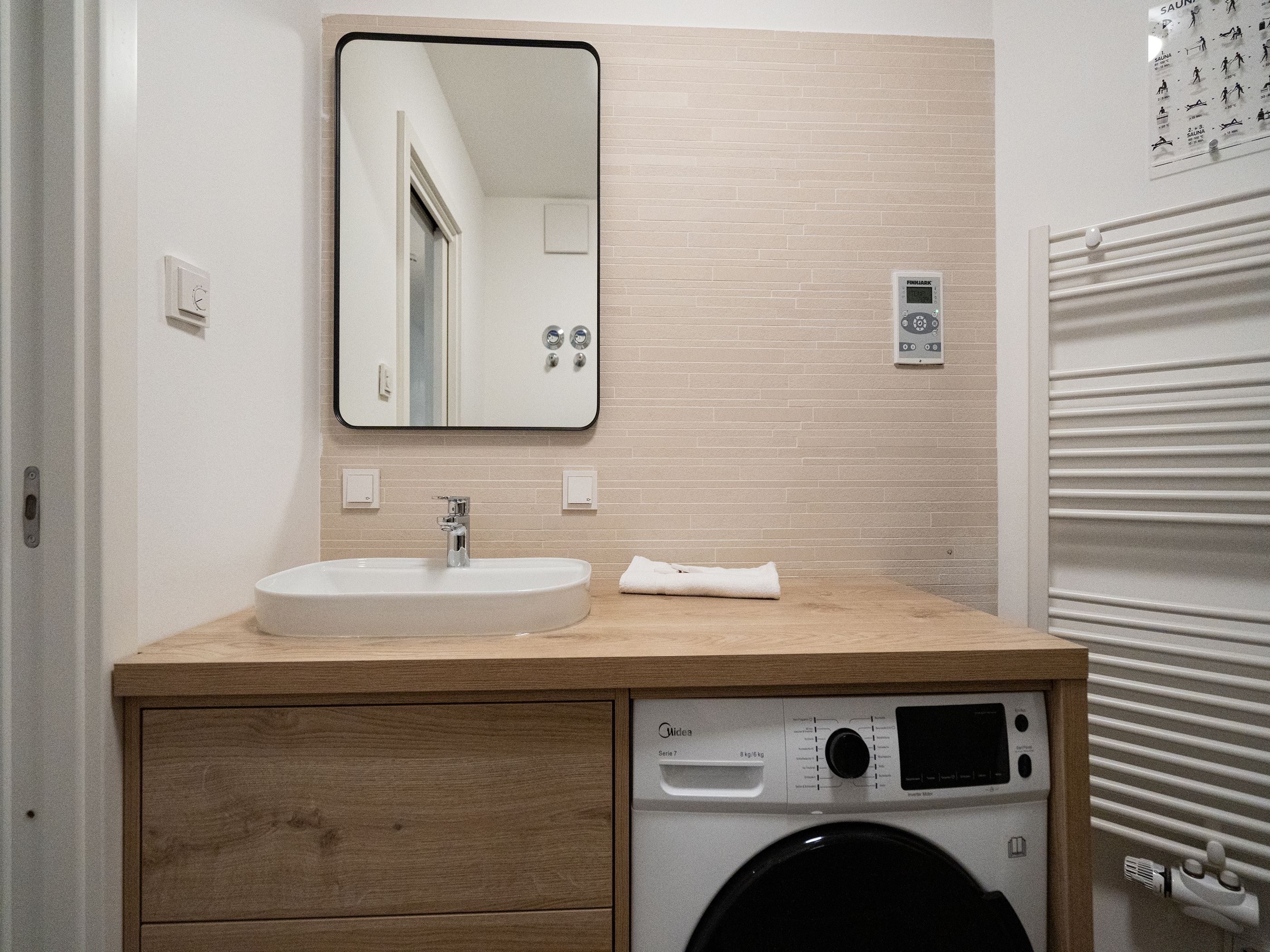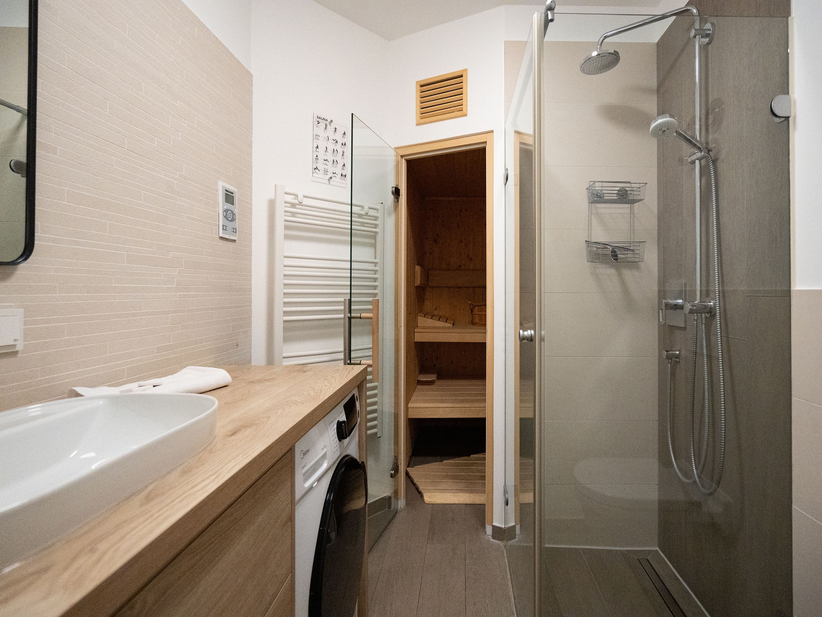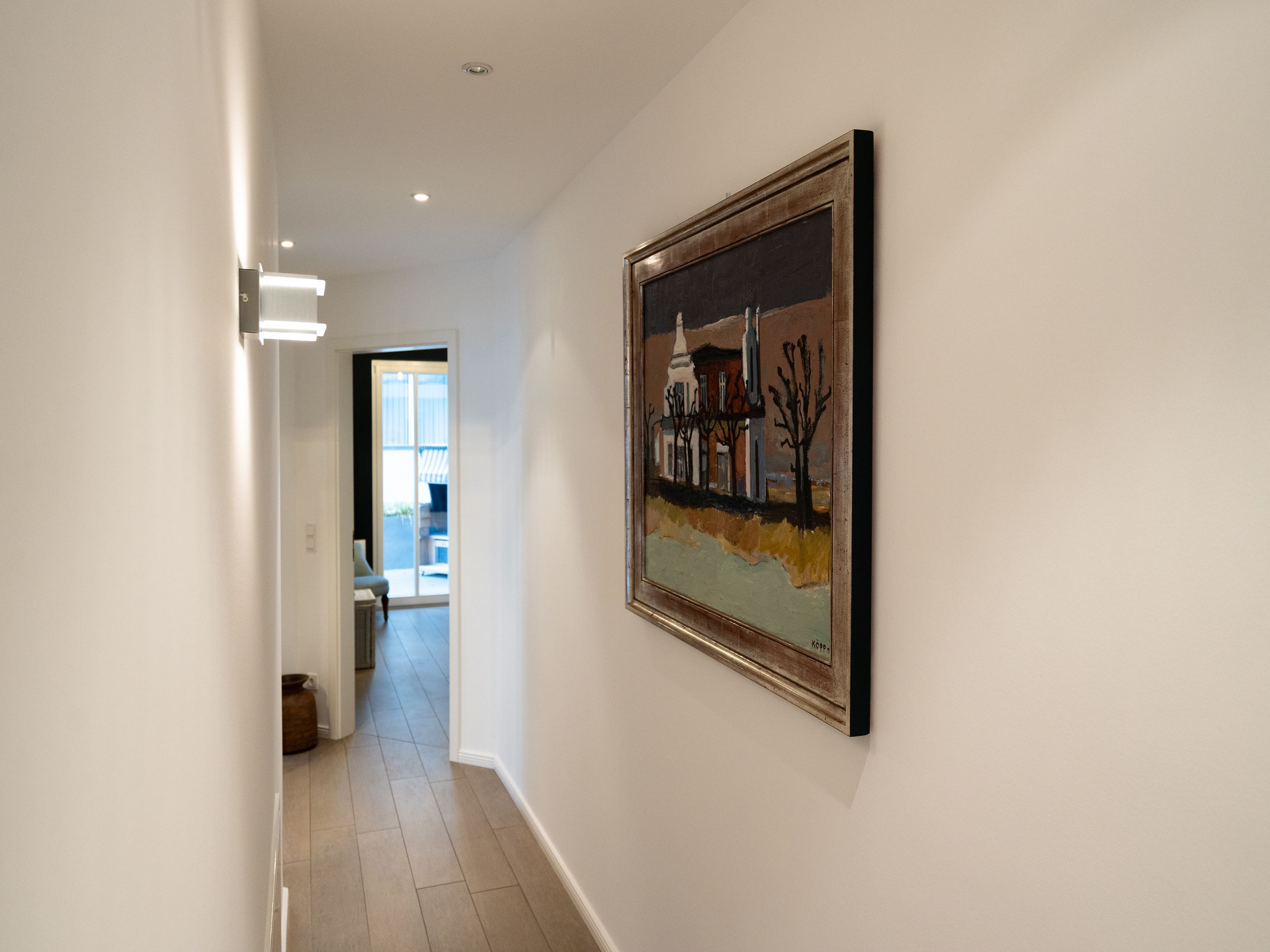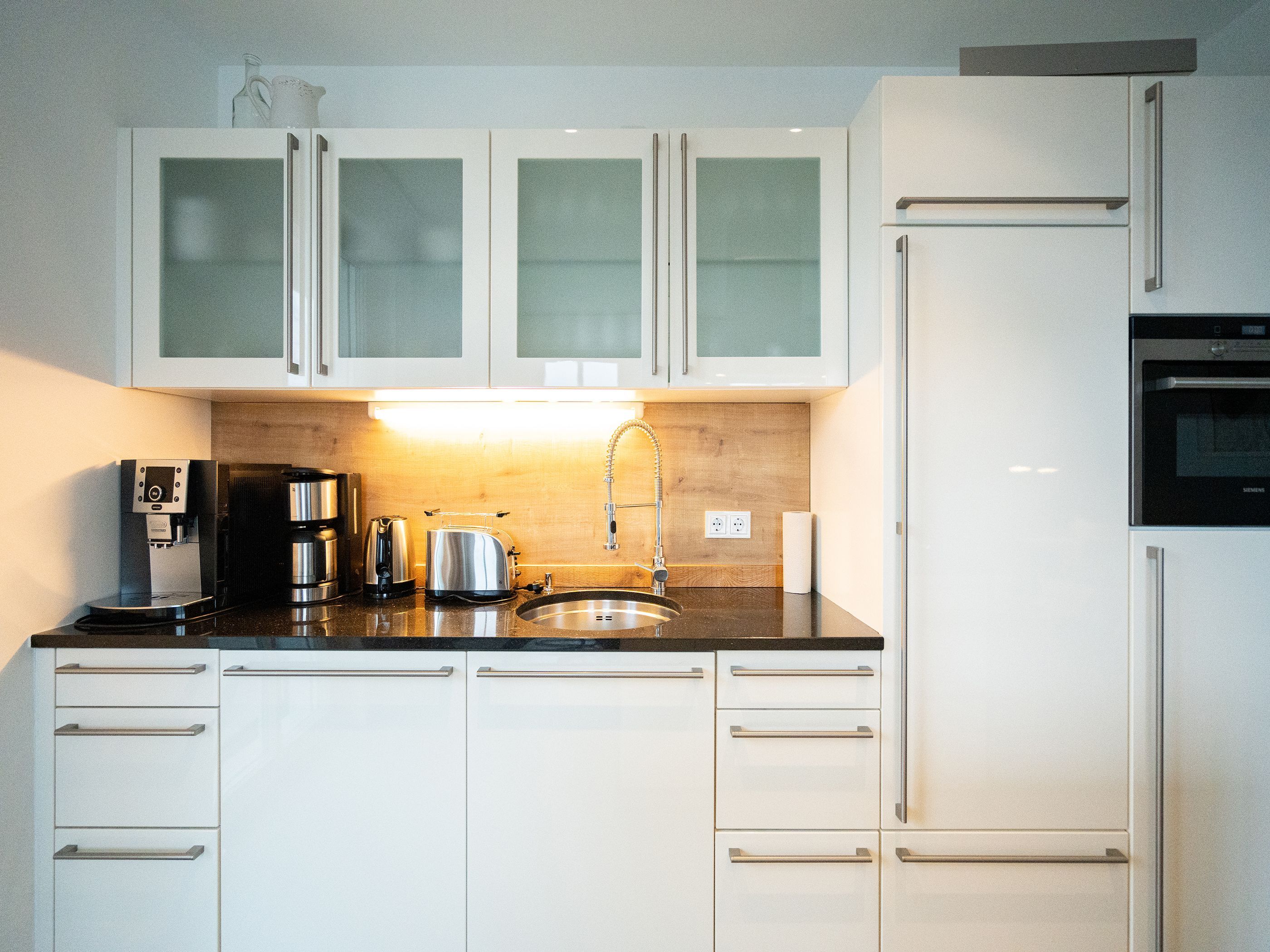 Gemütlicher Lifestyle, eine riesige Sonnenterrasse und ein wunderschöner Ausblick auf den Schloonsee! Unsere neue 4-Raum-Ferienwohnung im Erdgeschoss der Strandresidenzen bietet auf großzügigen 120 Quadratmetern (buchbar für 5 Personen & 2 Kleinkinder bis 3 Jahre im Kinderreisebett) ein perfektes Urlaubsdomizil. Freuen Sie sich auf zeitgemäßes Design, kombiniert mit wohnlichen Accessories und abgestimmten Farben und Stoffen. Der helle Wohnbereich mit lässiger Sitzgruppe, Flat-TV und schönem Kamin schließt sich die komplett ausgestattete, offene Küche und an den sonnigen Essplatz an. Der schöne Blick auf den Schloonsee und der großzügige Südbalkon versetzen Sie sicher gleich in Urlaubslaune. Zwei große Schlafzimmer sind mit je einem Doppelboxspringbett (1,80 m x 2,00m) ausgestattet, die für einen erholsamen Schlaf sorgen. Das 3. kleinere Schlafzimmer verfügt über ein Einzelboxspringbett (0,90m x 2,00m) und einen Einbaukleiderschrank. In allen Zimmern kann ein zusätzliches Kinderreisebett (zubuchbar) aufgestellt werden. Ergänzt wird die Wohnung durch ein Bad mit Badewanne und ein Bad mit Dusche, die hier integrierte Sauna lädt zum Relaxen ein. Ein besonderes Highlight ist die riesige 50 qm große, halbumlaufende Südwest-Terrasse. Ausgestattet mit schönen Gartenmöbeln, Strandkorb und Blick auf den Schloonsee wird sie in den wärmeren Jahreszeiten sicher schnell zu Ihrem Lieblingsplatz. Für Ihren Komfort sind die Betten bei der Anreise bezogen und Handtücher liegen bereit. Zwei Pkw-Stellplätze stehen in der Tiefgarage zur Verfügung. Auf Wunsch stellen wir ein Kinderreisebett und einen Kinderhochstuhl gegen Aufpreis zur Verfügung. Das WLAN-Netz in der Wohnung steht kostenfrei zur Verfügung - bitte fragen Sie an unserer Rezeption danach. Für den Tag am Meer steht Ihnen als besonderes Bonbon von Mitte Mai bis Ende September (je nach Witterung) zusätzlich ein Strandkorb am Strand und auf der Terrasse kostenlos zur Verfügung.