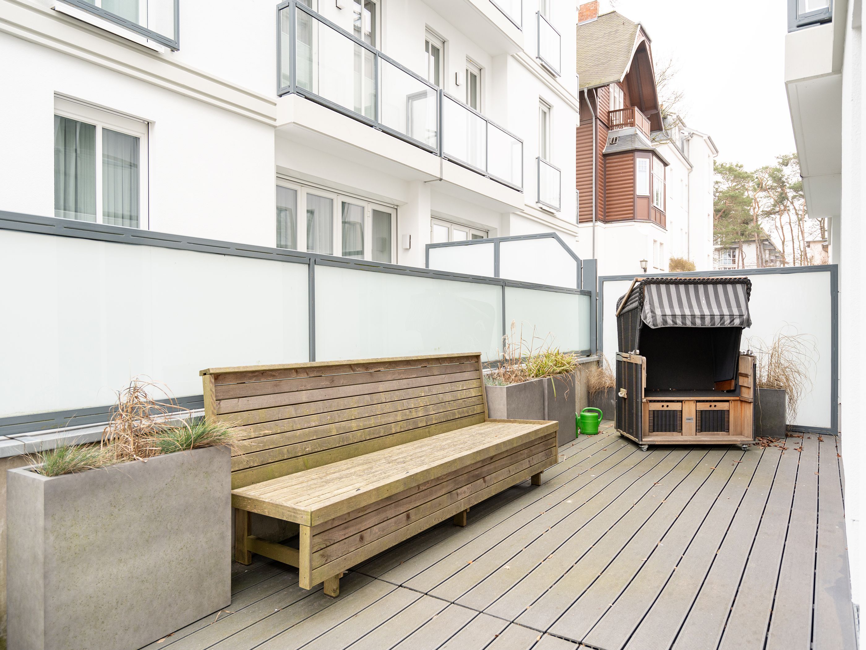 In Bestlage, direkt zwischen der Ostsee und dem Schloonsee in Bansin, erwarten Sie die exklusiven Strandresidenzen. Aufgeteilt in zwei moderne Baukörper (Ostseepalais und Schloonpalais), mit Tiefgarage (Einfahrtshöhe 1,90 m), Fahrstuhl und großzügigen Appartements ausgestattet, bieten sie ein ideales Urlaubsdomizil für Jung und Alt. Das Ostseepalais ist zur Meerseite (an der Strandpromenade) ausgerichtet und bietet aus fast allen Wohnungen einen wunderschönen Blick auf die Ostsee (außer Wohnungen 1 & 2). Das Schloonpalais ist zur Südseite (Bergstraße) ausgerichtet und bietet aus den Wohnungen einen wunderschönen Blick auf den Schloonsee, der mit kleiner, eigener Promenade gerade neu gestaltet wurde. Aus diesem Haus gelangt man durch die Tiefgarage (das Ostseepalais auch direkt) an die Strandpromenade. Strandnaher kann man nicht wohnen! Für fast jede Wohnung (außer Ostseepalais 2) stehen zwei Tiefgargenstellplätze nebeneinander (Gesamtfläche: 5x5m) zur Verfügung, hier können auch mitgebrachte Fahrräder abgestellt werden.