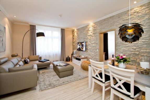 Eine wunderschön gestaltete 3-Raum-Ferienwohnung im Hochparterre (68?qm) empfängt Sie und bietet Platz für 4 Erwachsene und ein Kleinkind bis 3 Jahre im Kinderreisebett. Die moderne, stylische Einrichtung sowie die geschmackvoll abgestimmten Farben, Stoffe und Dekorationen lassen keine Urlaubswünsche offen. Das Wohnzimmer ist mit einer Ledersitzgruppe und Flat-TV ausgestattet, die offene Küche wird durch den gemütlichen Essplatz ergänzt. Zwei Schlafzimmer mit Boxspringbetten (1,80?m x 2,00?m, eines zusätzlich mit Flat-TV) und ein Bad mit Dusche und WC komplettieren das Appartement. Pkw-Stellplatz Nr.?16 in der Doppelparker-Garage unten (max. PKW-Höhe 1,50?m, Länge max. 5,00?m, Gewicht max. 2?t) ist für Sie reserviert. Auf Wunsch stellen wir für unsere kleinen Gäste ein Kinderreisebett (ohne zusätzliche Matratze & Bettzeug) und einen Kinderhochstuhl (gegen Aufpreis) zur Verfügung. Betten sind bei Anreise bezogen, Handtücher liegen bereit.