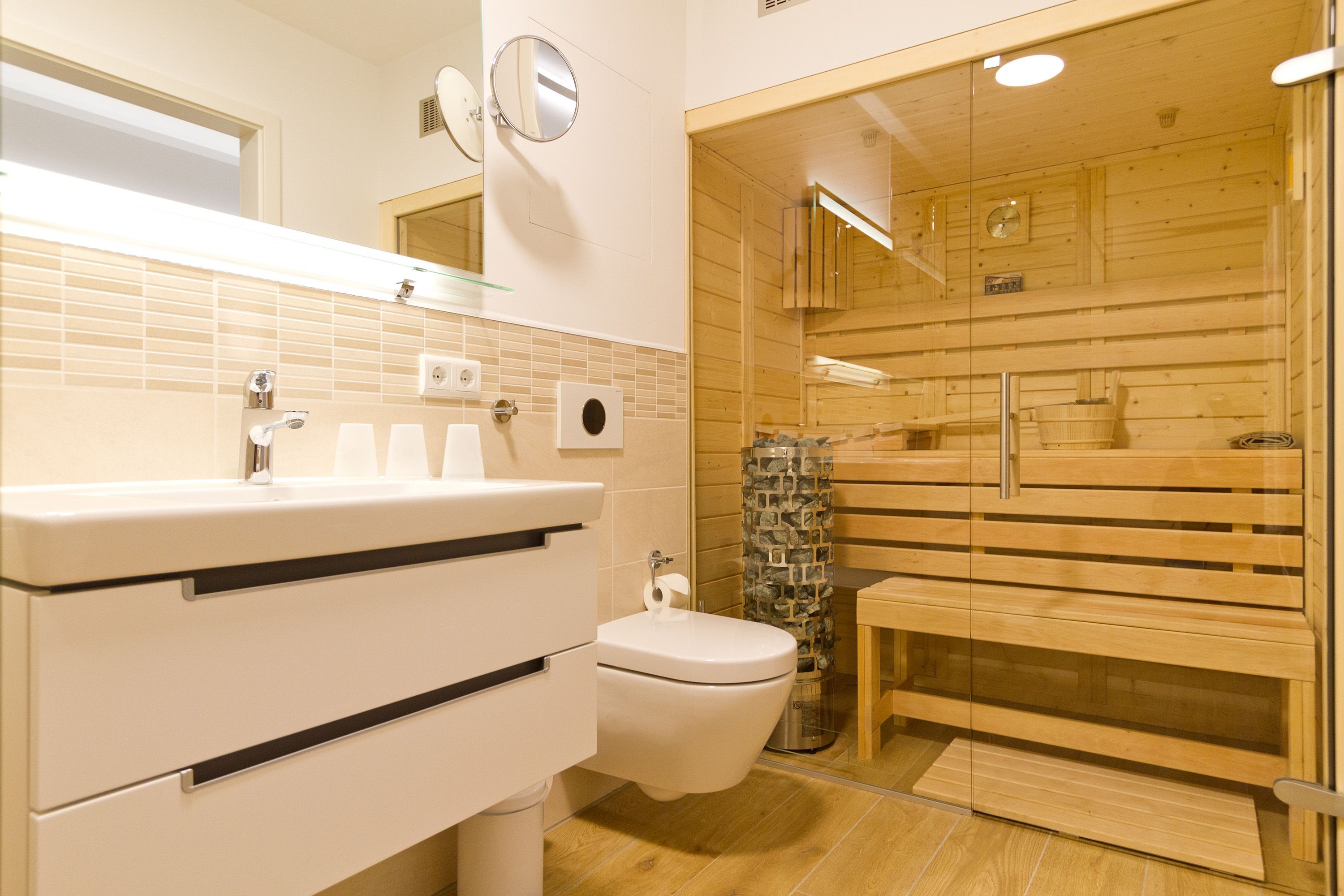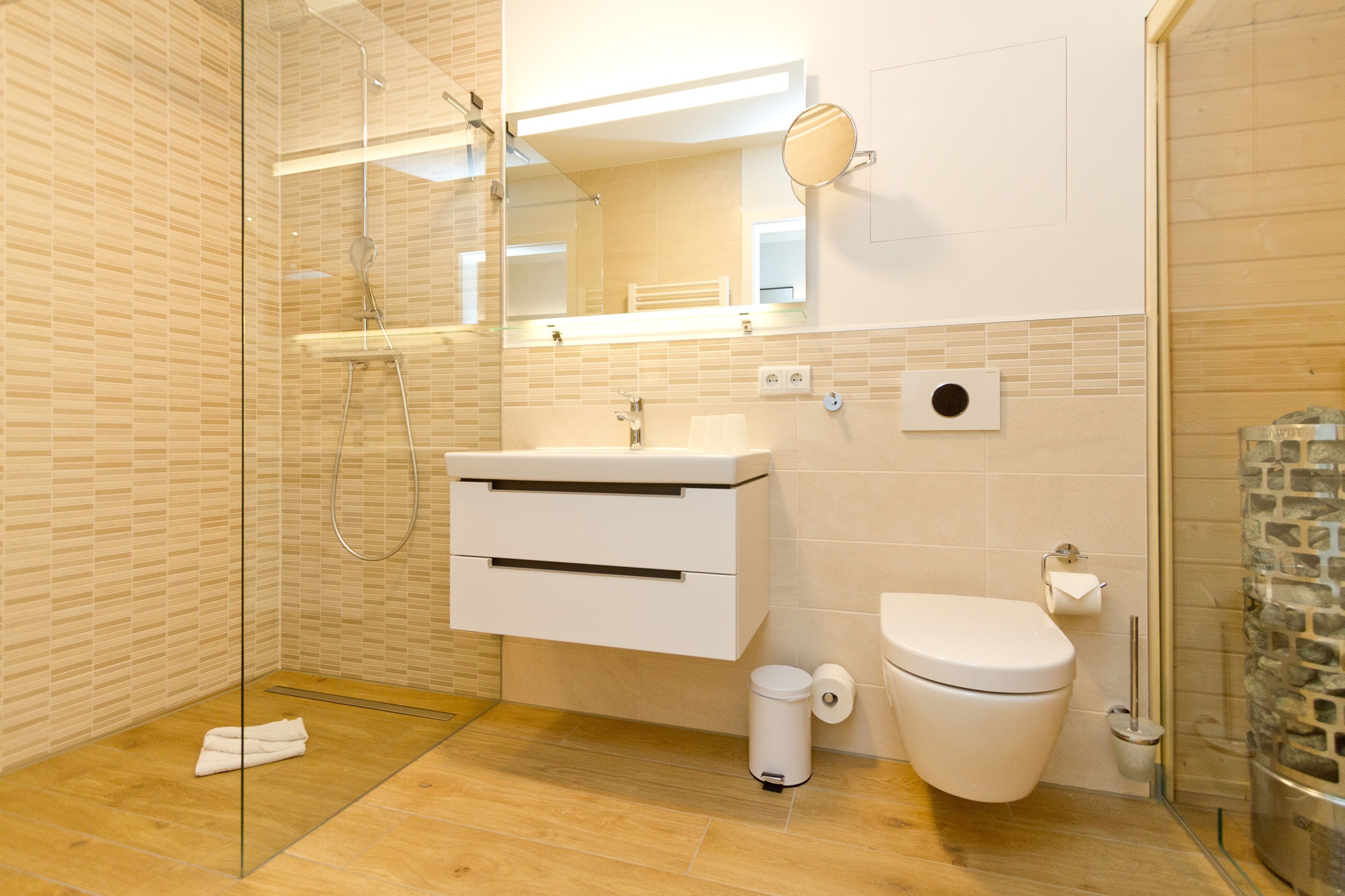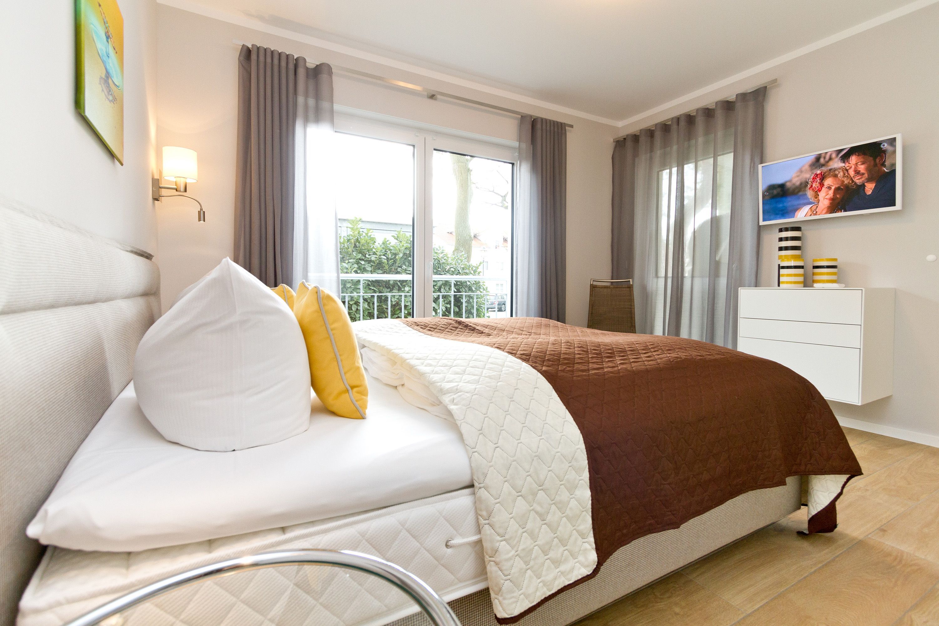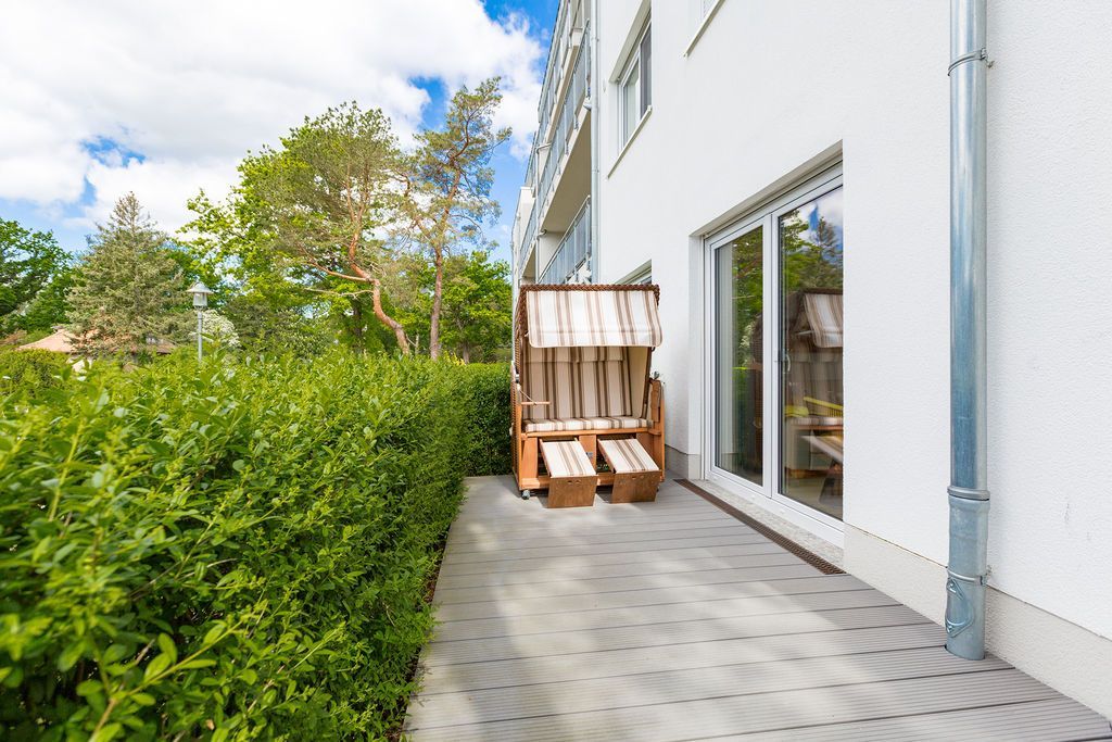 Ein Domizil für Anspruchsvolle und Genießer! Freuen Sie sich auf ein wunderschönes Urlaubsdomizil, denn die Dünenresidenz Heringsdorf verbindet den zeitgemäßen Komfort eines Neubaus mit einer strandnahen Lage. Eine Tiefgarage (max. Einfahrtshöhe 1,93 m) und ein Aufzug im Haus sind hier selbstverständlich. Helle, geschmackvoll designte 2- und 3-Raum-Appartements mit Balkonen oder Terrassen laden zum Erholen ein. Die Dachgeschosswohnungen überzeugen mit großzügigen Dachterrassen und schönen Ausblicken. Aus einigen Wohnungen kann man sogar durch die Dünenbepflanzung das Meer schimmern sehen. Als besonderes Highlight verfügen die Wohnungen über eine Sauna und/oder einen Elektrokamin, der per Knopfdruck Gemütlichkeit zaubert. Außerdem sind alle Appartements mit Fußbodenheizung und elektrische Rollläden ausgestattet.