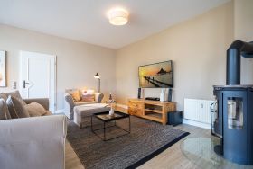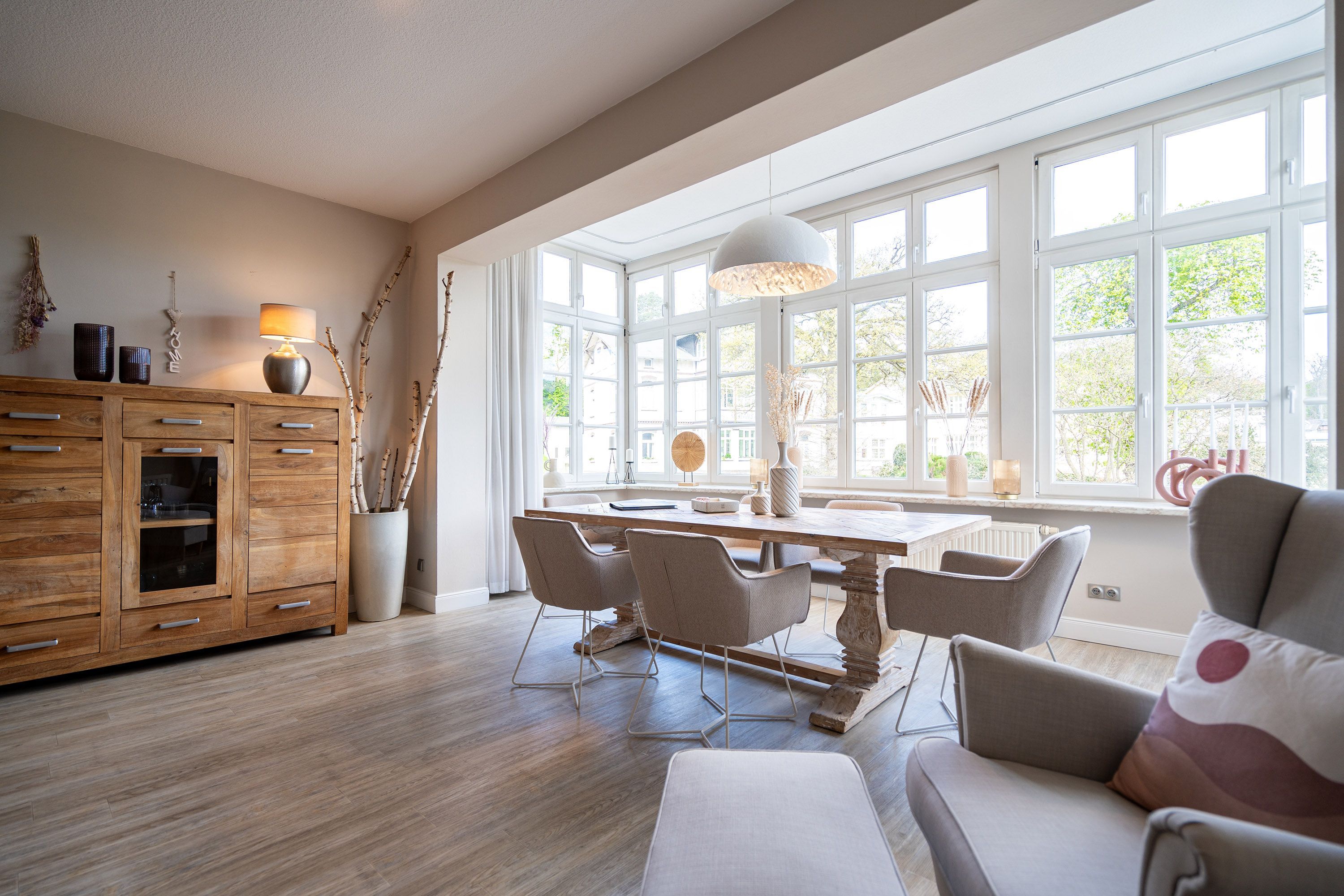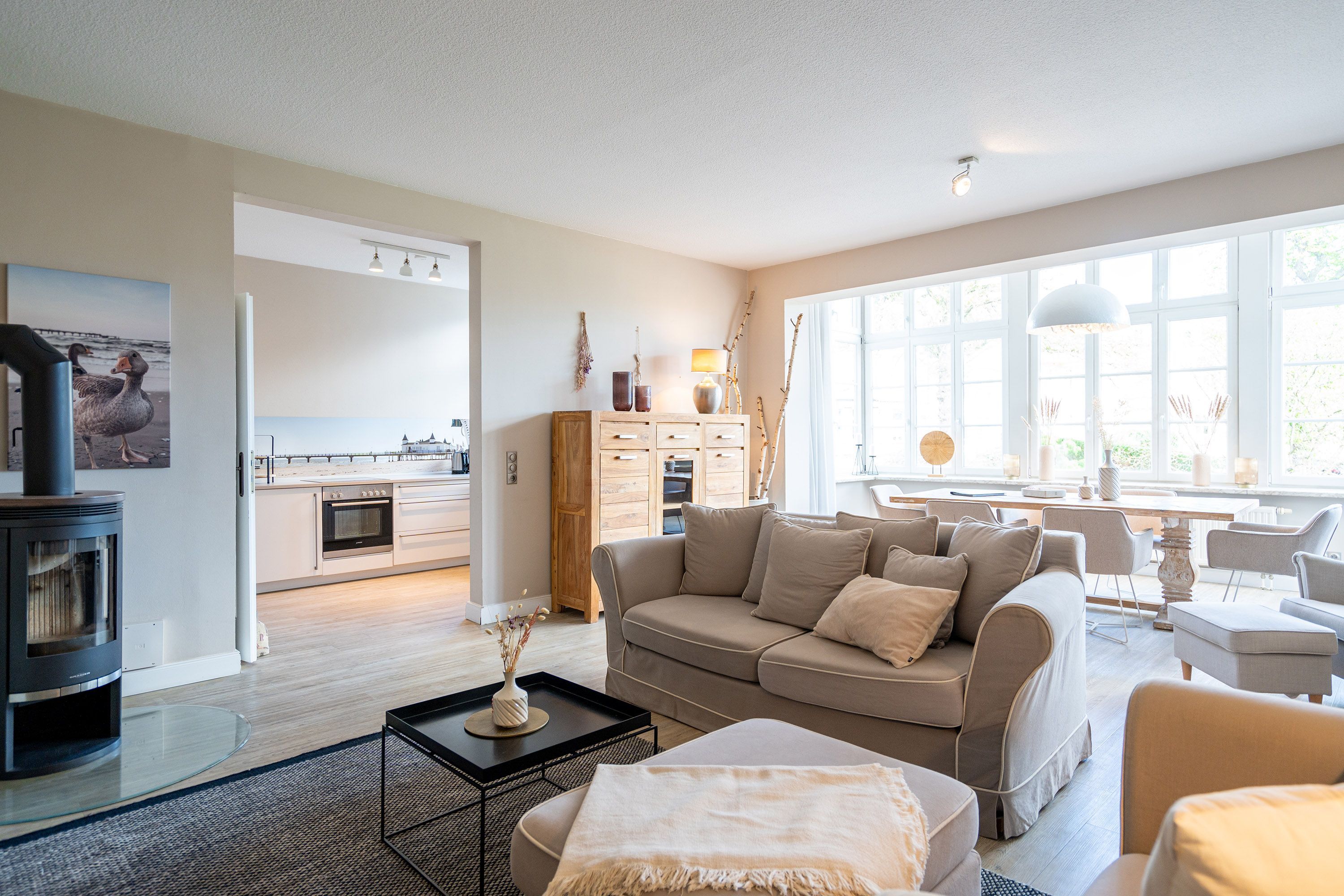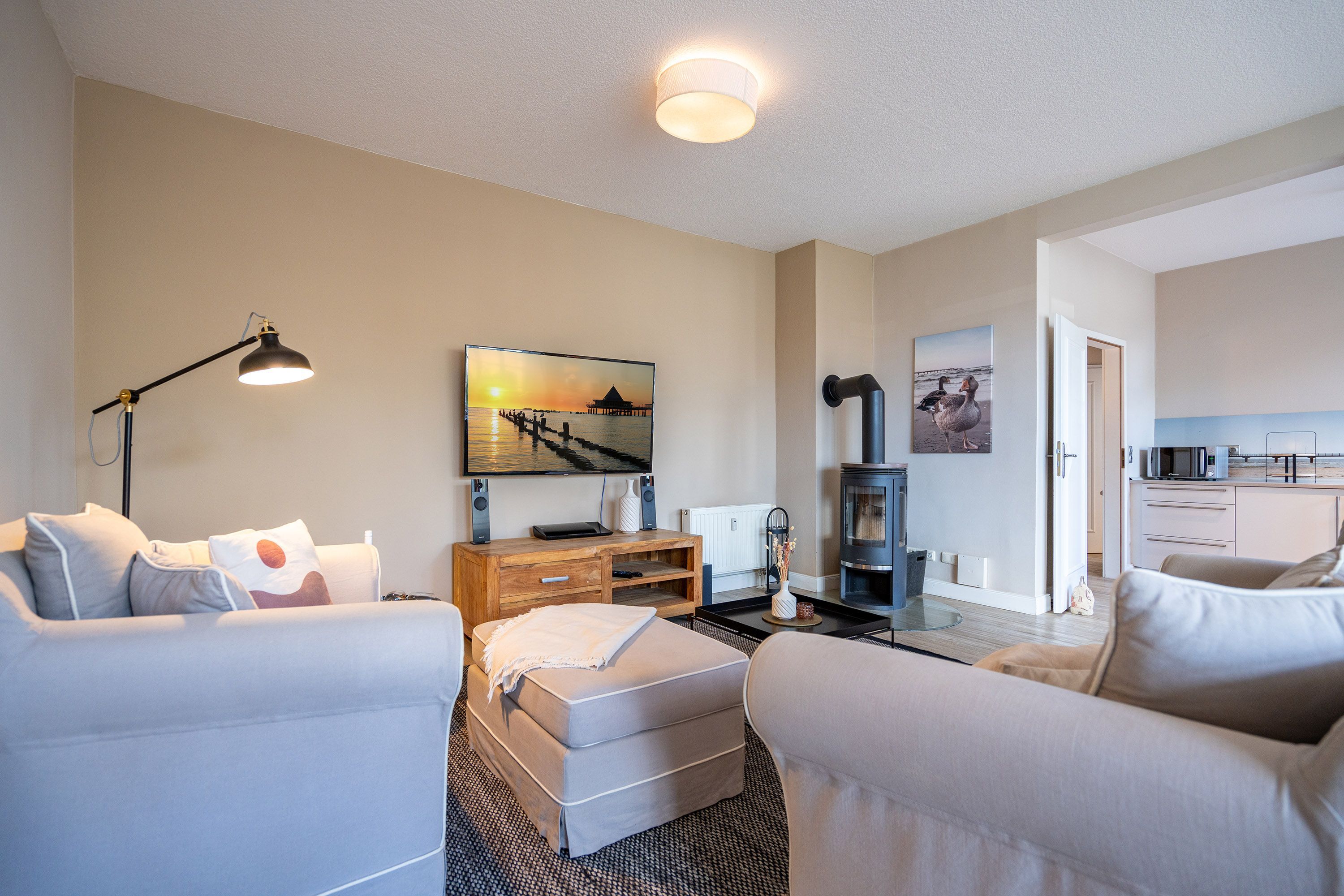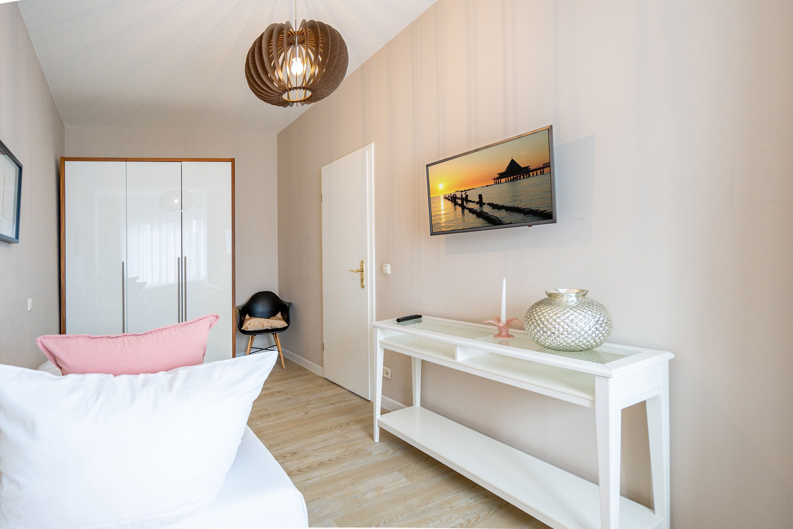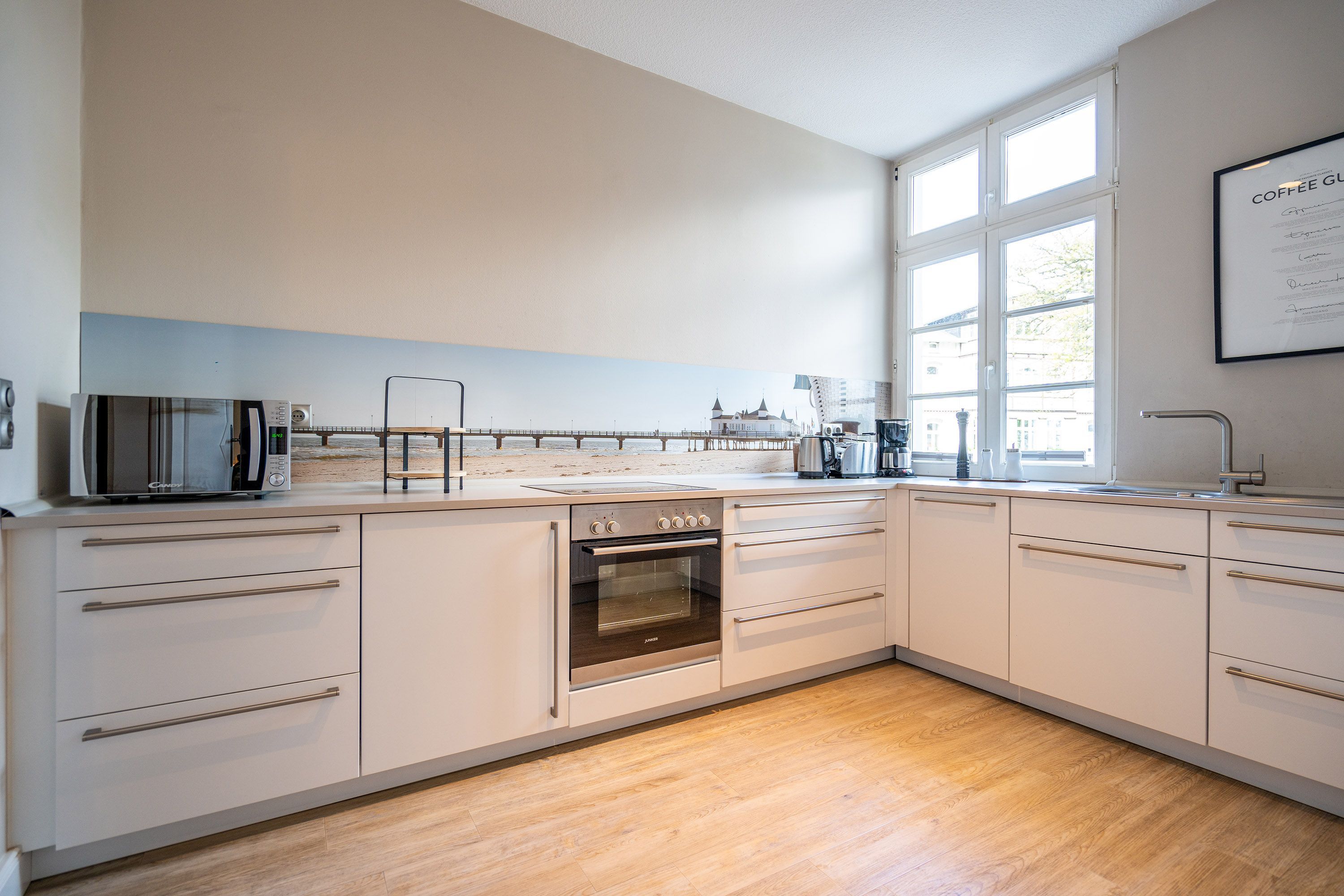 Herzlich willkommen in der Villa Brunnenstraße, Ihrem neuen Wohlfühlparadies an der Ostsee! Hier erwartet Sie ein modernes und lichtdurchflutetes Domizil, das mit viel Liebe zum Detail gestaltet wurde, um höchsten Komfort und eine stilvolle Atmosphäre zu vereinen. Die Verbindung aus zeitgemäßem Design und einer gemütlichen Wohnlichkeit sorgt dafür, dass Sie sich vom ersten Moment an wie zu Hause fühlen. Das charmante 3-Raum-Appartement mit einer großzügigen Wohnfläche von 85 m² bietet ausreichend Platz für 4 Personen und ein Kleinkind, das bequem im bereitgestellten Kinderreisebett untergebracht werden kann. Diese Wohnung ist der perfekte Rückzugsort für Familien, Paare oder Freunde, die gemeinsam eine unvergessliche Zeit verbringen möchten. Beim Betreten des Appartements werden Sie von einem weitläufigen und hellen Wohnbereich empfangen, der mit einer bequemen Sitzgruppe, einem einladenden Kamin und einem modernen Flat-TV ausgestattet ist. Hier können Sie nach einem erlebnisreichen Tag am Meer die Seele baumeln lassen, ein gutes Buch lesen oder einen gemütlichen Filmabend genießen der perfekte Ort, um zur Ruhe zu kommen. Das Hauptschlafzimmer bietet Ihnen ein besonders hochwertiges Doppelboxspringbett (1,60 m x 2,00 m), das für erholsame Nächte sorgt. Von hier aus gelangen Sie in ein zweites, ebenso liebevoll eingerichtetes Schlafzimmer, das mit zwei komfortablen Einzelboxspringbetten (je 0,90 m x 2,00 m) ausgestattet ist. Auch in diesem Raum steht Ihnen ein Flat-TV zur Verfügung, sodass alle Gäste ihre Privatsphäre genießen können. Besonders schön ist der Ausblick aus diesem Zimmer: Sie blicken direkt auf die charmanten Villen der Brunnenstraße ein Anblick, der die Ruhe und Eleganz dieses besonderen Ortes unterstreicht. Die offene Küche ist nicht nur komplett ausgestattet, sondern auch ein echter Blickfang. Sie lädt dazu ein, gemeinsam zu kochen, kulinarische Köstlichkeiten zuzubereiten und in geselliger Runde Zeit zu verbringen. Ergänzt wird das Appartement durch ein stilvoll gestaltetes Duschbad, das Ihnen einen weiteren Ort der Entspannung bietet. Damit Sie Ihren Aufenthalt rundum sorglos genießen können, steht Ihnen ein PKW-Stellplatz (Nr. 2) direkt auf dem Innenhof der Villa zur Verfügung bequem und sicher, damit Ihr Fahrzeug gut untergebracht ist.