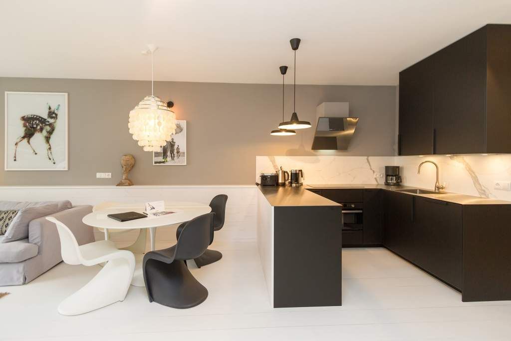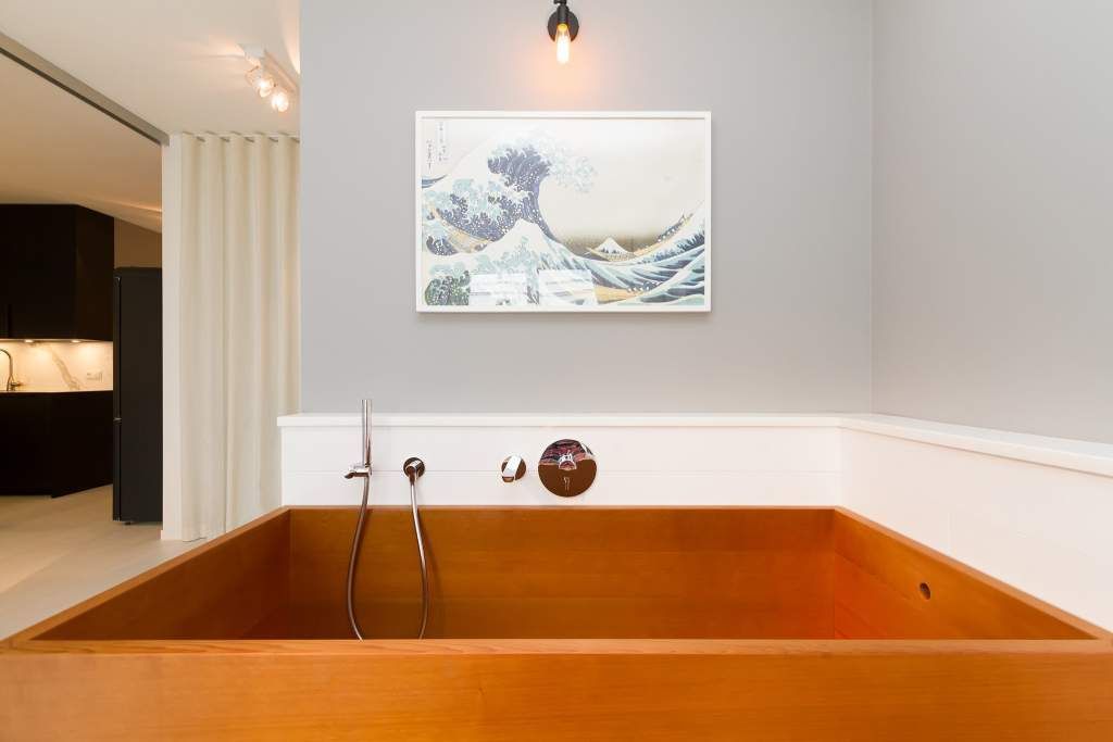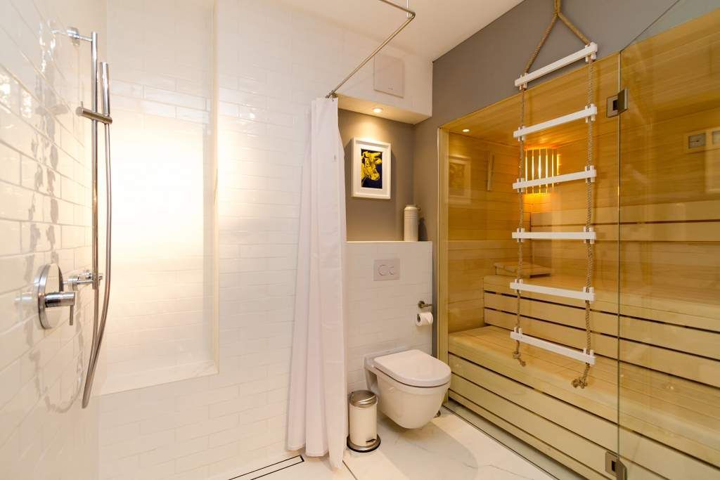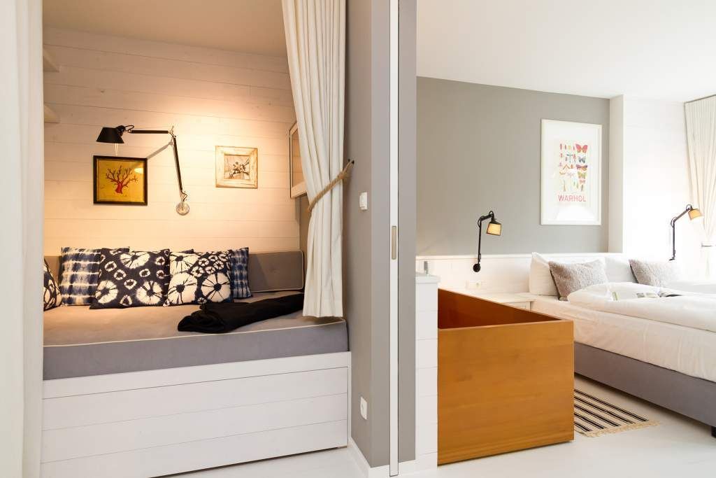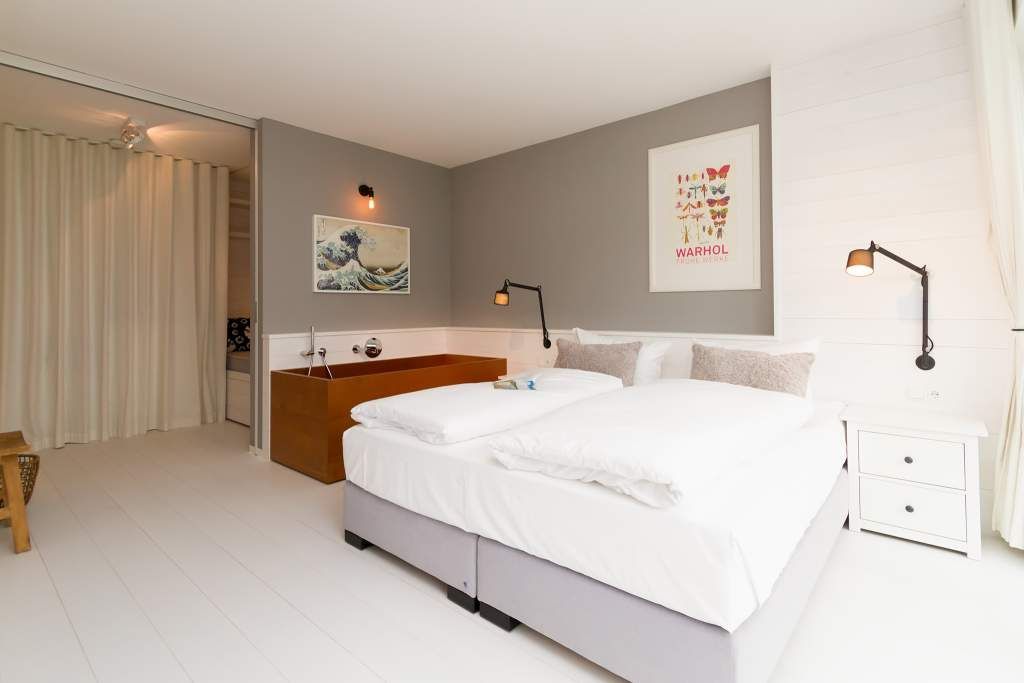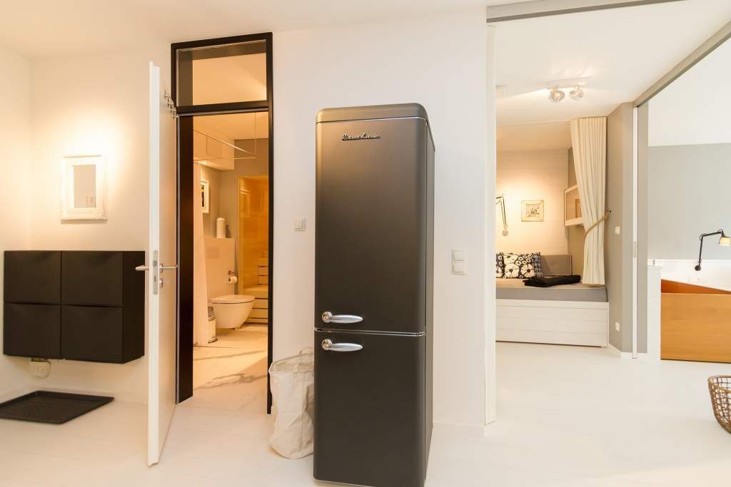 Der Urlaub ist die schönste Zeit des Jahres. Und die verbringt man natürlich gern in einer ganz besonders schönen Umgebung. Ein echter Wohlfühlort für eine solche Auszeit ist die Design-Wohnung Nummer 05 im ersten Obergeschoss der Villa Strandgrün in Heringsdorf. Drei bis vier Personen bieten die 68 Quadratmeter Platz zum Abschalten und Energietanken. Ein stilvolles Designkonzept durchzieht hier jeden Raum. Stimmig und harmonisch bis ins Detail der Lampen und Wohn-Accessoires. Das wunderschöne Wohn-Esszimmer mit der offenen, mit hochwertigen Geräten ausgestatteten und in modernem Anthrazit gehaltenen Küche ist eine absolute Wohlfühlzone. Ein Hingucker ist der große, freistehende Vintage-Kühlschrank. Exklusive und komfortable Designmöbel wie der Esstisch mit seinen vier Stühlen oder das große Sofa, das auch als Schlafmöglichkeit für eine Person fungieren kann, verleihen dem Zimmer ein elegantes Flair. Zur besonderen Atmosphäre trägt auch das Marmorboard mit dem Kamin bei. Der so genannte Tunnelkamin kann auch vom Schlafzimmer aus betrachtet werden. Außergewöhnlich und extravagant ist die freistehende Badewanne aus Zedernholz im Schlafzimmer. So können Sie vom entspannten Im-Wasser-Liegen nahtlos zur Entspannung ins große Doppelbett (1,80 m x 2,00 m) überwechseln. Eine kuschelige Schlafkoje (1,47 m x 1,97 m) grenzt unmittelbar an das Schlafzimmer, kann aber durch einen Vorhang und Schiebetüren verschlossen werden. Wohn- und Schlafzimmer sind mit Flat-TVs ausgestattet. Sowohl vom Schlafzimmer als auch vom Wohnzimmer gelangt man auf den geräumigen Süd-West-Balkon mit Schalenstühlen und einem Esstisch. Beim Blick in den begrünten Garten und auf die benachbarten wunderschön sanierten Bädervillen sind Alltagsstress und Hektik schnell vergessen. Die Wohnung verfügt über ein großes Bad mit Dusche, Waschtisch, WC und Panoramasauna. Handtücher, die Ausstattung mit Bettwäsche und kostenfreies WLAN sind in dieser Urlaubsauszeit inklusive. Die Wohnung hat einen Pkw-Stellplatz in der Tiefgarage.