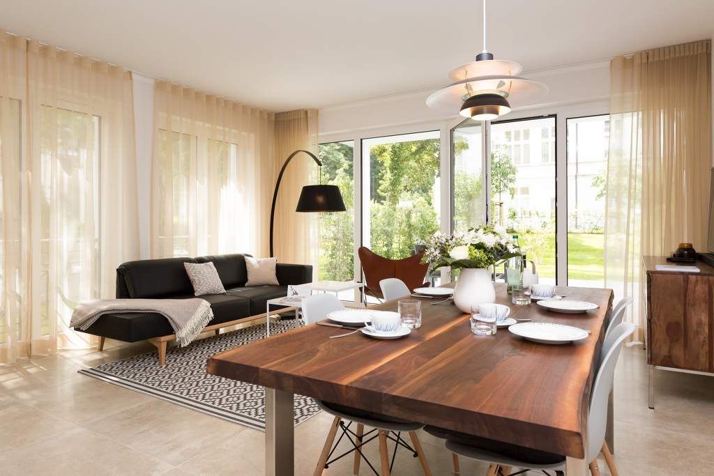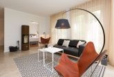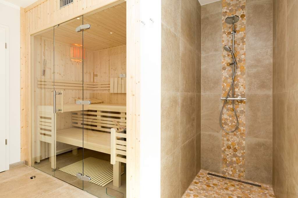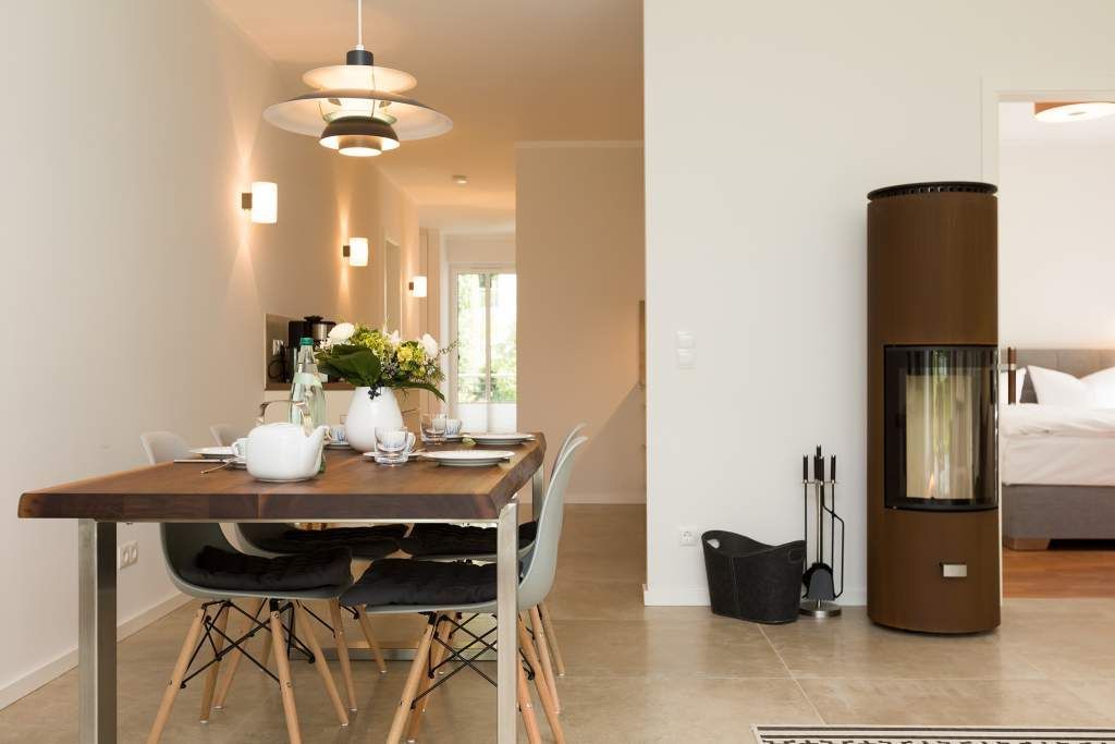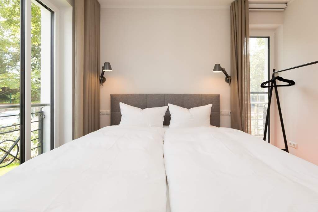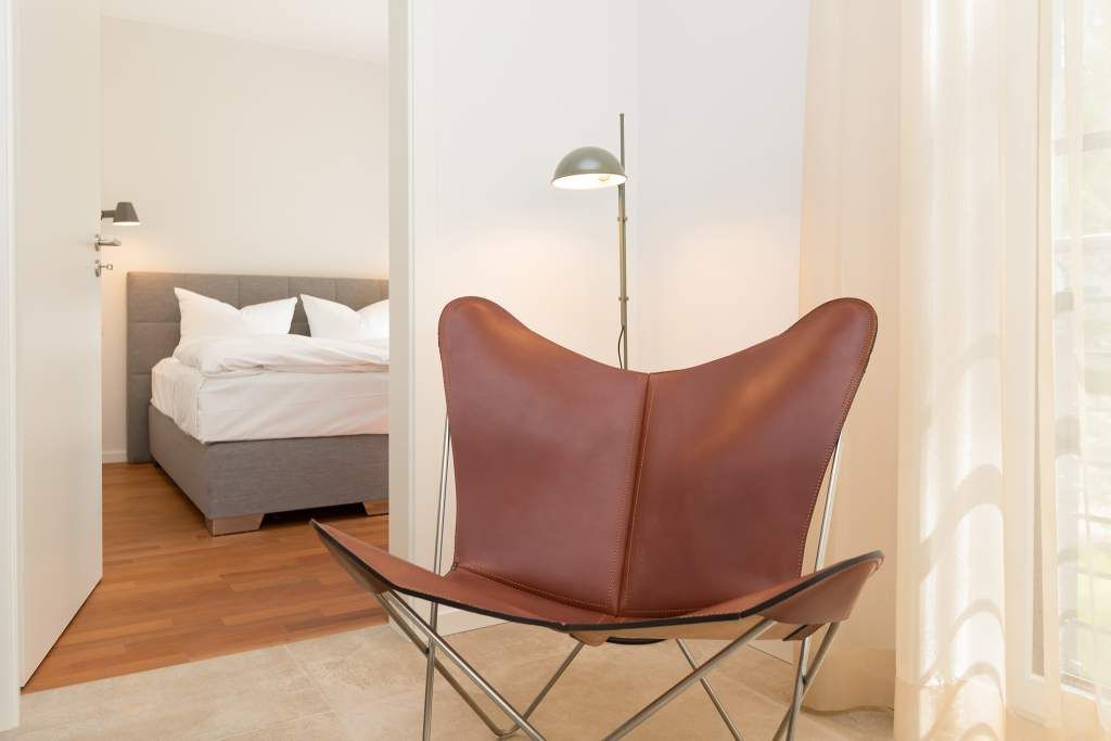Zurücklehnen, die Beine ausstrecken, ein kühles Getränk vor sich auf dem Tisch, den Blick über das üppige Grün des Gartens schweifen lassen. Urlaub für die Seele. In der Wohnung Nummer 3 in der Villa Strandgrün ist das möglich. Egal ob auf der 30 Quadratmeter großen Gartenterrasse, im lichtdurchfluteten und mit Design-Möbeln eingerichteten Wohnzimmer oder der wohnungseigenen Panorama-Sauna in den 80 Quadratmetern dieses Ferienappartements wird das Wohlfühlen und Entspannen leicht gemacht. Vier Personen und ein Kleinkind (im Kinderreisebett) haben hier viel Platz zum Durchatmen. Schlicht, aber nobel ist Ihr Urlaubsdomizil vom Ledersofa, über die beiden Butterfly Sessel, die ausgefallene Bogenlampe bis hin zum behaglichen Musterteppich geprägt vom skandinavischen Design. Der Kaminofen sorgt an kühlen Tagen für wohlige Behaglichkeit. Der 49 Zoll-Flat-TV mit Blue Ray-Player ist ein echter Hingucker. Ein Highlight des Wohnzimmers, an das sich eine offene und hochwertig ausgestattete Küche anschließt, ist der große Echtholztisch mit den Vintage-Schalenstühlen. Für einen erholsamen und traumreichen Schlaf sorgen in den beiden Schlafzimmern die komfortablen Doppelboxspringbetten (1,60m x 2,00 m). In einem Schlafzimmer gibt es in den eigens angefertigten Einbauschränken reichlich Ablagemöglichkeiten. Beide Schlafzimmer verfügen ebenfalls über Flat-TVs. Eine Panoramasauna in einem der beiden geräumigen Bäder sorgt für den absoluten Wellnessgenuss. Beide Bäder haben darüber hinaus jeweils Dusche, Waschtisch und WC. Sogar eine Waschmaschine mit Trockner ist hier zu finden. Damit Sie sich so richtig entspannen können, sind die Betten bezogen und Handtücher liegen für Sie bereit. In der Tiefgarage ist ein Stellplatz reserviert. Für den Tag am Meer steht Ihnen ein Strandkorb am Strand von Mitte Mai bis September (je nach Witterung) zur Verfügung.