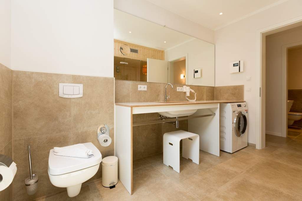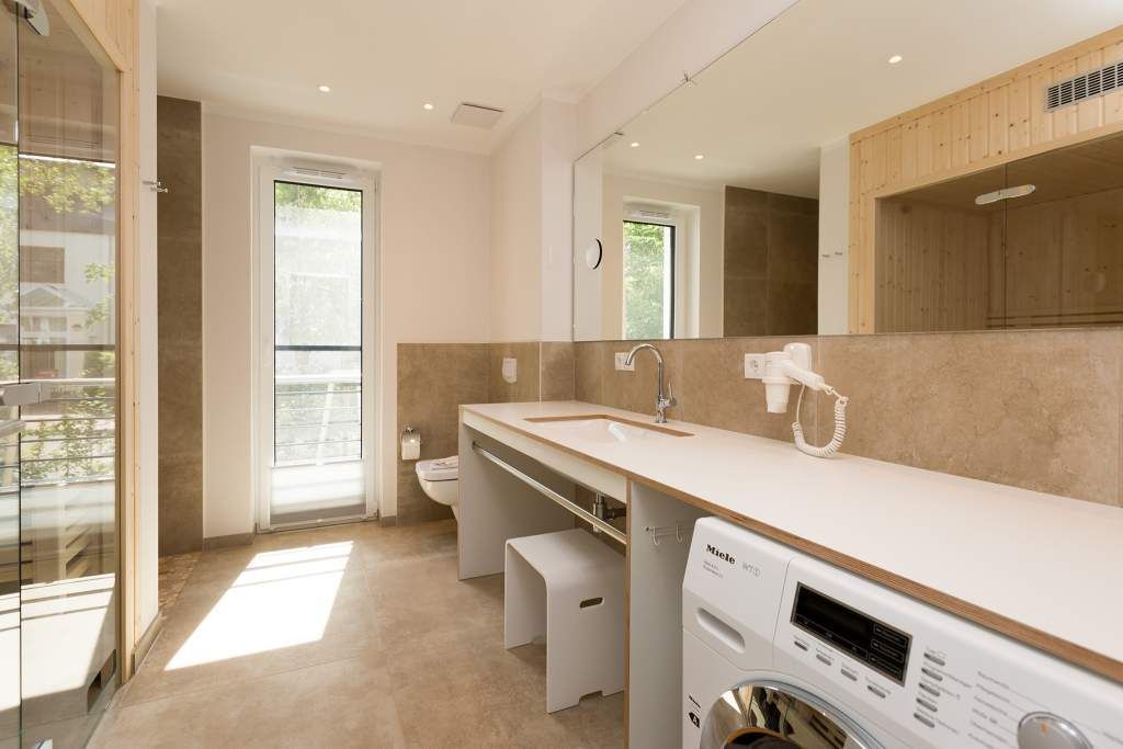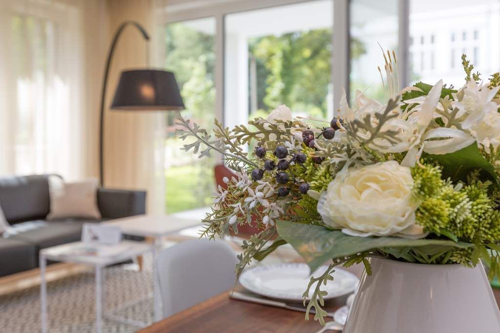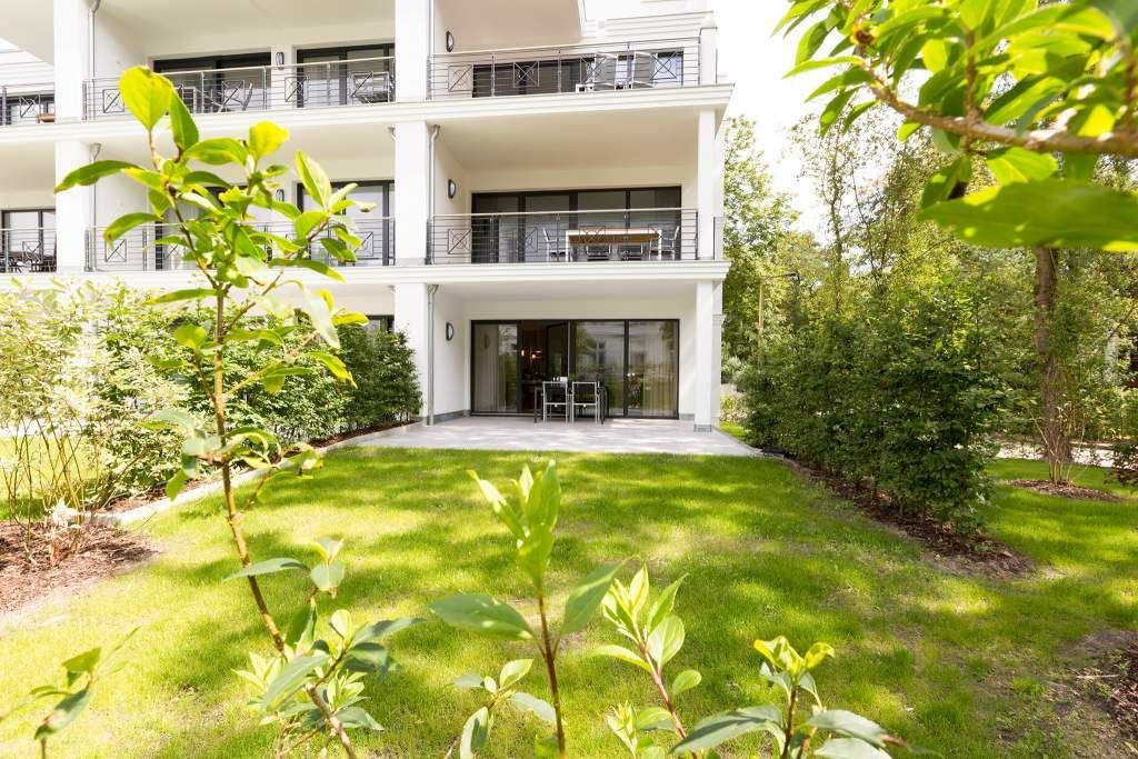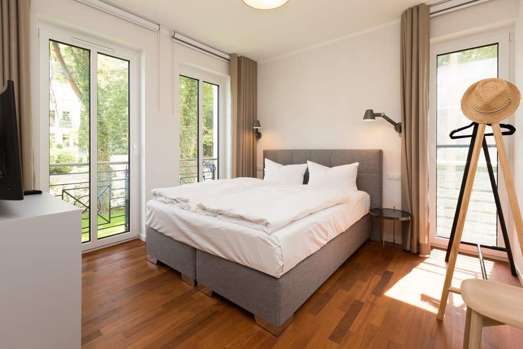 Vogelzwitschern und das sanfte Rauschen der Ostsee: Umgeben von wunderschönen, alten Bäumen atmet die 2017 fertig gestellte Villa Strandgrün das Flair der sie umgebenden Bädervillen. Mit seinen Balkonen und Erkern, die die Fassade untergliedern und auflockern, passt sich das strandnahe (100 Meter) Urlaubsdomizil angenehm in das Bild der aufwendig sanierten Villen um sie herum ein und wirkt selbst wie eine Weiterführung der einst mondänen Architektur des 19. Jahrhunderts. Das stilvolle Äußere setzt sich im exklusiven und eleganten Wohndesign im Inneren fort. Jede Ferienwohnung verfügt über eine Sonnenterrasse oder mehrere Balkone. Besondere Highlights eines jeden Appartements sind der Kamin, eine Sauna und je zwei Bäder bzw. ein zusätzliches Gäste WC. Die großzügigen 3- und 4-Raum-Suiten wurden mit allem Komfort konzipiert und ausgestattet. Vom ASA-Geschirr bis zu den hochwertigen Designmöbeln steht das Wohlfühlen an erster Stelle. In der Tiefgarage gibt es für jedes Appartement einen Stellplatz. Außerdem steht für jede Wohnung ein Briefkasten am Haus zur Verfügung.