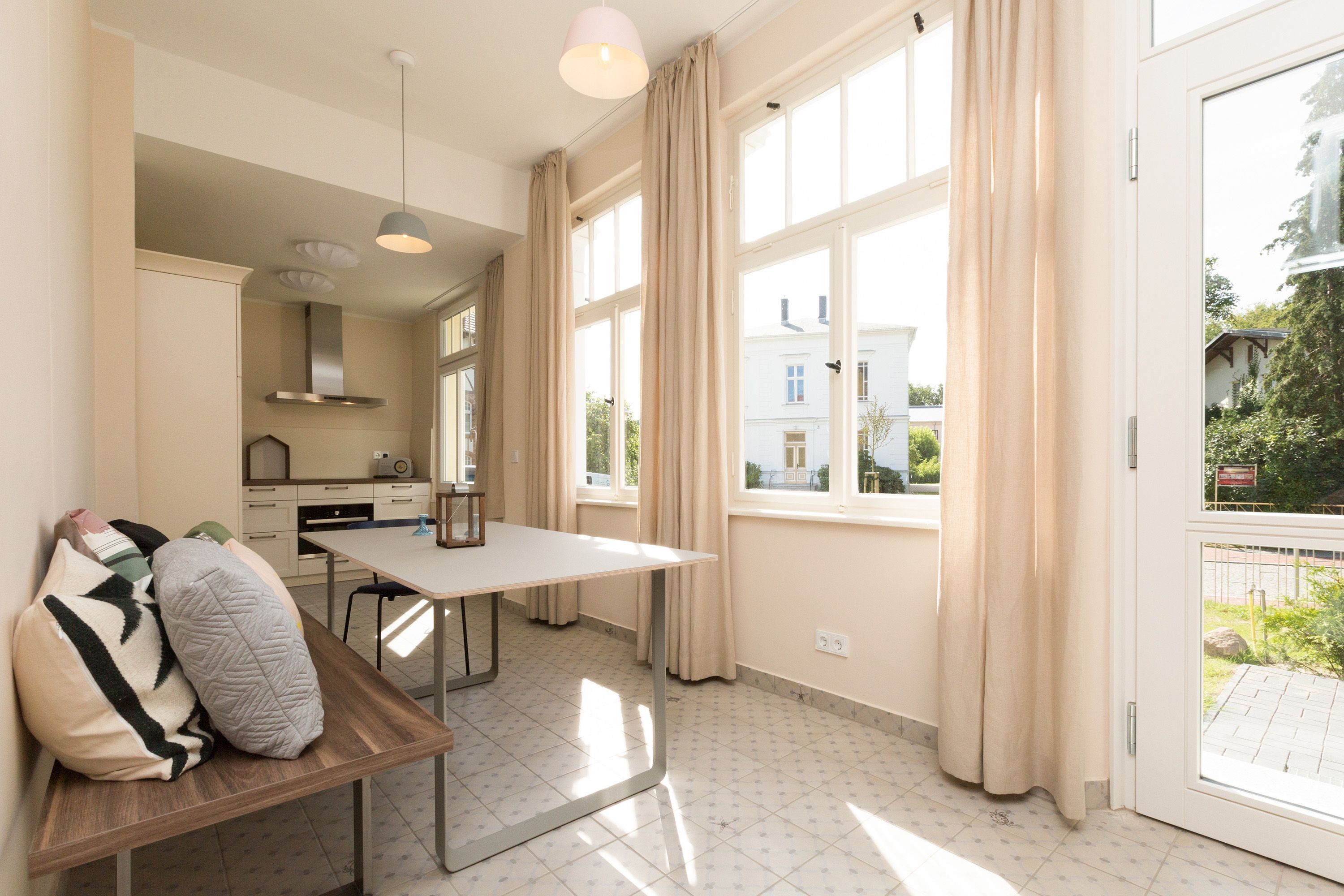 Ein Haus mit Geschichte, die man sehen kann. Ein Haus, das den Geist alter und neuer Zeiten atmet. Das Baltische Haus - eine alte, doch komplett sanierte Bäderarchitekturvilla - lädt ein zu einem Wohlfühlen zwischen den Zeiten und in stylischen Räumen. Stilvoll und wie der Kaiserzeit entsprungen das Äußere, herrscht im Inneren das Design-Konzept der Innenarchitekten von Green Living, die auf wundervolle Weise das mondäne Flair der Kaiserzeitvilla mit dem Design einer ökologischen und gesunden Lebensweise kombiniert haben. Denn Green Living bringt Design und Ökologie in Einklang und verbindet beides mit dem Flair des historischen Hauses. Im Baltischen Haus wurden auf diese Weise gesunde Wohnräume geschaffen, die durch den bewussten Einsatz hochwertiger Materialien nachhaltigen Luxus in ihre Ferienträume bringen - natürlich, allergikerfreundlich und ressourcenschonend. Die Appartements sind vom Fußboden bis zum Lichtkonzept von den Inneneinrichtern konzipiert. Das Highlight einer jeden Wohnung ist die Kombination mit der ursprünglichen Bausubstanz, die bewusst an vielen Stellen in den Räumen sichtbar gelassen wurde. Im Erdgeschoss des Hauses kann der Saunabereich mit einer Finnischen Sauna von allen Gästen genutzt werden. Sie wollen, dass Ihr Urlaub etwas Besonderes wird? In den Appartements und Lofts des Baltischen Hauses Urlauben Sie in einem außergewöhnlichen Ambiente. Das WLAN-Netz kann kostenfrei genutzt werden.