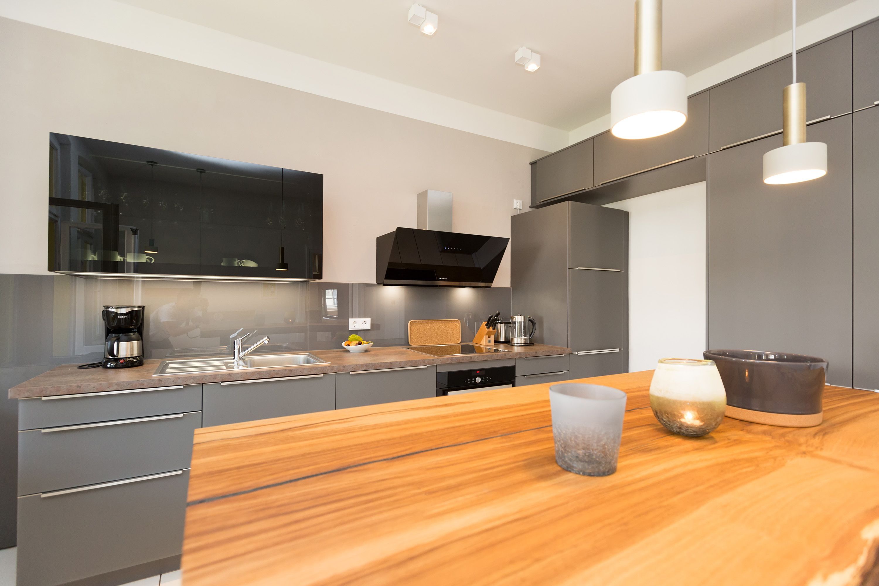 Luftig, licht, lässig und luxuriös sind die 85 Quadratmeter der Wohnung Nummer 4 im ersten Obergeschoss des baltischen Hauses. Zwei wunderschöne Veranden, ein gemütliches und trendiges Wohnzimmer, ein kuscheliges Schlafzimmer und eine absolut stylische Küche gehören zu diesem Ferienappartement, dass Sie mit allem verwöhnt, was Sie sich für einen erholsamen und exklusiven Urlaub wünschen. Und das auf gesunde und nachhaltige Weise. Denn in diesem Urlaubsdomizil wurde auf schädliche Lacke, Leime und Farben verzichtet. Stattdessen erwartet Sie eine Designeinrichtung von Green Living, die ressourcen- und umweltschonend aus hochwertigen Materialien extra für diese Wohnung angefertigt wurde und besonders Allergiker freundlich ist. Helle und warme Pastelltöne und uriger Dielenboden sorgen für Gemütlichkeit. Bis zu fünf Personen können hier gemeinsam entspannen und eine schöne Zeit genießen. Besonders einladend ist die große Veranda mit dem Esstisch. Die moderne Wohnküche ist mit allen Küchengeräten und erlesenem ASA-Geschirr ausgestattet. Ein massiver Echtholztisch ist Ess-, Verweil- und Arbeitsplatz in einem. Zentrum des Appartements ist das geräumige Wohnzimmer. Die riesige Wohnlandschaft mit Schlaffunktion ist ideal für das Auszeit-Entspannungsprogramm: Das süße Nichtstun mit Blick auf einen großen Flat-TV. Die skandinavischen Design-Regale verleihen dem Raum mit ihrem feinen Linienspiel zeitlose Eleganz. „Zeitlose Eleganz“ so lautet denn auch das Motto dieser Wohnung. Sie setzt sich im komfortablen Schlafzimmer mit Doppelbett (1,60 m x 2,00 m) und geräumigem Kleiderschrank fort. In dieses gelangt man über eine zweite Veranda, die im 70er Jahre-Stil zum Chillen einlädt. Das geschmackvoll designte Bad verfügt über einen Waschtisch, WC und eine Tropendusche. Handtücher liegen dort für Sie bereit. Ebenso ist das Bett bezogen. Zu der Wohnung gehört außerdem ein Außenstellplatz für Ihr Auto. In einem Hauswirtschaftsraum im Erdgeschoss, der vom gesamten Haus genutzt werden kann, steht eine Waschmaschine und ein Trockner zur Verfügung.