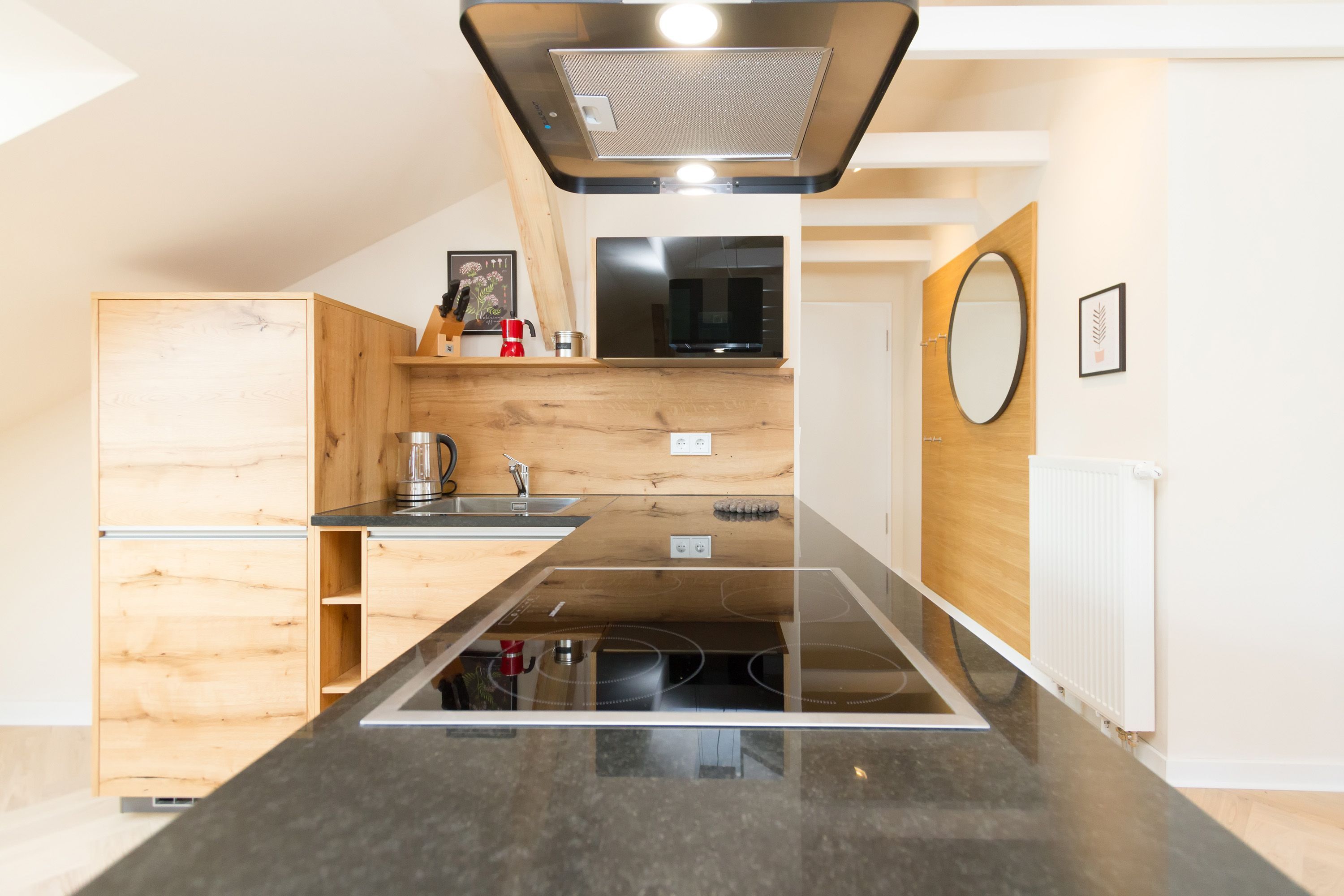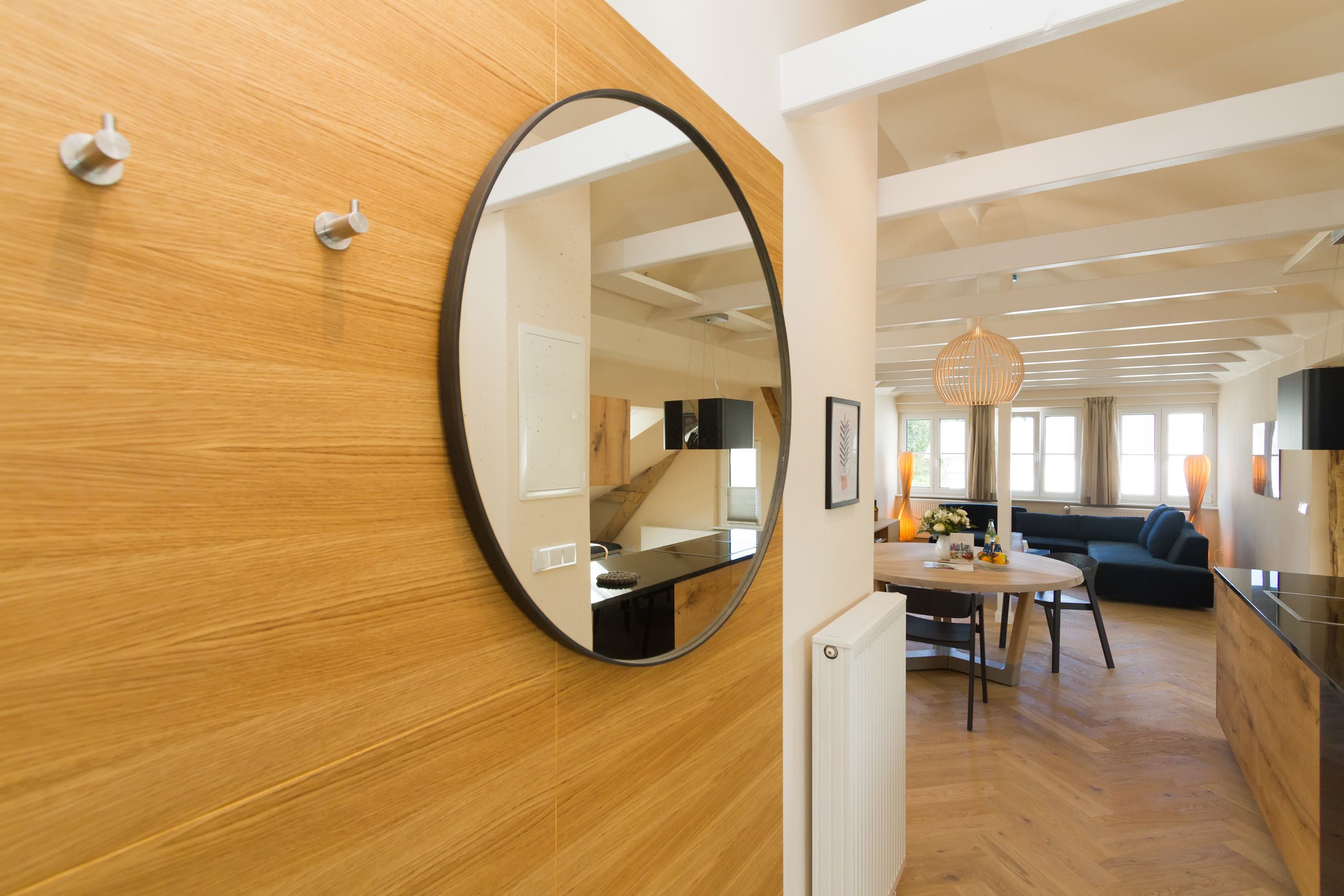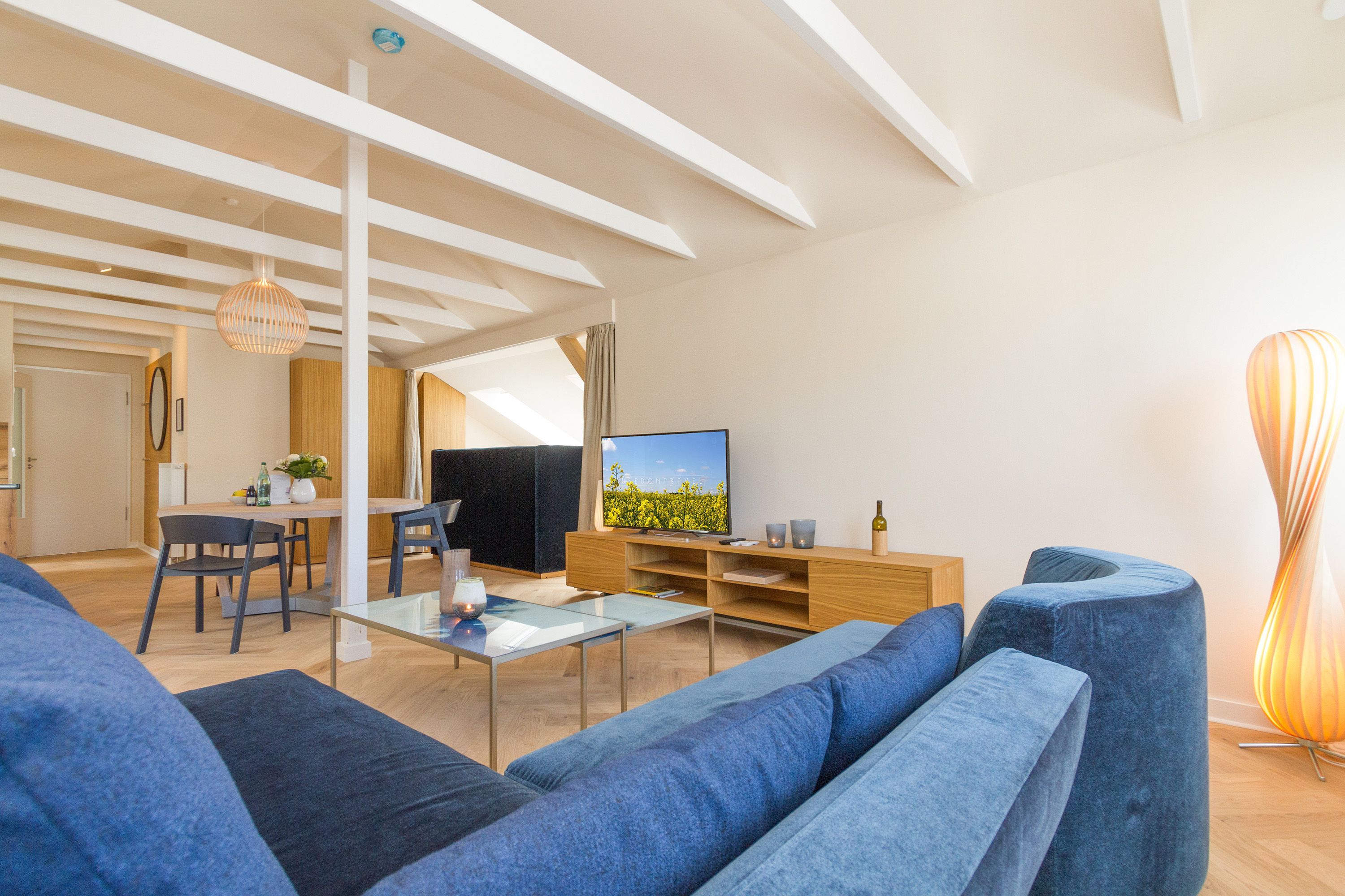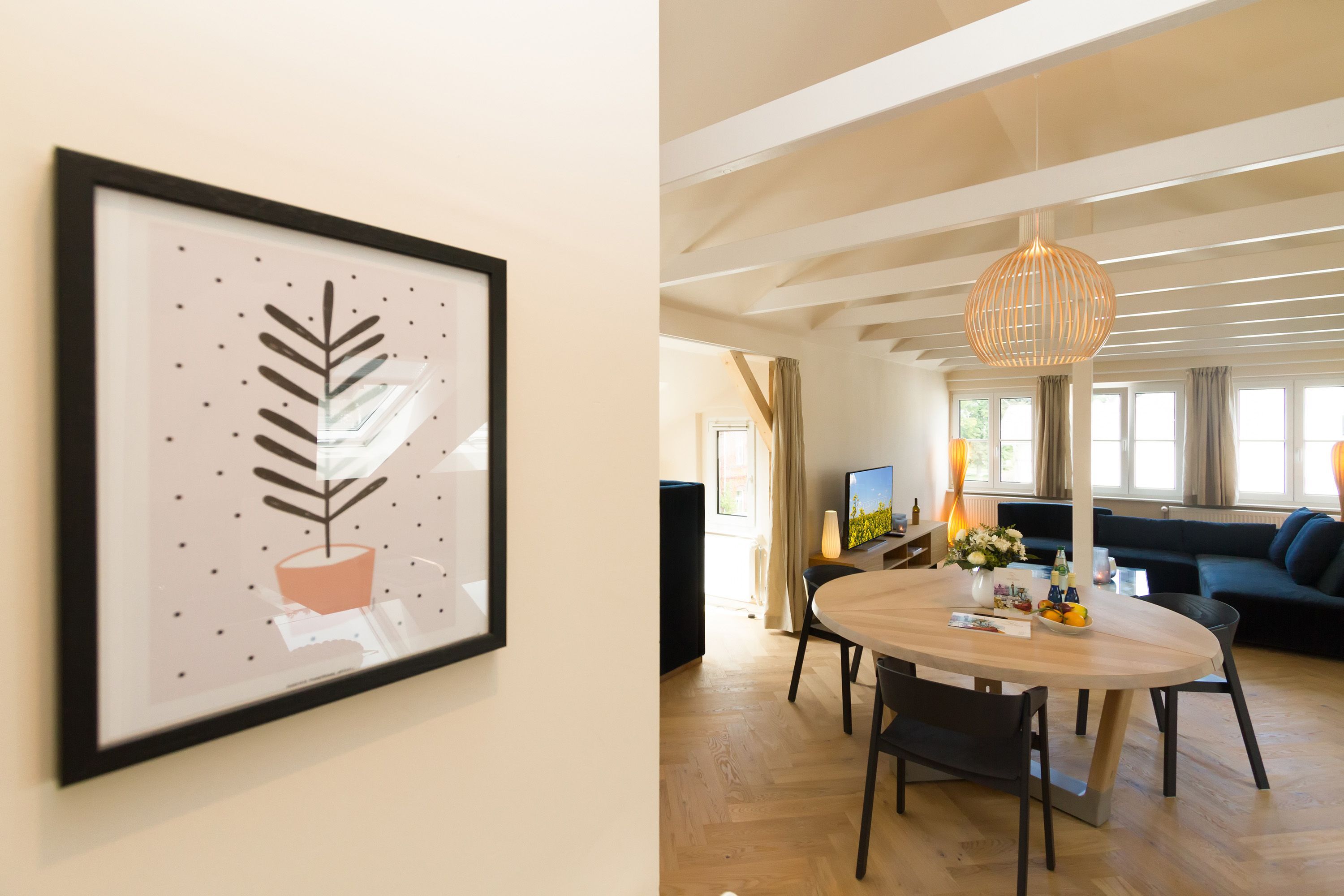 Grenzenlos frei - können Sie sich in der Wohnung Nummer 5 im Dachgeschoss des Baltischen Hauses fühlen. Das Loft außergewöhnlich und exklusiv bietet Ihnen auf 73 Quadratmetern einen Highclass-Urlaubstraum. Auch hier hat die Innenarchitektin von Green Living auf ein harmonisches Konzept aus modernstem und nachhaltigem Wohndesign gesetzt. Hochwertige Materialien wurden ohne schädliche Leime und Lacke zu edlen Design-Möbeln verarbeitet. Der Wohn-Essbereich mit dem offenen Dachstuhl ist geräumig und bietet viel Platz zum Entspannen. Lassen Sie sich auf die breite Wohnlandschaft fallen und genießen Sie Ihre Auszeit. Ein Flat-TV steht hier auf dem Sideboard. Besonders schön ist das Fischgrätenmuster des Eichenparketts. Der massive Echtholztisch mit den Design-Stühlen lädt zum gemütlichen Beisammensein und ausgiebigen Genießen ein. Die offene Küche ist mit allem ausgestattet, was des Hobbykochs Herz höher schlagen lässt. Nur eben einfach eine Spur stylischer. Denn in diesem Loft gibt es sogar für die Abzugshaube eine Fernbedienung. Ein urgemütliches Doppelbett (1,60 m x 2,00 m) sorgt für entspannte Urlaubsträume. Der Schlafbereich mit Kleiderschrank ist mittels eines Leinenvolants vom Wohnbereich abtrennbar. Das Appartement verfügt zusätzlich über ein großes Schlafsofa als Bett für zwei weitere Personen. Ein weiteres Daybed kann ebenfalls zum Übernachten genutzt werden. Zudem besteht die Möglichkeit ein Kinderreisebett unterzubringen. Moderne Metrokacheln und wunderschöne Mosaikbodenfliesen verleihen dem Bad ein exklusives Flair. Es ist mit einer geräumigen Dusche, Waschtisch und WC ausgestattet. Für die perfekte Auszeit, in der Sie sich um nichts kümmern müssen, liegen Handtücher für Sie bereit und das Bett ist bezogen (als Erstausstattung). In einem Hauswirtschaftsraum im Erdgeschoss, der vom gesamten Haus genutzt werden kann, steht eine Waschmaschine und ein Trockner zur Verfügung. Ein Pkw-Stellplatz im Parkhaus Heringsdorf (ca. 2 Gehminuten) ist im Preis enthalten.