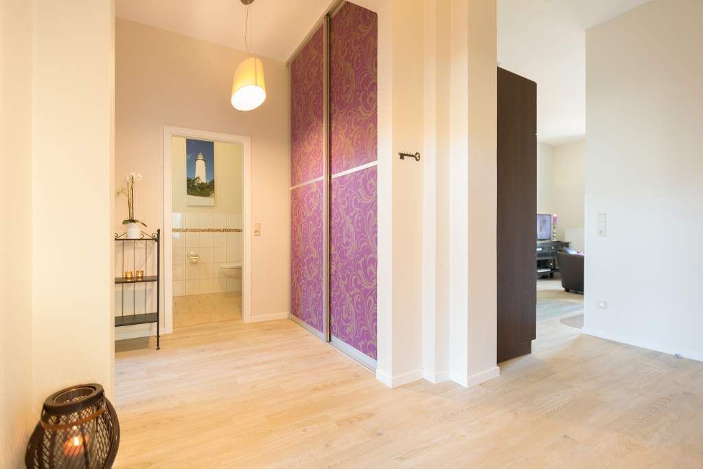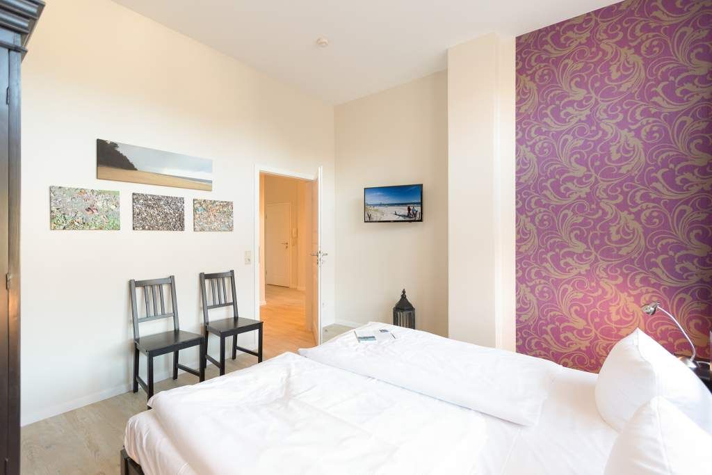 Stylische Farben und ein moderner Look versprühen sofort das passende Urlaubsfeeling. Die schöne 3-Raum-Ferienwohnung (75 qm) befindet sich im 1. Obergeschoss des Hauses und bietet Platz für 4 Erwachsene und ein Kleinkind bis 3 Jahre. An den Wohnbereich mit bequemer Sitzgruppe und schönen Kaminofen schließt sich die offene Küche mit Essplatz an. Auf dem Südbalkon lässt es sich besonders gut relaxen und man genießt den Blick ins Grüne. Die beiden Schlafzimmer mit Doppelbetten und TV, ein Bad mit Dusche und WC und ein Gäste-WC ergänzen die Wohnung. Für die Wohnung steht ein PKW-Stellplatz zur Verfügung. Ein WLAN-Netz im Haus kann kostenfrei genutzt werden. Auf Wunsch stellen wir für unsere kleinen Gäste ein Kinderreisebett (ohne zusätzliche Matratze & Bettzeug) und einen Kinderhochstuhl ( gegen einen Aufpreis) zur Verfügung. Für Ihren Komfort sind die Betten bei der Anreise bezogen und Handtücher liegen bereit (Erstausstattung). Für den Tag am Meer steht Ihnen als besonderes Bonbon von Mitte Mai bis Ende September (je nach Witterung) ein Strandkorb am Strand kostenlos zur Verfügung.