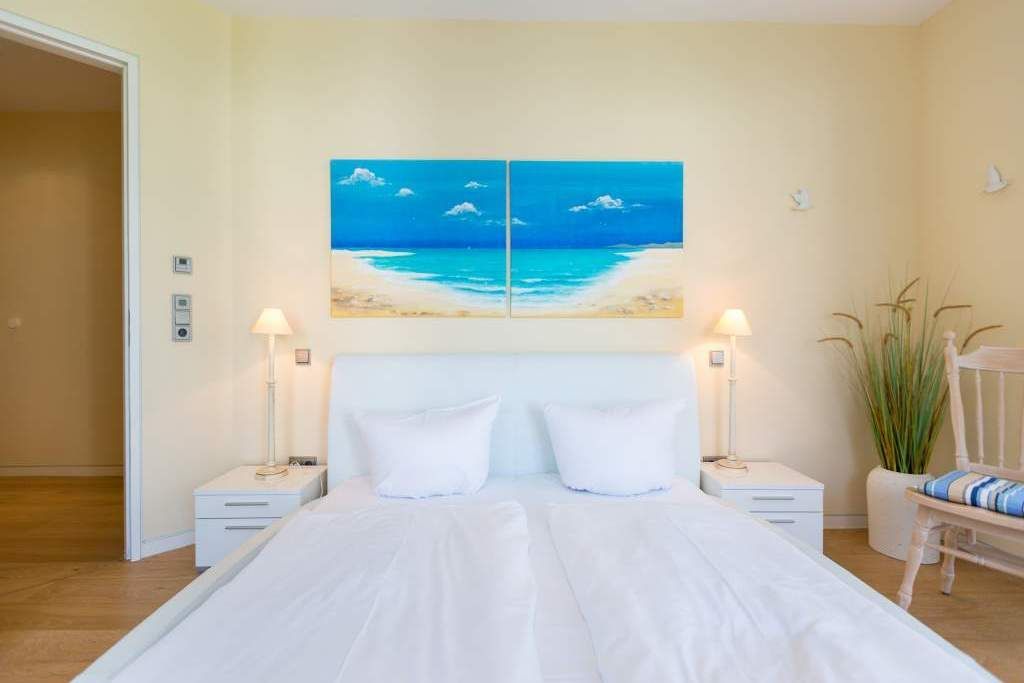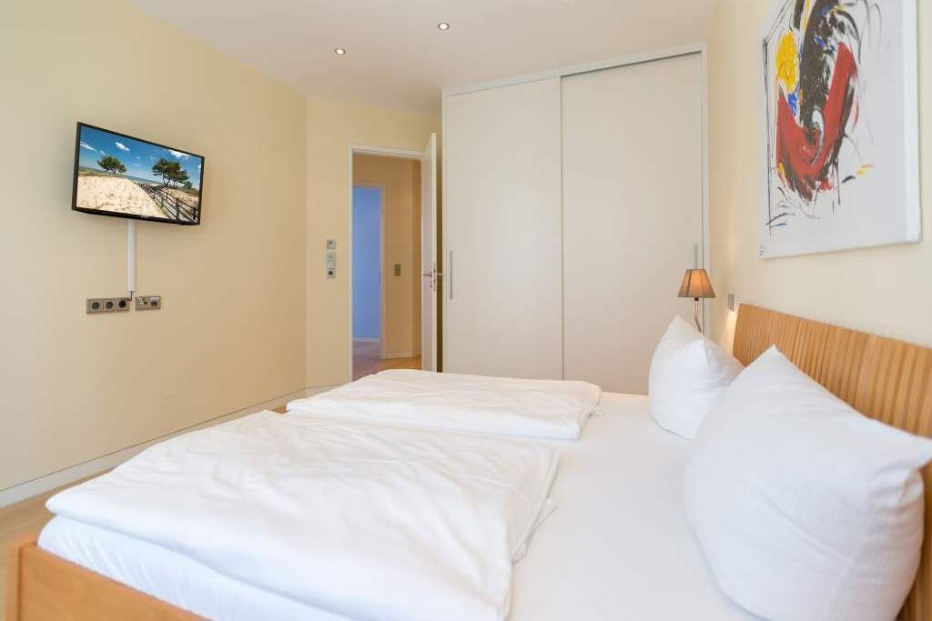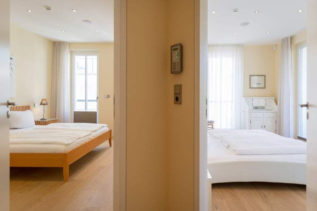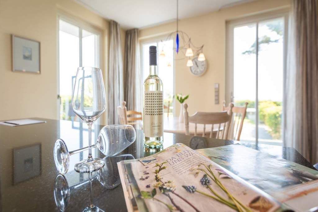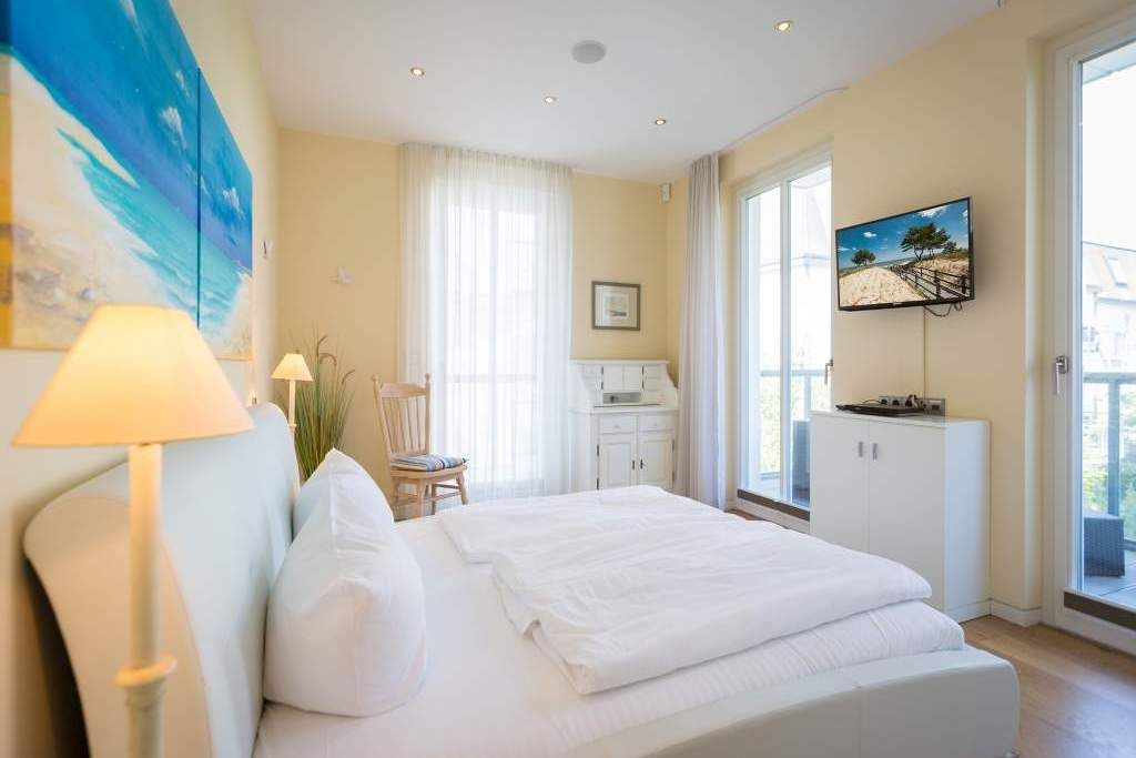 Es ist das schönste Geräusch an der Ostsee: das Rauschen der Wellen, wenn es auffrischt. Aus diesem Appartement haben Sie einen fantastischen Blick auf das grenzenlose Blau. Hier können Sie schon beim Frühstück auf der großen Terrasse aufs Meer hinaus schauen und den Gedanken Weite schenken. Und auf der Rückseite bietet eine zweite Terrasse einen Blick auf den idyllischen Schloonsee. Großzügig und hell ist der 126 Quadratmeter große Ferientraum im Erdgeschoss der Strandresidenzen Bansin. Das Eichenholzparkett gibt diesem Appartement zusätzlich einen exquisiten Touch. Drei Schlafzimmer davon eines mit Etagenbett und ein geräumiges und offenes Wohn-Esszimmer mit hochwertig ausgestatteter Küche bieten Platz für bis zu 6 Personen und ein Kleinkind bis drei Jahre im Kinderreisebett. Wohlfühlen steht hier an erster Stelle. Denn das Ostseepalais wartet mit viel Komfort und Bequemlichkeit auf. Die große Wohnlandschaft aus Leder ist der ideale Ort zum Abschalten. Der Flat-TV oder an kühlen Tagen der knisternde Kamin sorgen für Unterhaltung. Egal ob am freistehenden Küchentresen oder am Echtholztisch Kochen und Essen werden in dieser Küche zum wahren Vergnügen. Schlafen Sie einmal so richtig aus in einem der drei gemütlichen Schlafzimmer. Zwei Schlafzimmer sind mit Doppelbetten (1,80m x 2,00m) eingerichtet (in einem steht 1 DVD-Player zur Verfügung), eines mit Etagenbett. Das Bad verfügt über eine Badewanne und ein absolutes Highlight: eine finnische Sauna. Darüber hinaus gibt es im Ostseepalais 4 ein zweites Badezimmer. Damit keine Wünsche offen bleiben, sind bei Ihrer Ankunft die Betten bezogen und Handtücher liegen bereit. Ein eigener Strandkorb wartet an sonnigen Tagen darauf, Ihnen den Terrassenaufenthalt zu verschönern. Für den Tag am Meer steht Ihnen als besonderes Bonbon von Mitte Mai bis Ende September (je nach Witterung) zusätzlich ein Strandkorb am Strand kostenlos zur Verfügung. In der Tiefgarage gibt es 1 Pkw-Stellplatz Nr 04.