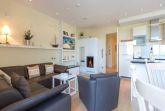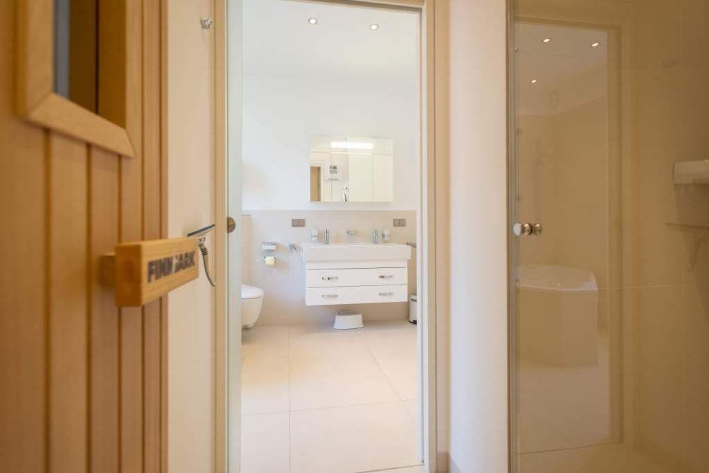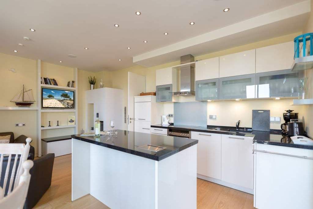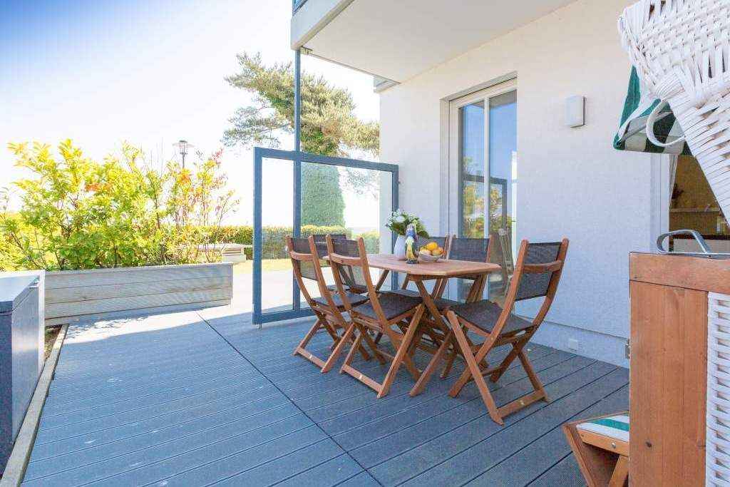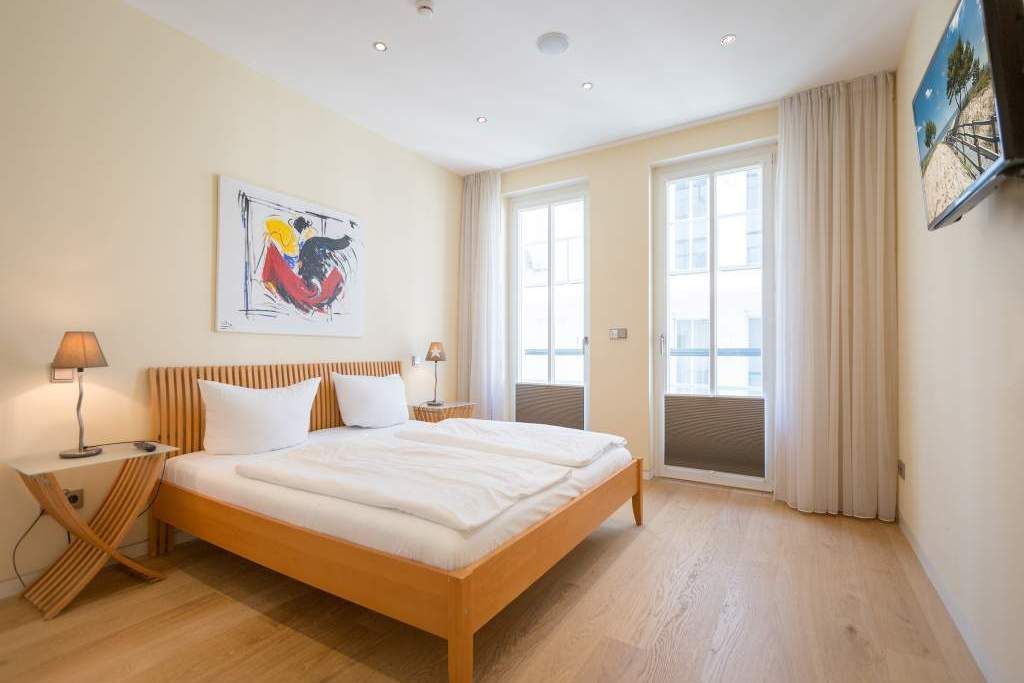 Es ist das schönste Geräusch an der Ostsee: das Rauschen der Wellen, wenn es auffrischt. Aus diesem Appartement haben Sie einen fantastischen Blick auf das grenzenlose Blau. Hier können Sie schon beim Frühstück auf der großen Terrasse aufs Meer hinaus schauen und den Gedanken Weite schenken. Und auf der Rückseite bietet eine zweite Terrasse einen Blick auf den idyllischen Schloonsee. Großzügig und hell ist der 126 Quadratmeter große Ferientraum im Erdgeschoss der Strandresidenzen Bansin. Das Eichenholzparkett gibt diesem Appartement zusätzlich einen exquisiten Touch. Drei Schlafzimmer davon eines mit Etagenbett und ein geräumiges und offenes Wohn-Esszimmer mit hochwertig ausgestatteter Küche bieten Platz für bis zu 6 Personen und ein Kleinkind bis drei Jahre im Kinderreisebett. Wohlfühlen steht hier an erster Stelle. Denn das Ostseepalais wartet mit viel Komfort und Bequemlichkeit auf. Die große Wohnlandschaft aus Leder ist der ideale Ort zum Abschalten. Der Flat-TV oder an kühlen Tagen der knisternde Kamin sorgen für Unterhaltung. Egal ob am freistehenden Küchentresen oder am Echtholztisch Kochen und Essen werden in dieser Küche zum wahren Vergnügen. Schlafen Sie einmal so richtig aus in einem der drei gemütlichen Schlafzimmer. Zwei Schlafzimmer sind mit Doppelbetten (1,80m x 2,00m) eingerichtet (in einem steht 1 DVD-Player zur Verfügung), eines mit Etagenbett. Das Bad verfügt über eine Badewanne und ein absolutes Highlight: eine finnische Sauna. Darüber hinaus gibt es im Ostseepalais 4 ein zweites Badezimmer. Damit keine Wünsche offen bleiben, sind bei Ihrer Ankunft die Betten bezogen und Handtücher liegen bereit. Ein eigener Strandkorb wartet an sonnigen Tagen darauf, Ihnen den Terrassenaufenthalt zu verschönern. Für den Tag am Meer steht Ihnen als besonderes Bonbon von Mitte Mai bis Ende September (je nach Witterung) zusätzlich ein Strandkorb am Strand kostenlos zur Verfügung. In der Tiefgarage gibt es 1 Pkw-Stellplatz Nr 04.