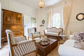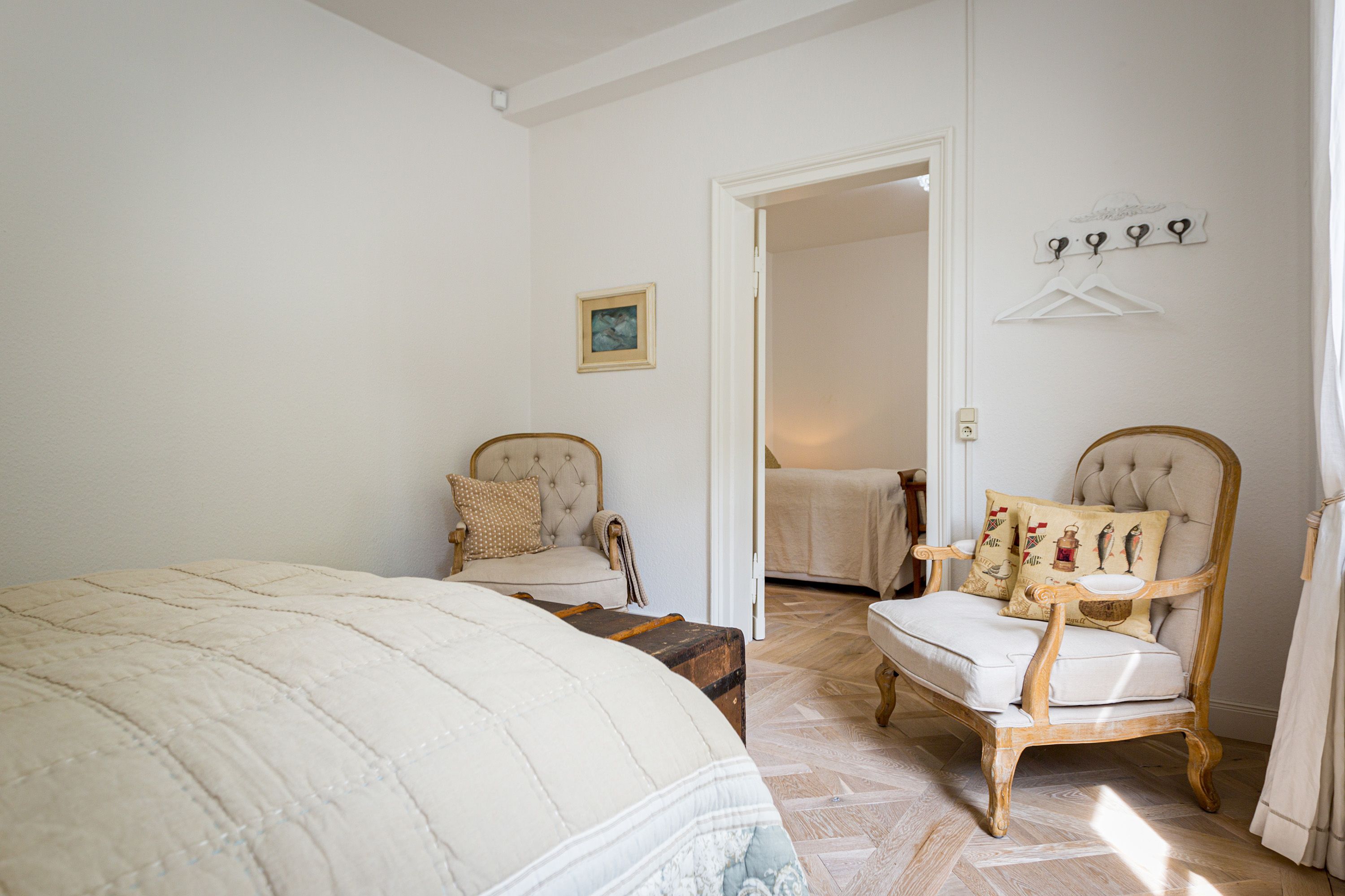 Die idyllische Villa Strandschlösschen ist ein echtes Kleinod aus dem 19. Jahrhundert. Modern saniert bietet sie 170 qm modernen Wohnkomfort in historischem Ambiente. Auf 3 Etagen finden bis zu sechs Personen und zwei Kleinkinder bis zwei Jahre (im Kinderreisebett) viel Platz für Ihren Urlaub am Meer. Machen Sie es sich gemütlich in dem wunderschönen Wohnzimmer, der urigen Küche, den zwei charmanten Schlafzimmern oder dem kleinen Studio unter dem Dach. Überall sorgen die liebevoll ausgesuchten Dekorationen und antiken Schmuckstücke für ein ganz besonderes Wohngefühl. Für mitreisende Familie oder Freunde (7. und 8. Person) kann ein kleines Appartement im Anbau dazu gemietet werden.