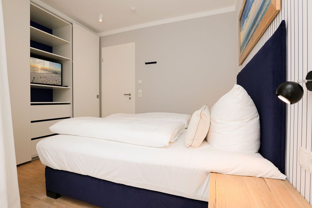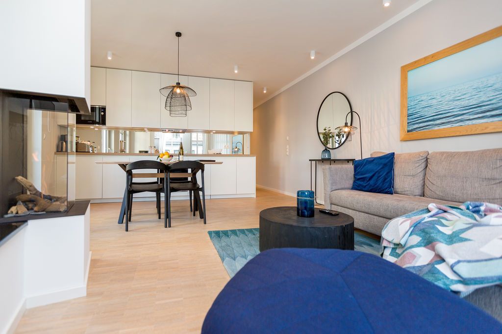Die Räume - lichtdurchflutet, das Design - nordisch nobel: Für jeden, der ein geschmack- und stilvolles Urlaubszuhause an der Ostsee sucht, ist das Appartement Nummer 4 im ersten Obergeschoss genau das Richtige. Eine 74 Quadratmeter große Wohlfühlzone verteilt auf drei Zimmer wartet nur darauf, vier Urlaubssehnsüchtigen und einem Kleinkind bis zwei Jahre (im Kinderreisebett) ein unvergleichlich schönes und stylisches Domizil zu sein. Ein großes und geräumiges Wohnzimmer mit offener Küche, zwei Schlafzimmer, zwei Bädern und auch zwei Balkonen - da bleiben keine Urlaubswohnträume unerfüllt. Eine komfortable Sofalandschaft empfängt Auszeithungrige. Entspannen Sie vor dem Flammenspiel des 3-D-Gaskamins oder beim Schauen eines spannenden Films auf dem Flat-TV. Alles ist hell und freundlich. Der Design-Esstisch mit den Design-Stühlen lädt zum Schlemmen und gemeinsamen Zusammensitzen ein. Die dazu gehörige Küche ist mit hochwertigen Geräten der Marke Bosch voll ausgestattet. Induktionsherd, Mikrowelle, Geschirrspüler - alles Highend. Auch Geschirr ist in den Küchenschränken zu finden. Das Wohnzimmer hat einen Zugang zu einem der beiden Balkone in Richtung Nord-West. Wenn das Wetter es zulässt - was auf Usedom recht häufig der Fall ist - können Sie auch hier an den Gartenmöbeln entspannt dinieren. Der zweite Balkon in Richtung Süd-Ost ist von einem der beiden gemütlichen Schlafzimmer aus zugänglich. Maritimes Flair strahlen die beiden Zimmer aus. Je ein komfortables Boxspringdoppelbett (1,60 m x 2,00 m und 1,80 m x 2,00 m) schenkt erholsame Stunden. Jedes Schlafzimmer verfügt über einen Flat-TV und einen geräumigen Kleiderschrank. Das Master-Bad besitzt neben einer Dusche, Waschtisch und WC ein kleines Highlight. Eine Finnische Sauna heizt Ihnen an kühlen Tagen ordentlich ein. Das zweite Badezimmer hat ebenfalls eine Dusche, Waschtisch und WC. Wunderschöne Vintage-Fliesen geben ihm ein exklusives Ambiente. Zur Ausstattung der Wohnung gehört zudem ein Voll-Waschtrockner dazu. Um Handtücher oder das Beziehen der Betten, brauchen Sie sich nicht zu kümmern. Alles ist für Sie bei Anreise vorbereitet. Der Stellplatz Nummer 4 in der Tiefgarage ist für Sie reserviert.