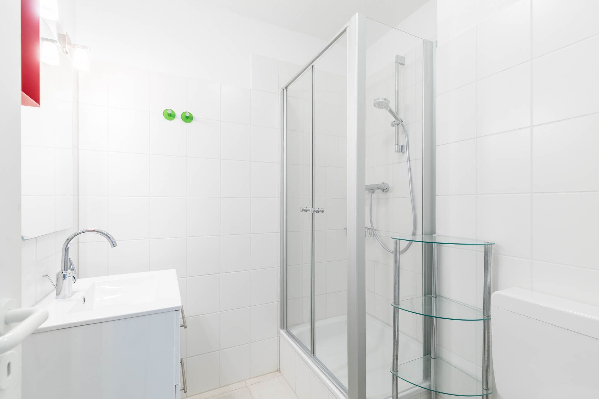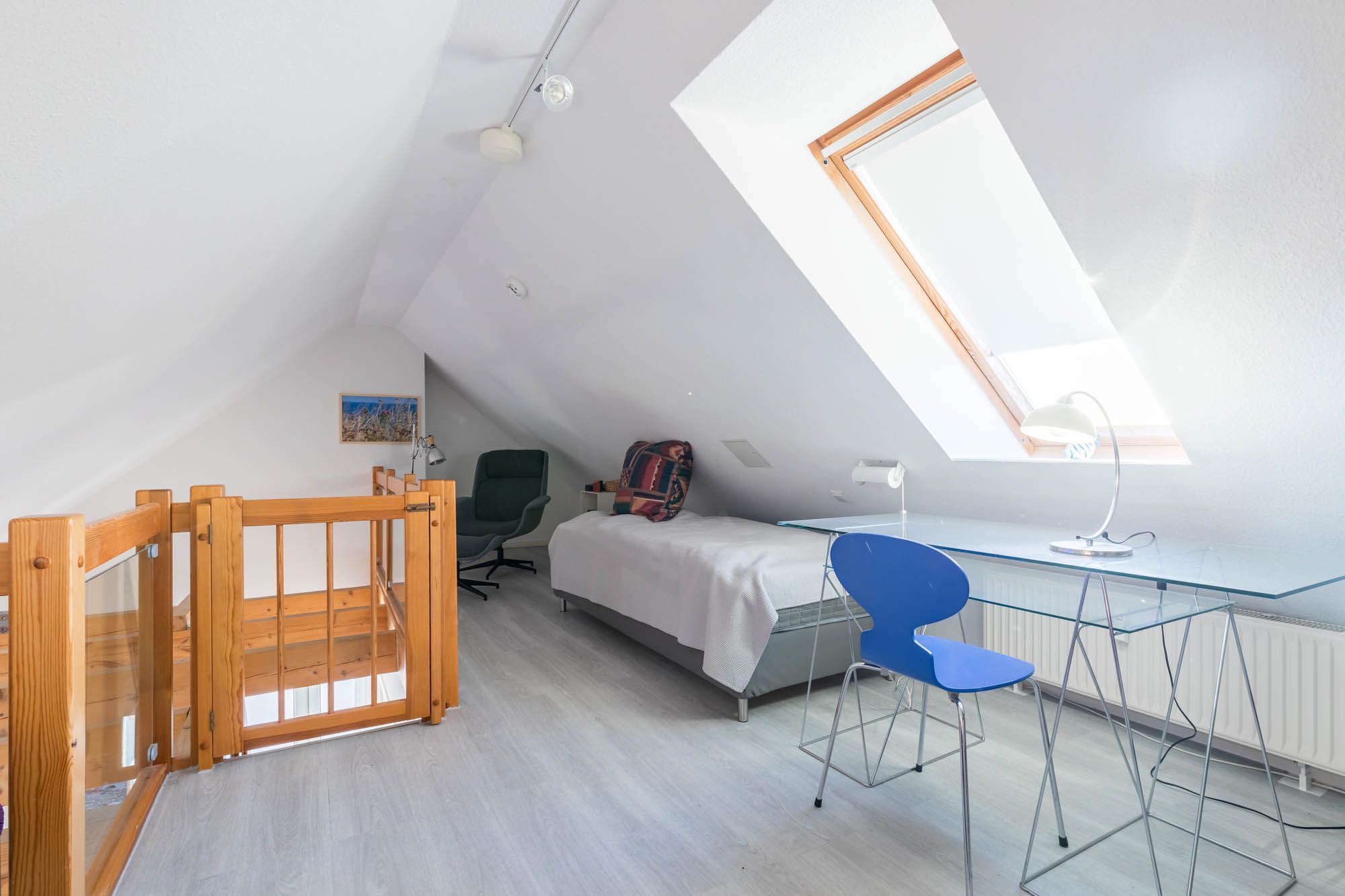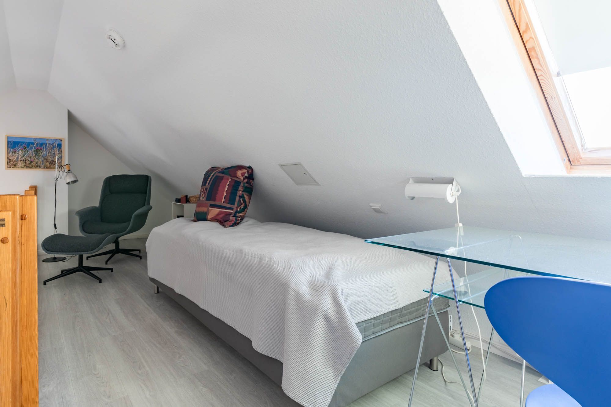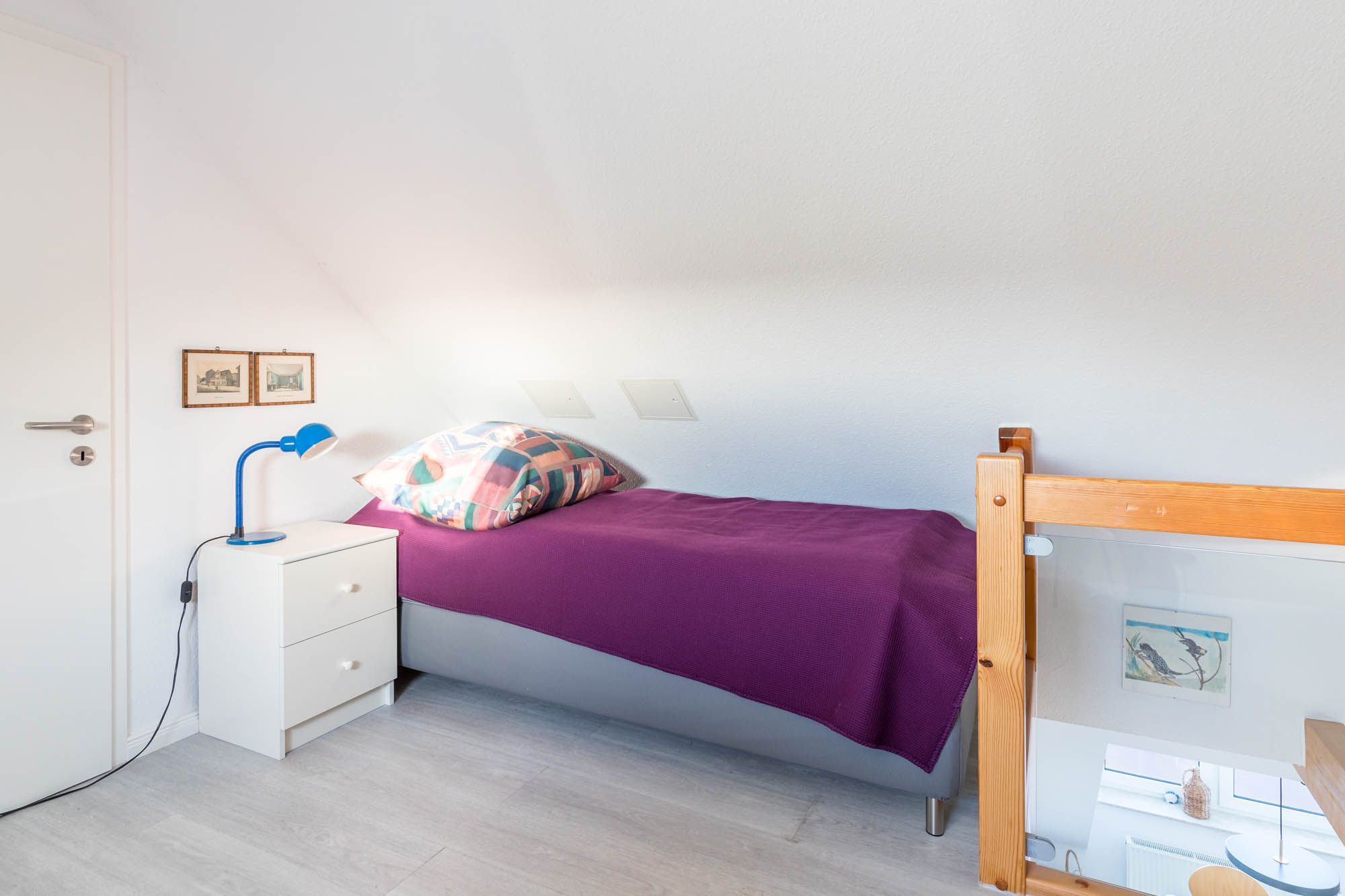 Das zweite Schlafzimmer in der offenen Schlafgalerie ist mit zwei Einzelbetten (90x200m) ausgestattet. Im hell gefliesten Bad befinden sich eine Dusche, Waschbecken und WC. Ihren PKW können Sie gern auf den reservierten Stellplatz Nr. 129 kostenfrei parken.