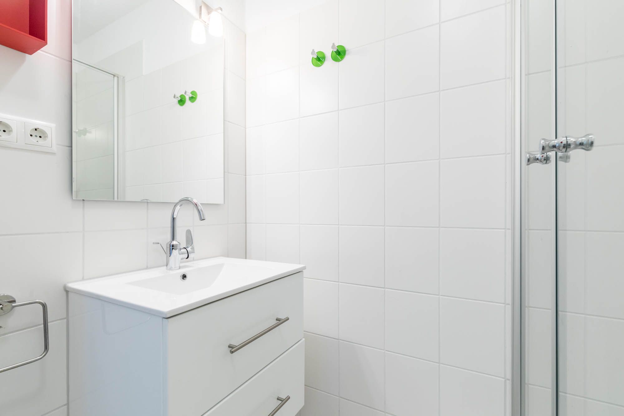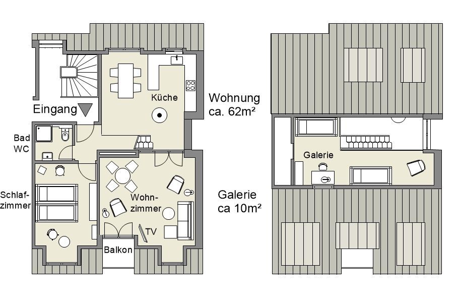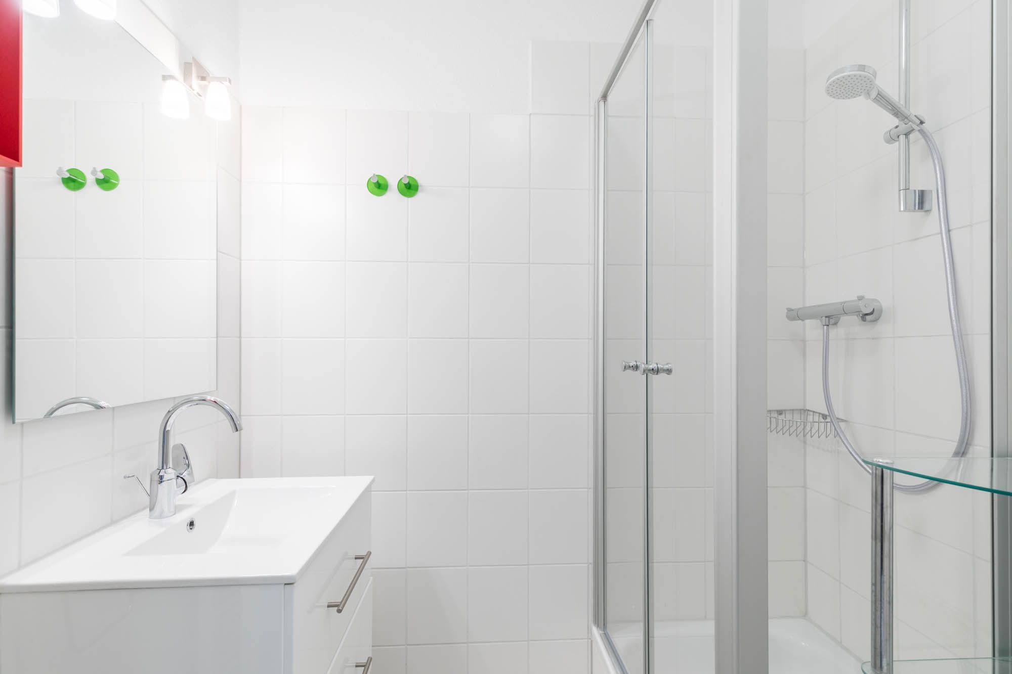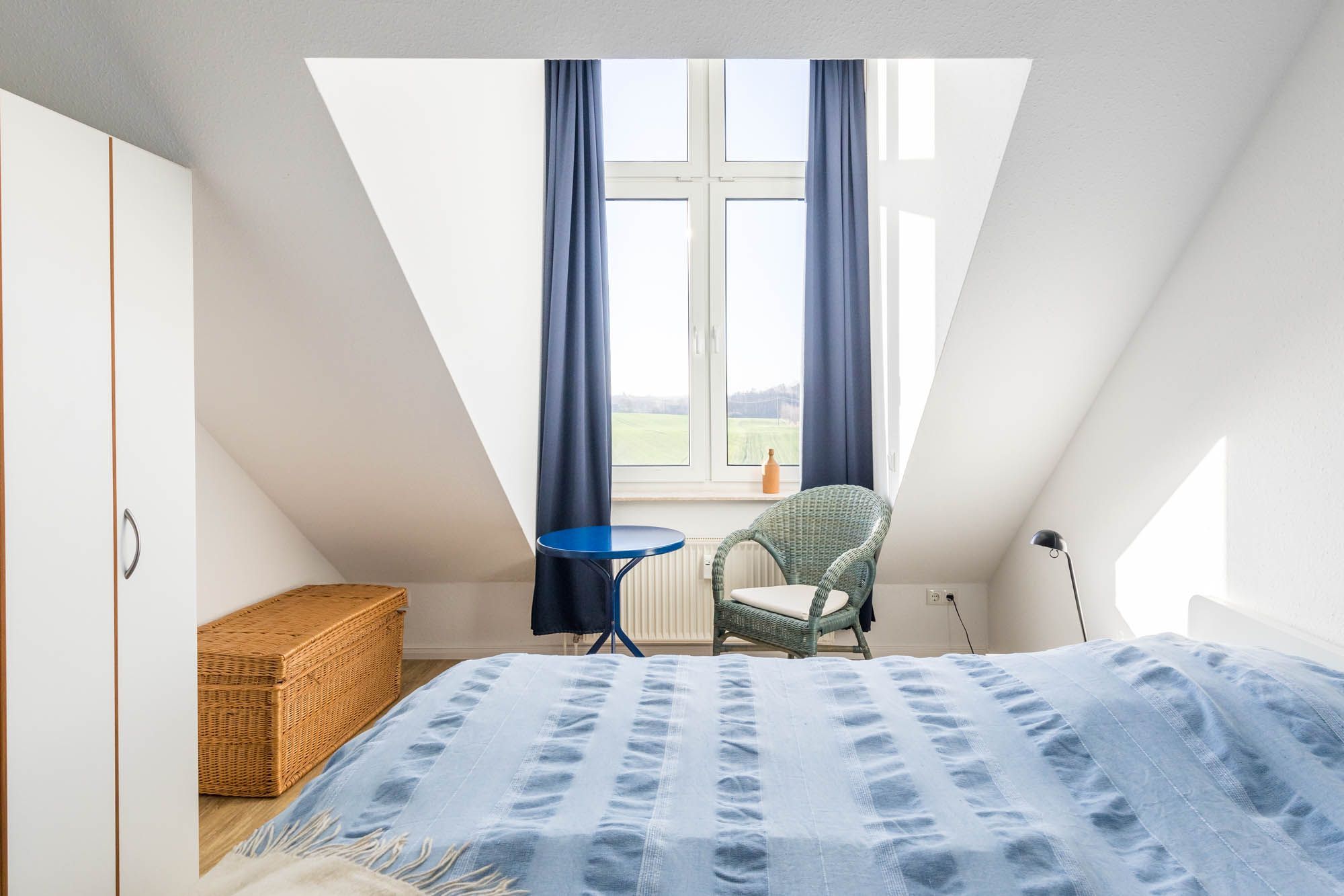 Das zweite Schlafzimmer in der offenen Schlafgalerie ist mit zwei Einzelbetten (90x200m) ausgestattet. Im hell gefliesten Bad befinden sich eine Dusche, Waschbecken und WC. Ihren PKW können Sie gern auf den reservierten Stellplatz Nr. 129 kostenfrei parken.