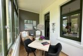 Vom Wohnzimmer aus gelangen Sie auf die Westterrasse, auf der Sie die Abendsonne in vollen Zügen genießen können.