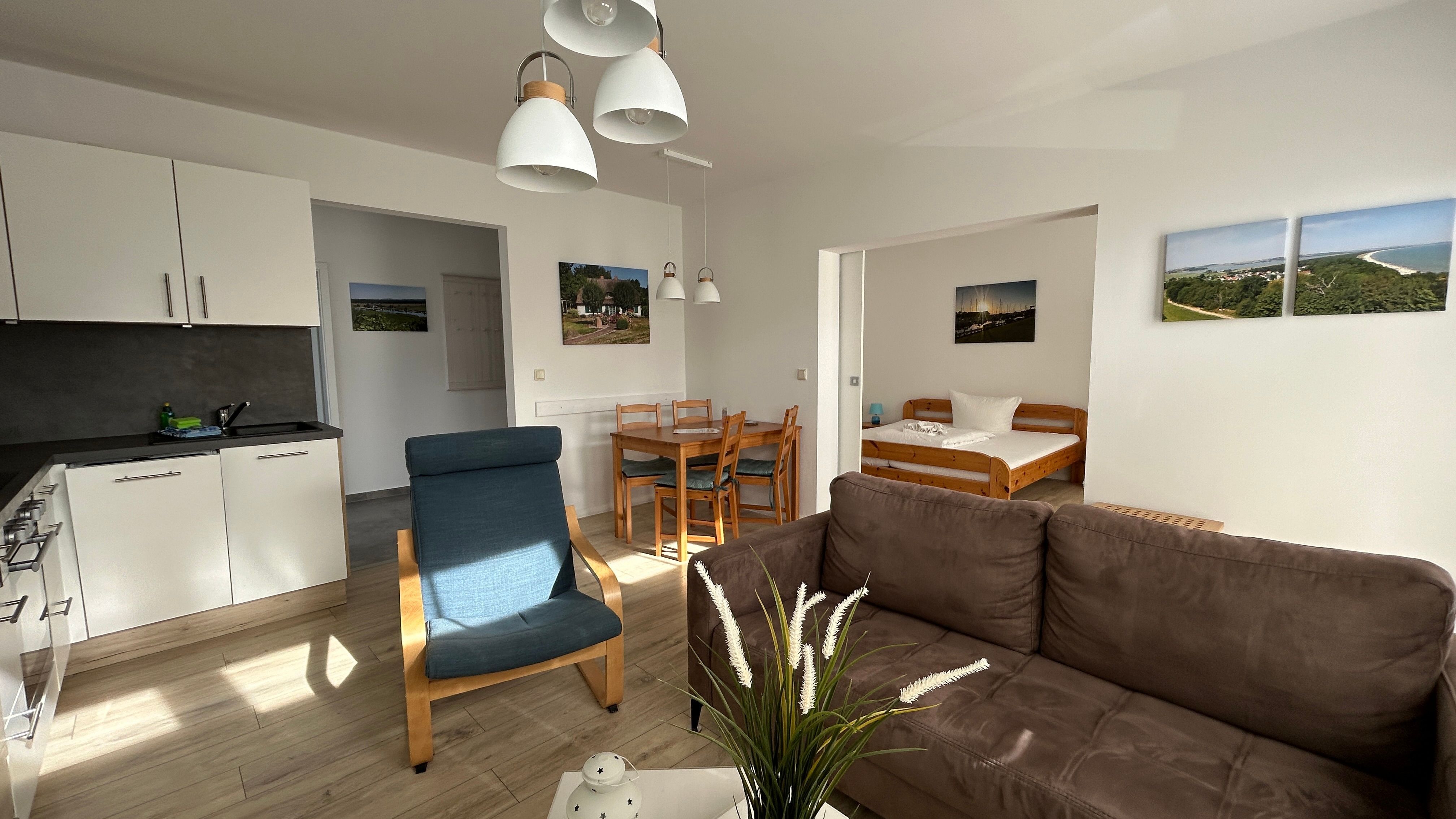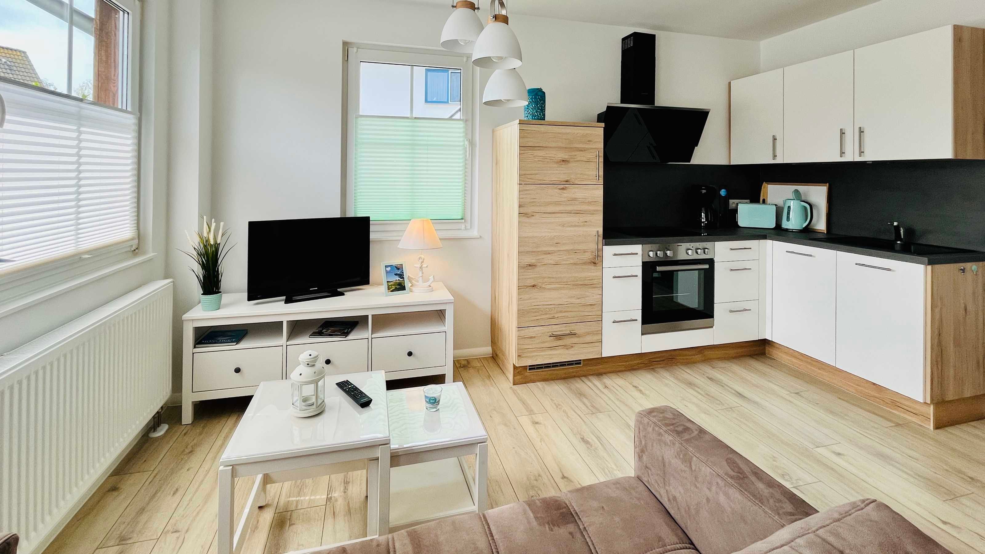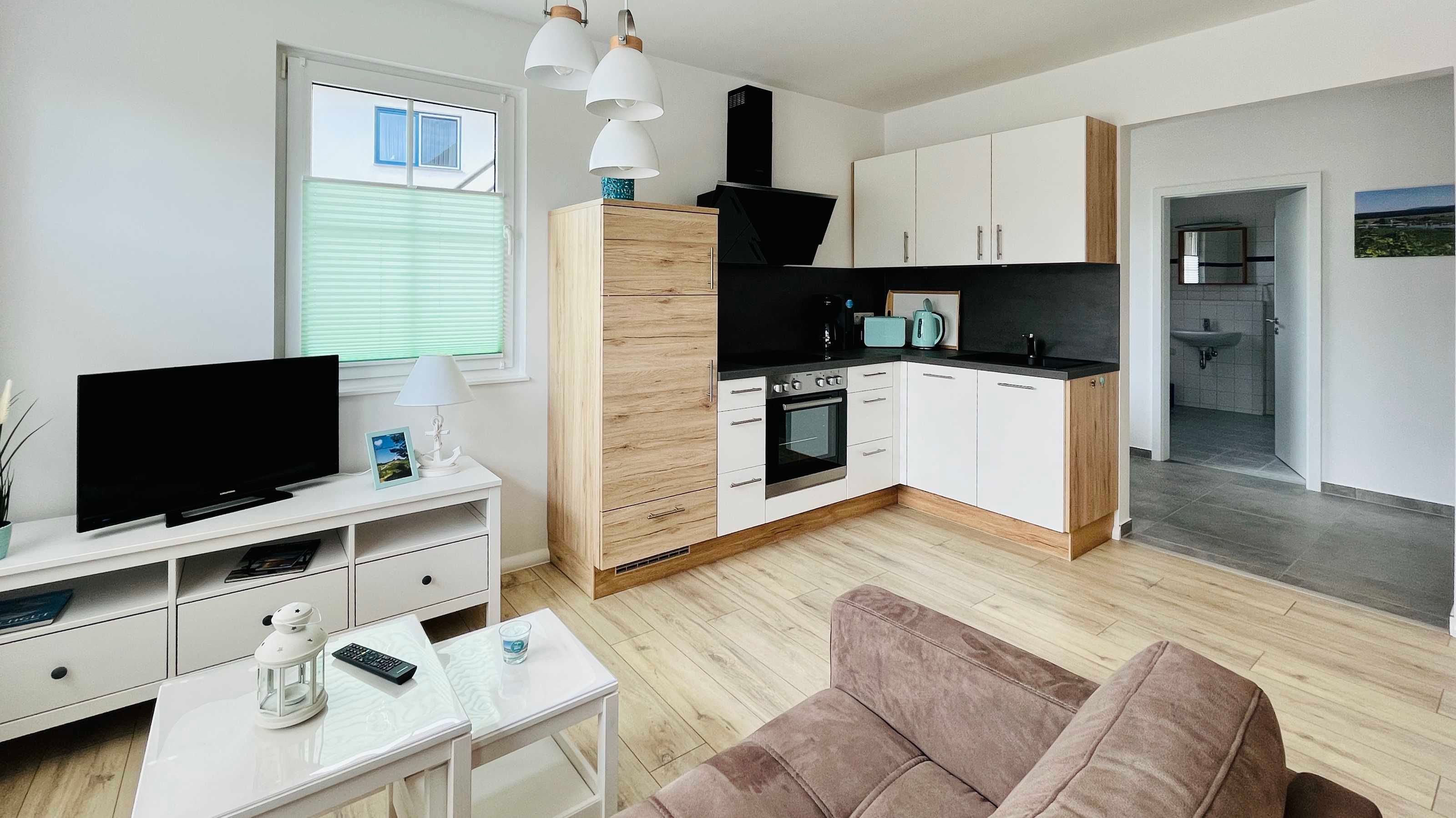 Unsere Feriengäste in der Ferienwohnung Ankerplatz im Ferienhaus Kajüte Jonas genießen die tolle Lage und nur ca. 300 m bis zum Strand. Die gemütlich eingerichtete 2-Zimmerwohnung ist für bis zu 4 Feriengäste ausgestattet. Die offene Küche bietet Ihnen alles, was Sie im Urlaub benötigen.