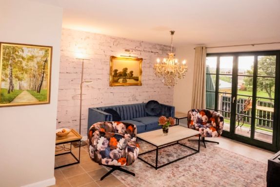 Die geschmackvolle Einrichtung im gehobenen Landhausstil schafft eine warme und zugleich stilvolle Atmosphäre, die ideal für eine erholsame Auszeit ist.