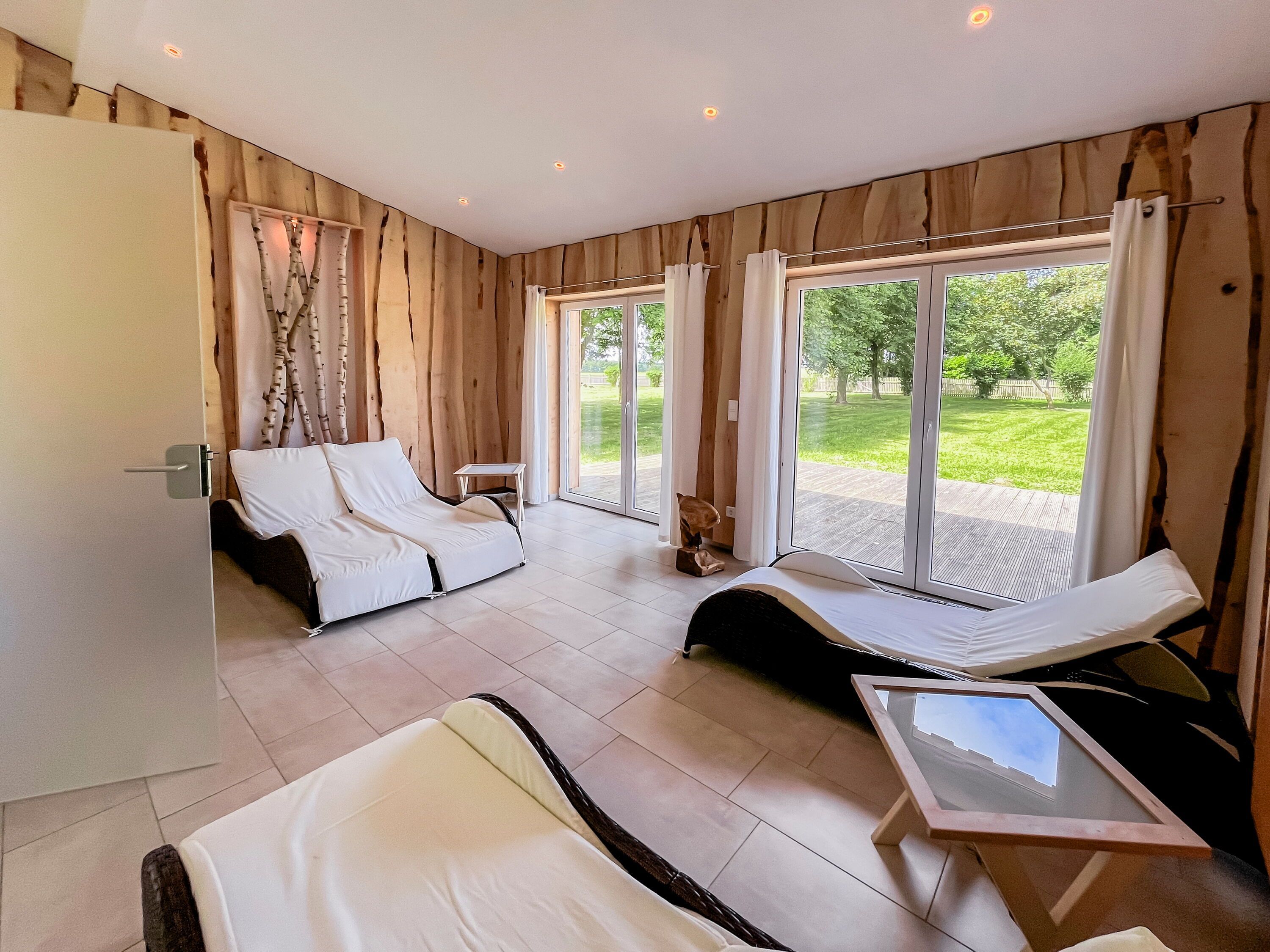 Für zusätzliche Erholung sorgt das moderne Saunahaus, das 2022 fertiggestellt wurde. Mit einem Ruhebereich und einer Außenterrasse mit Sonnenliegen wird Ihr Aufenthalt zu einem wahren Wellness-Erlebnis.