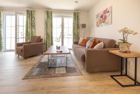 Kleiner Tipp: In der kalten Jahreszeit ist es herrlich entspannend, sich nach einem langen Spaziergang am Kaminfeuer des Gas-Kamins aufwärmen zu lassen.