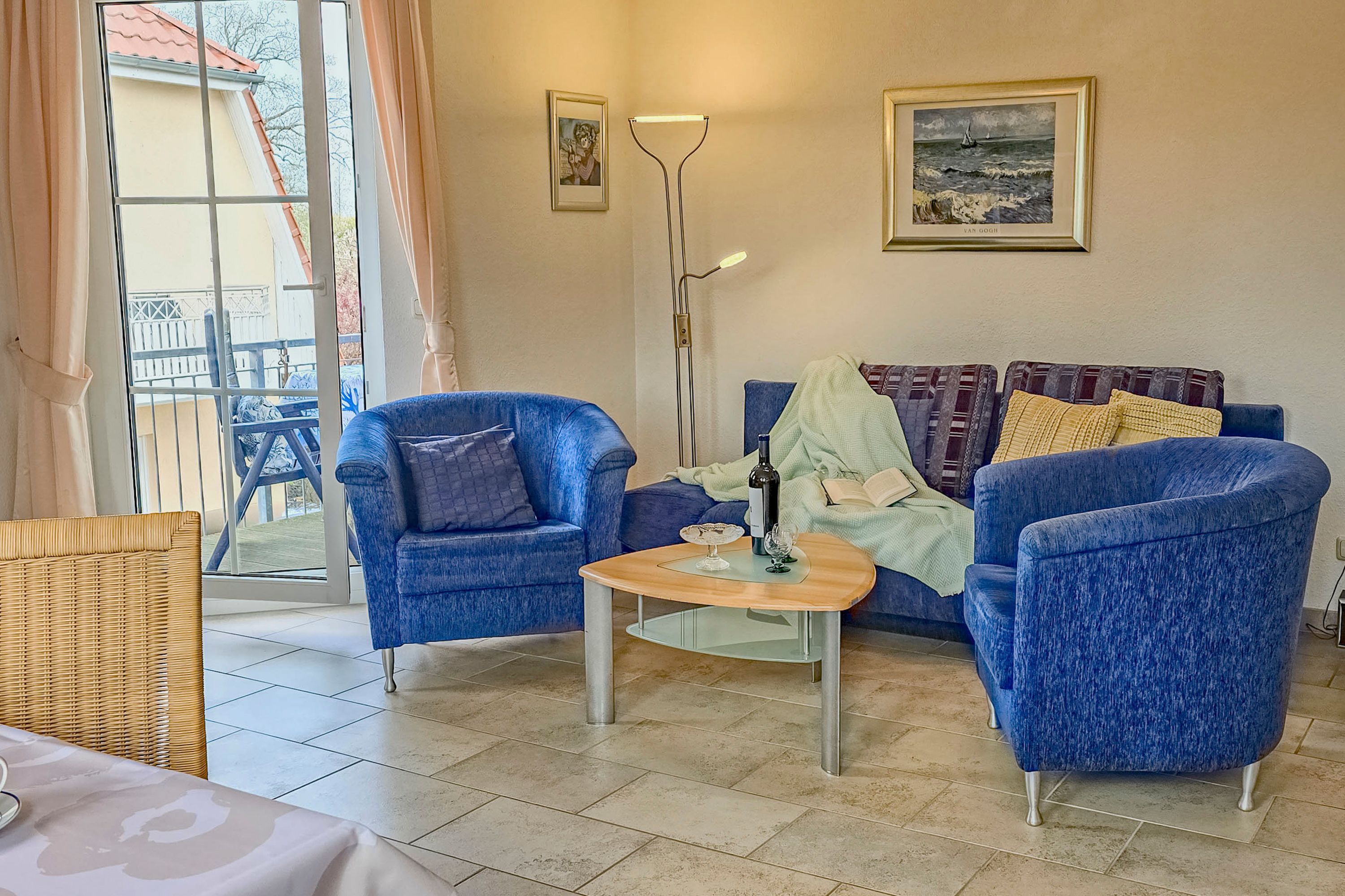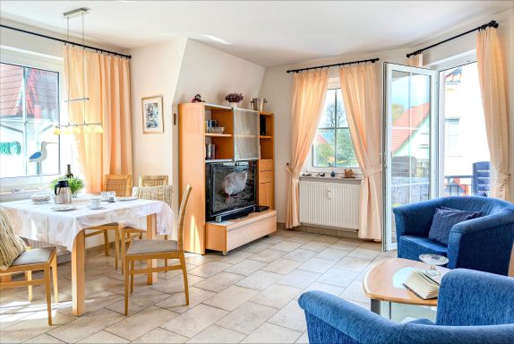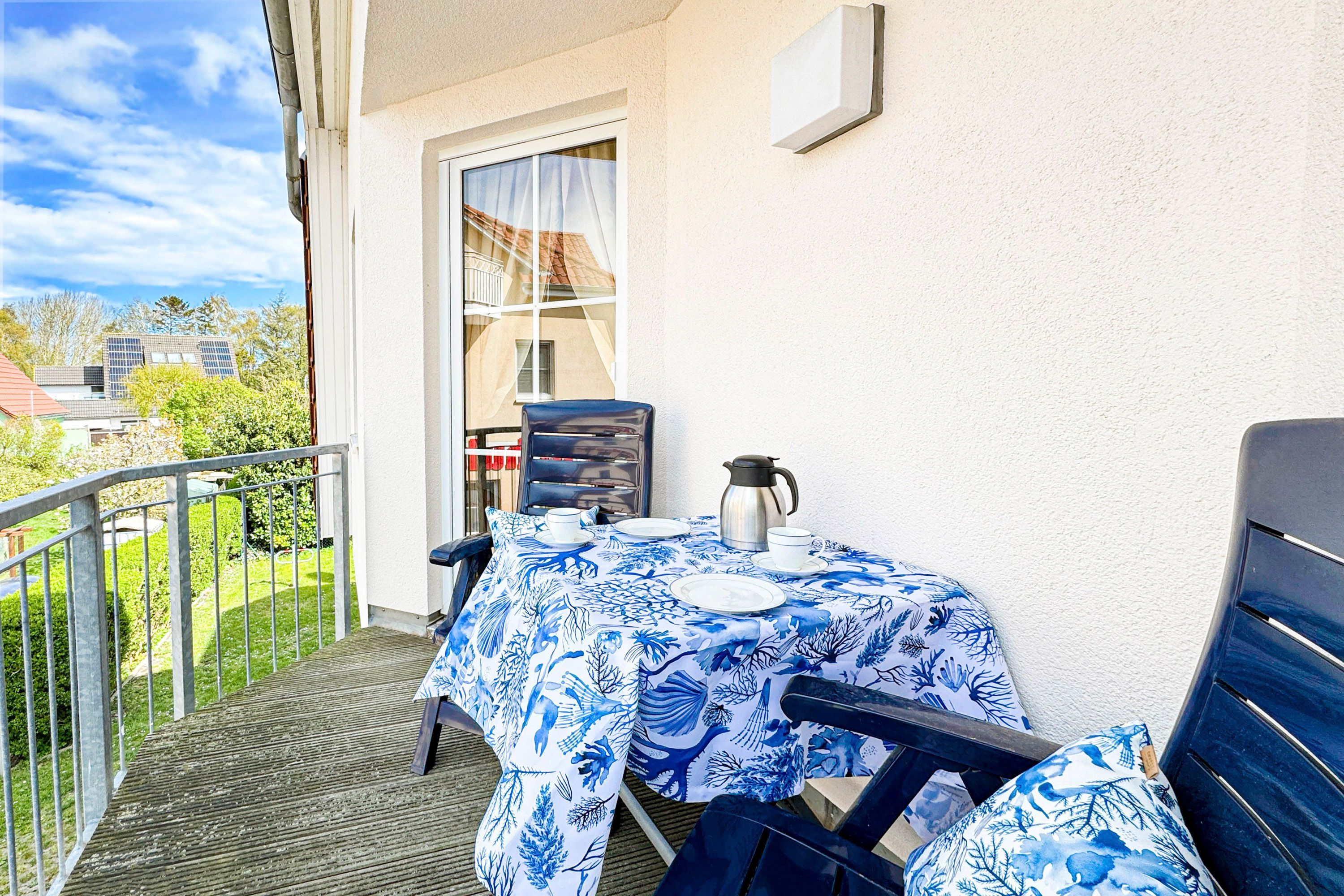 Genießen Sie die frische Ostseeluft auf dem großzügigen Balkon, ausgestattet mit Sonnenschirm und Außenbeleuchtung. Hier können Sie den Tag mit einem Frühstück im Freien beginnen oder abends bei einem Glas Wein ausklingen lassen.