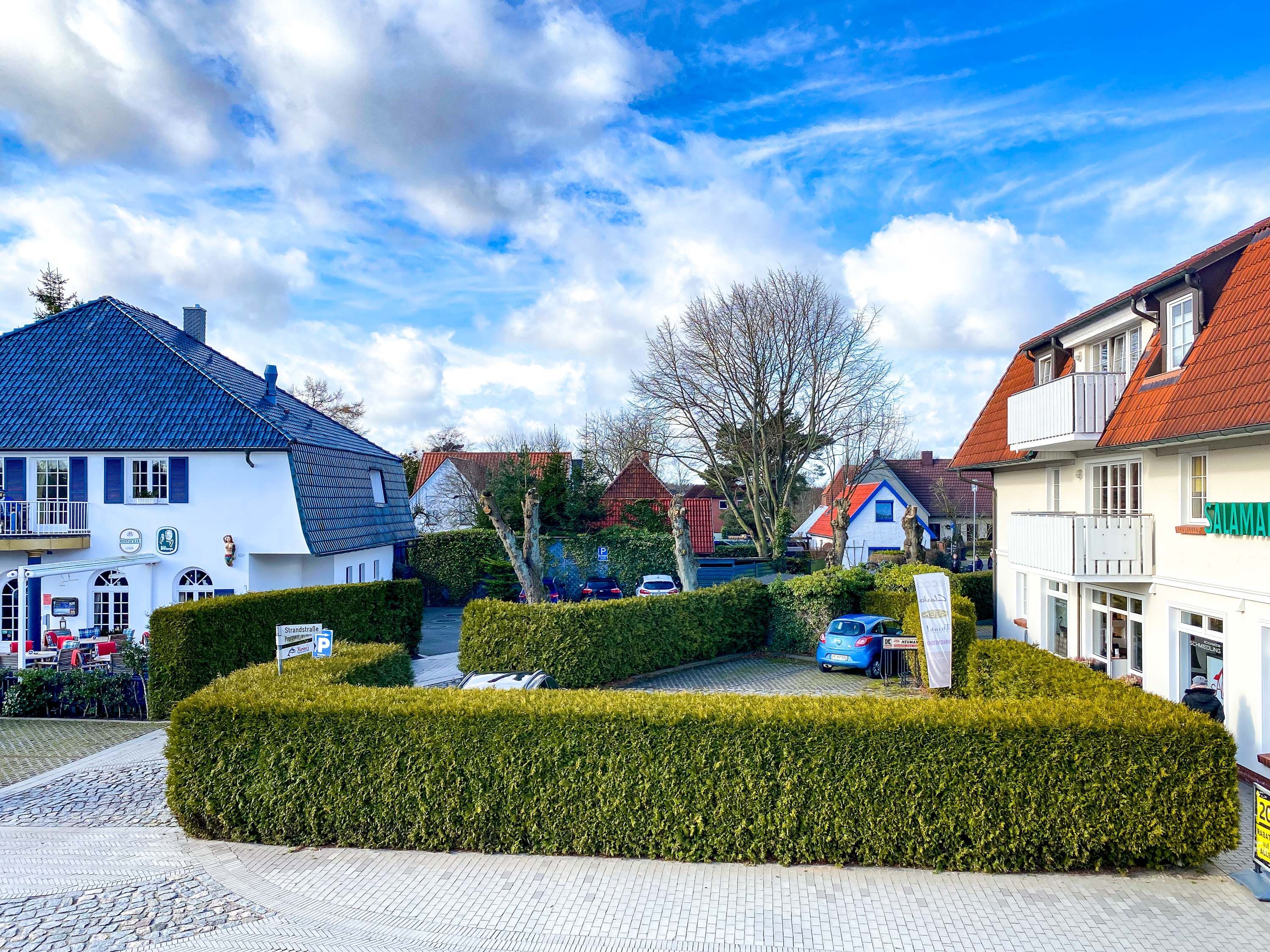 Die Ferienwohnung Strandnest liegt in einer ruhigen Seitenstraße, nur wenige Gehminuten vom lebhaften Zentrum Zingsts entfernt: