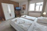 Diese gemütliche und großzügige 3-Raumwohnung 90808 David erwartet Sie mit ca. 125 qm und bietet viel Platz für bis zu 6 Personen. Es erwartet Sie nicht nur ein Wintergarten mit Kamin für behagliche Stunden, sondern auch eine hauseigene Sauna sowie ein eingezäuntes Grundstück für eine private Atmosphäre während des Aufenthaltes. Die Wohnung liegt im Erdgeschoß und teilt sich auf in einen Flur mit Garderobe, von dem Sie alle Räume gut erreichen, ein Wohnzimmer mit angrenzendem Wintergarten, Balkon sowie Terrasse, eine separate Küche, Tageslichtbad sowie zwei Schlafzimmer. Im behaglichen Wohnraum erwartet Sie eine Sitzecke, ein Kojenbett als Schlafmöglichkeit für eine 5. und 6. Person sowie großem Flachbild-TV und WLAN. Die separate Küche verfügt über ein Cerankochfeld mit Backofen, Geschirrspüler, einen Kühlschrank, ein Gefrierfach, Kaffeemaschine, Mikrowelle und Wasserkocher. Im Badezimmer finden Sie eine Dusche, Doppelwaschtisch, eine Waschmaschine sowie WC. Beide Schlafzimmer sind mit einem Doppelbett, Kleiderschrank und zusätzlichem TV ausgestattet und verfügen zudem über Jalousien für eine angenehme Nachtruhe. Im, an zweite Schlafzimmer angrenzenden, Wintergarten können Sie nicht nur gemeinsam speisen, auch gemütliche Stunden durch den Kamin erleben. Ein PKW-Stellplatz steht Ihnen direkt am Haus zur Verfügung.