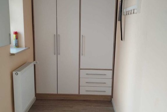 Eine sehr geräumige 2-Raumwohnung im Erdgeschoss des Hauses mit einen Wohn-/Schlafzimmer mit einem französischen Bett. Im Wohn-/Schlaf-/Essbereich befindet sich zusätzlich eine Schlafcouch. Mit einer voll ausgestattet separaten Küche mit Kaffemachine, Toaster, Geschirrspüler, Kühlschrank mit Gefriefach etc...sowie einem Bad mit Dusche und WC. Im Außenbereich steht Ihnen eine kleine Terasse mit Grillmöglichkeit zur Verfügung zum entspannen am Abend mt einem Gläschen Wein oder ganz relax in den Morgen starten mit einem schönen Frühstück im Freien. Gleichzeitig dient die Terrasse auch als Raucherecke.