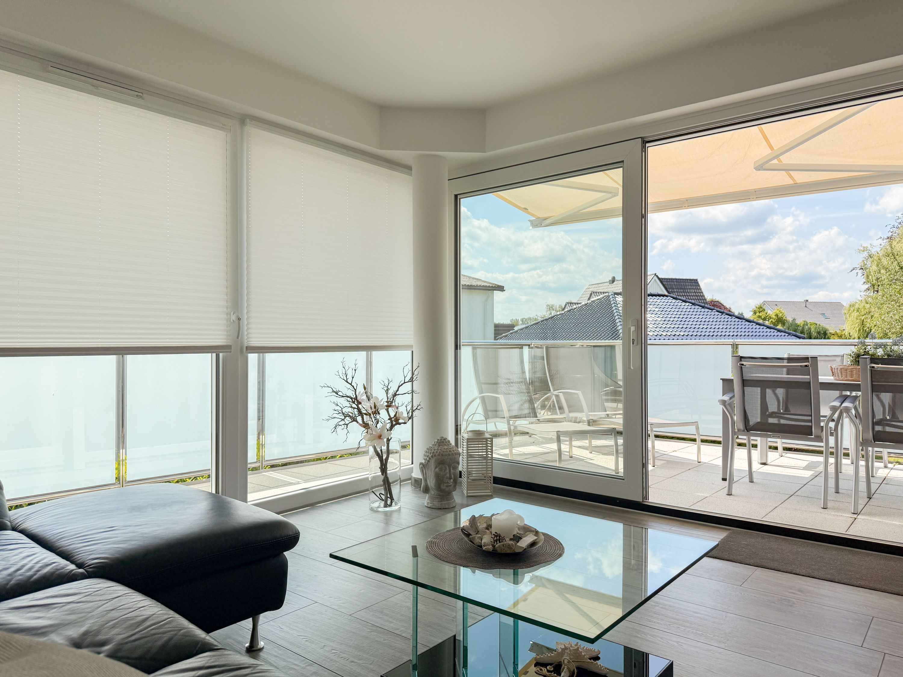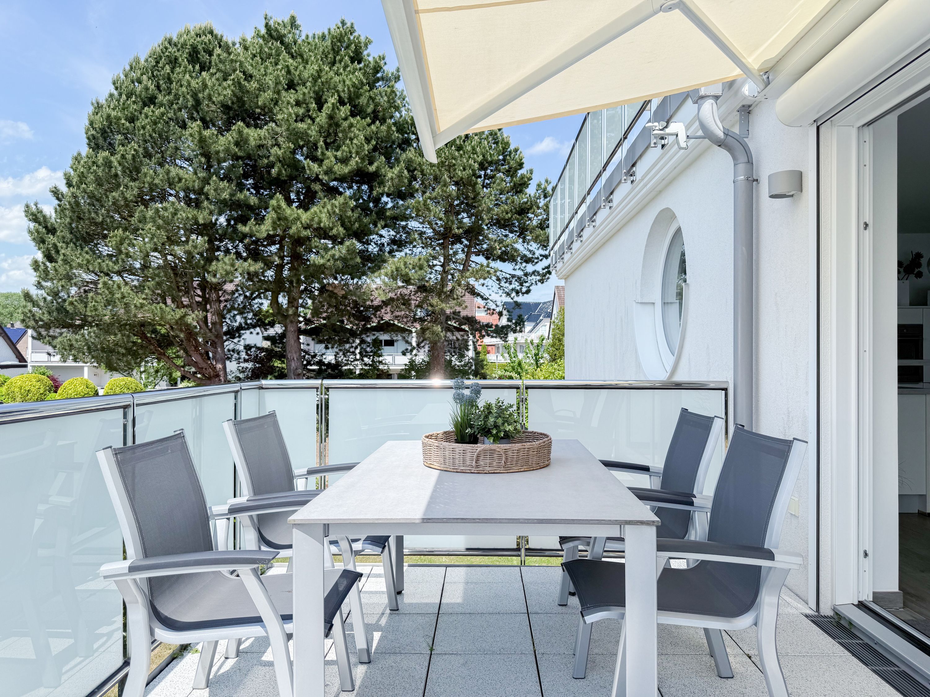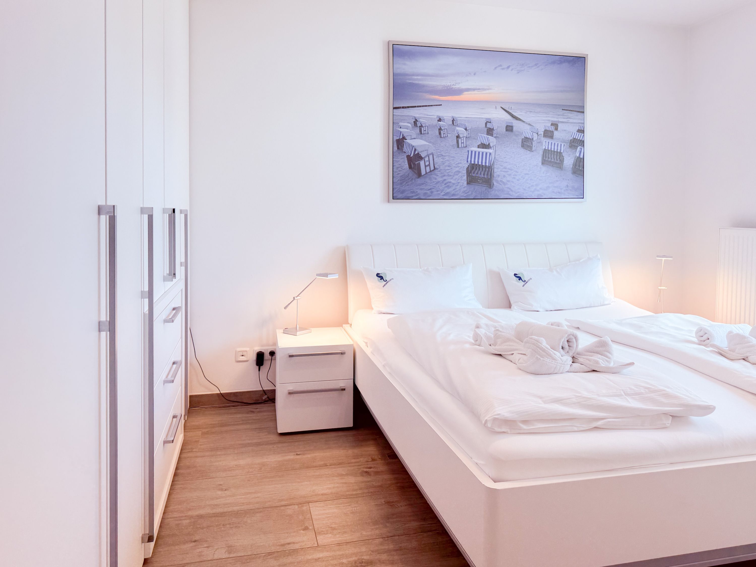 Die luxuriöse Ferienwohnung bietet mit 2 separaten Schlafzimmern ausreichend Platz für 4 Personen, um einen schönen Urlaub zu verleben. Es stehen ein Doppelbett (180x200) und zwei Einzelbetten (80x200) zur Verfügung. Beide Schlafzimmer sind mit einem TV ausgestattet. Bei der Einrichtung und Ausstattung der Immobilie wurde nicht gespart und sehr viel Wert auf hochwertige Materialien gelegt. 3 TV, Hifi-Anlage, Bose Bluetooth Anlage, kostenloser Internetzugang über WLAN, Fußbodenheizung, elektrische Außenjalousien, modernes Duschbad mit viel Tageslicht und integrierter Waschmaschine. Die hochwertige, moderne Einbauküche mit angrenzendem Essbereich ist bestens mit allen technischen Geräten ausgestattet und genügt höchsten Ansprüchen. Sehr charmant ist der Blick ins Grüne durch das große Bullauge. Übergroße Fensterelemente sorgen für einen lichtdurchfluteten Wohnbereich mit Blick zur ruhigen Gartenseite und auf den großzügig angelegten Südwestbalkon mit Dachterrassen Charakter, selbstverständlich komfortabel möbliert mit Sitzgruppe, Sonnenliegen und elektrischer Außenmarkise.