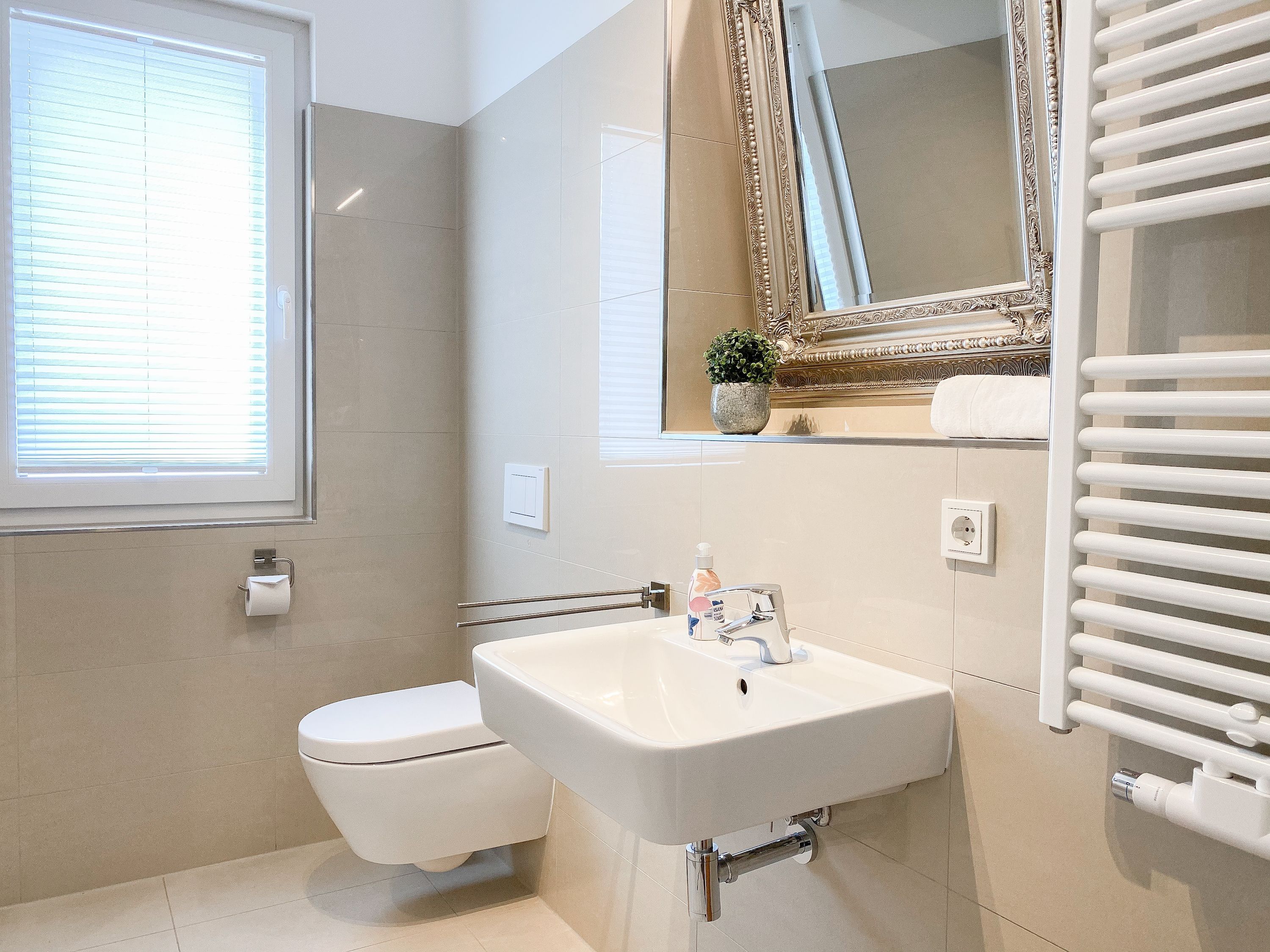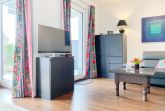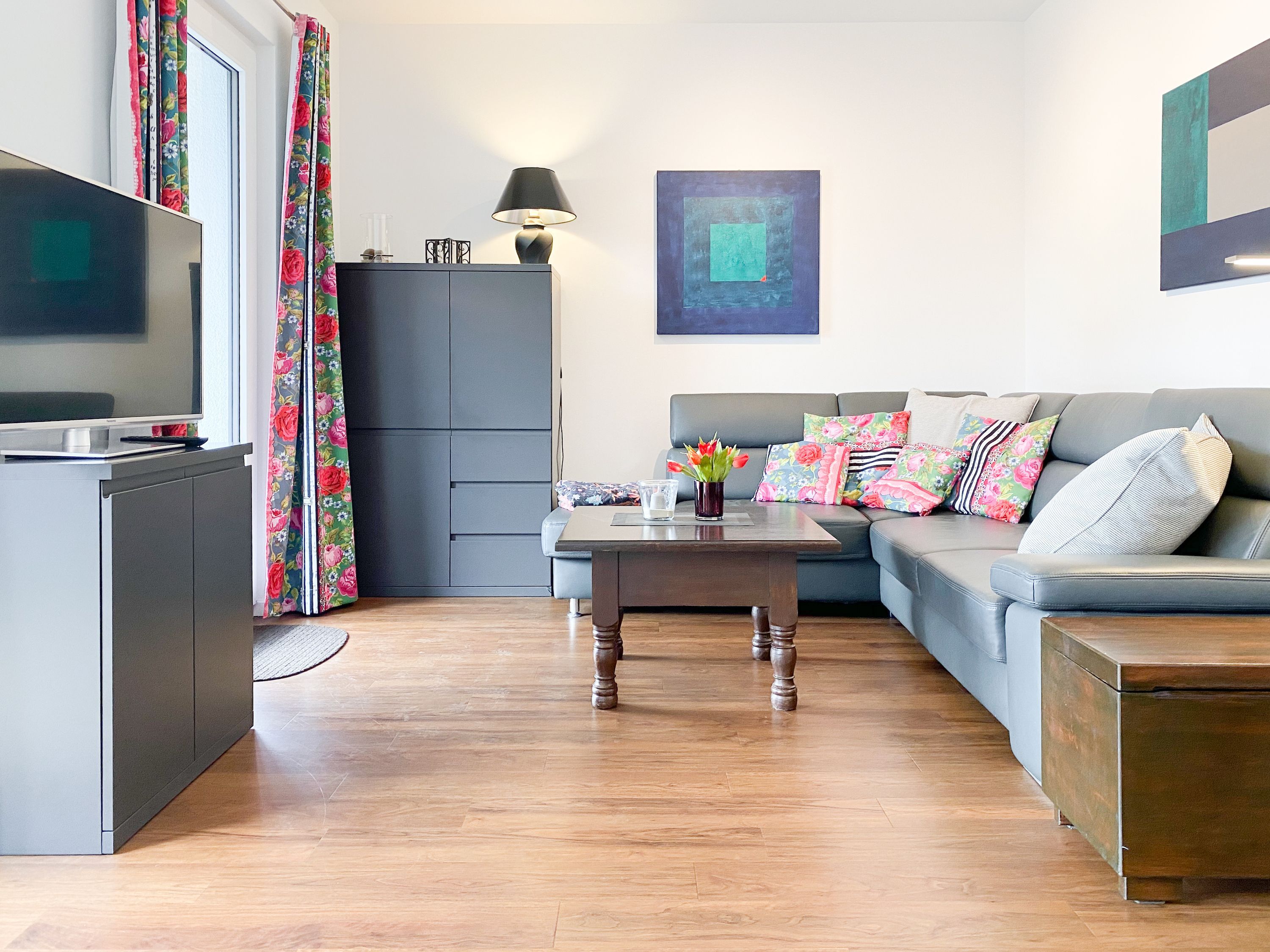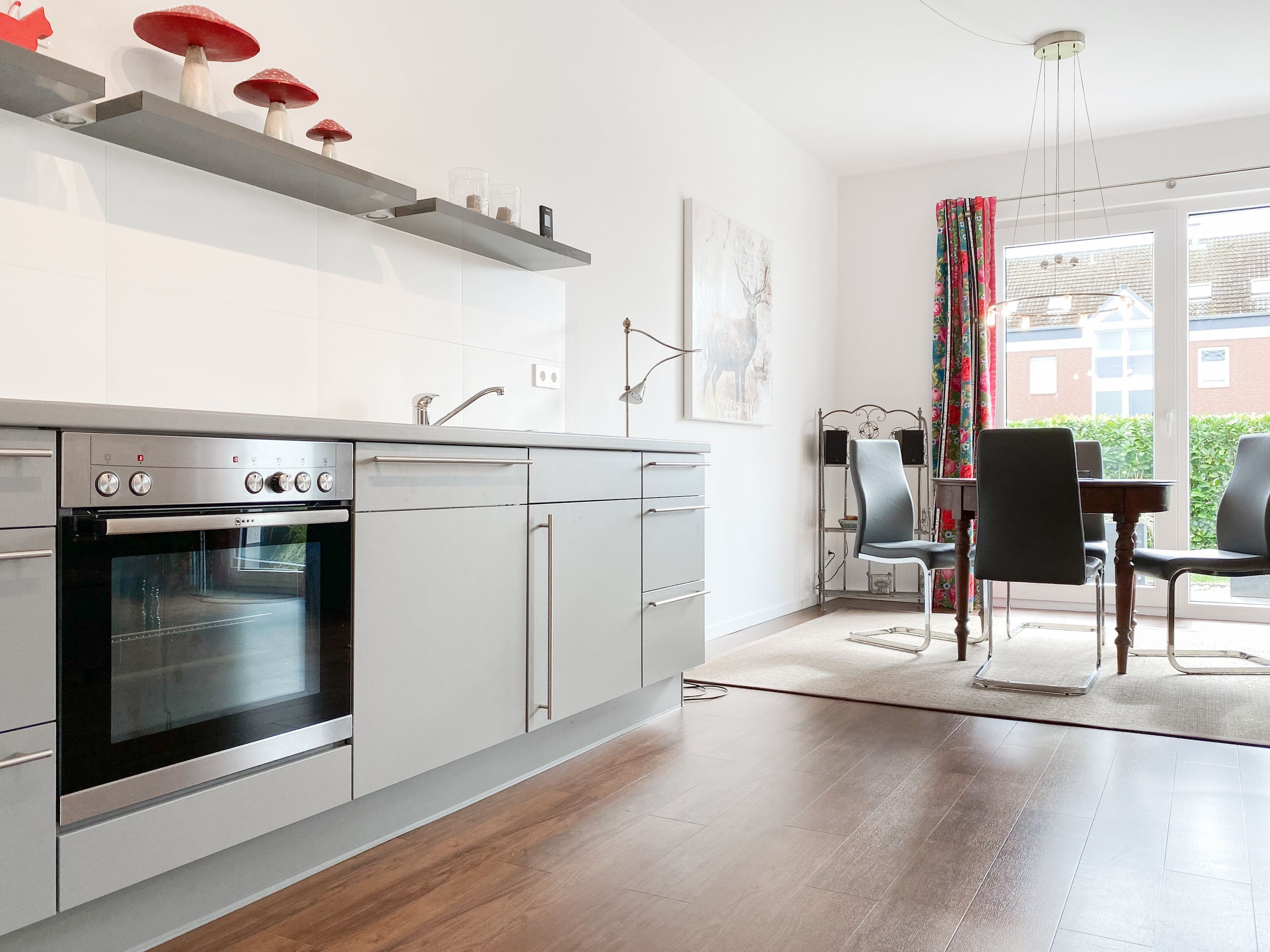Die Ferienwohnung im Erdgeschoss des neu erbauten Hauses Nienhüs mit nur 7 Wohneinheiten verfügt über eine sehr schöne ca. 20 qm große Terrasse in Südausrichtung mit kleinem Gartenanteil. Sie ist mit Gartenmöbeln, einem Strandkorb und einer elektrischen Markise ausgestattet. Ein herrlicher Rückzugsort zu jeder Tageszeit. Der großzügige Wohnbereich verfügt über eine gemütliche Couchgarnitur mit Schlaffunktion (120x200), TV und kostenlosem Internetzugang über WLAN. Die bodentiefen Fensterelemente sorgen für helle, sonnige Räume zum Wohlfühlen und die Fußbodenheizung für ein angenehmes Raumklima. Die offene Einbauküche mit anschließendem Essbereich verfügt über Cerankochfeld, Backofen, Mikrowelle und Spülmaschine. Im separaten Schlafzimmer befindet sich ein Doppelbett (180x200) und ein Einbauschrank. Das hochwertige, moderne Bad mit Fenster ist mit einer großen, bodentiefen Walk-In Dusche ausgestattet. Ein separater Abstellraum befindet sich in der Wohnung.
