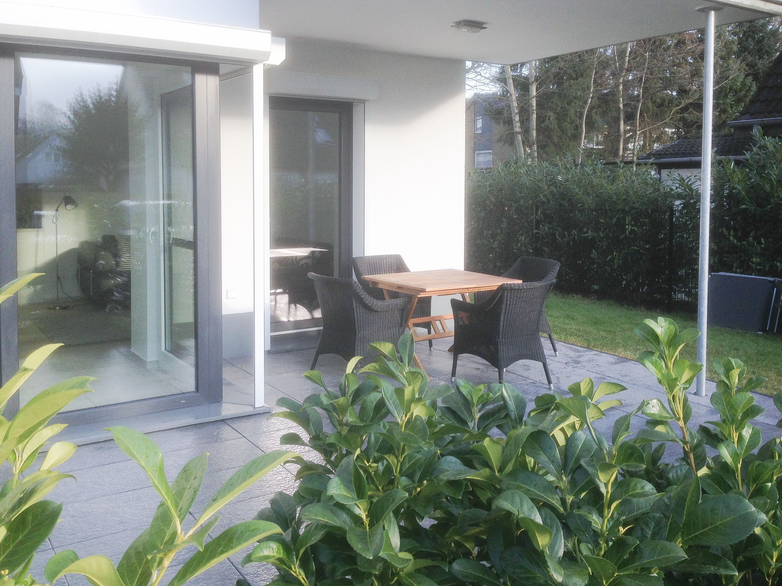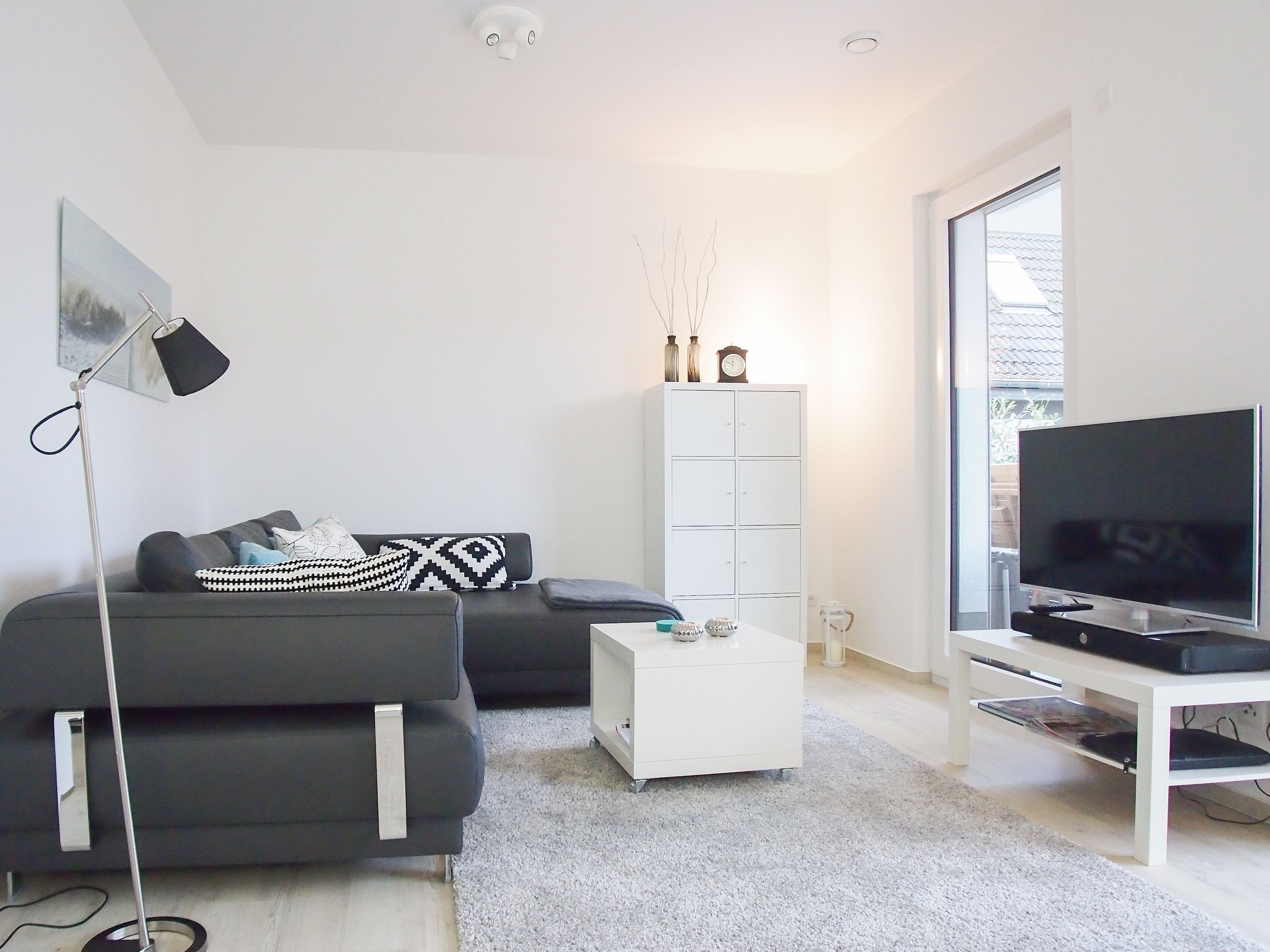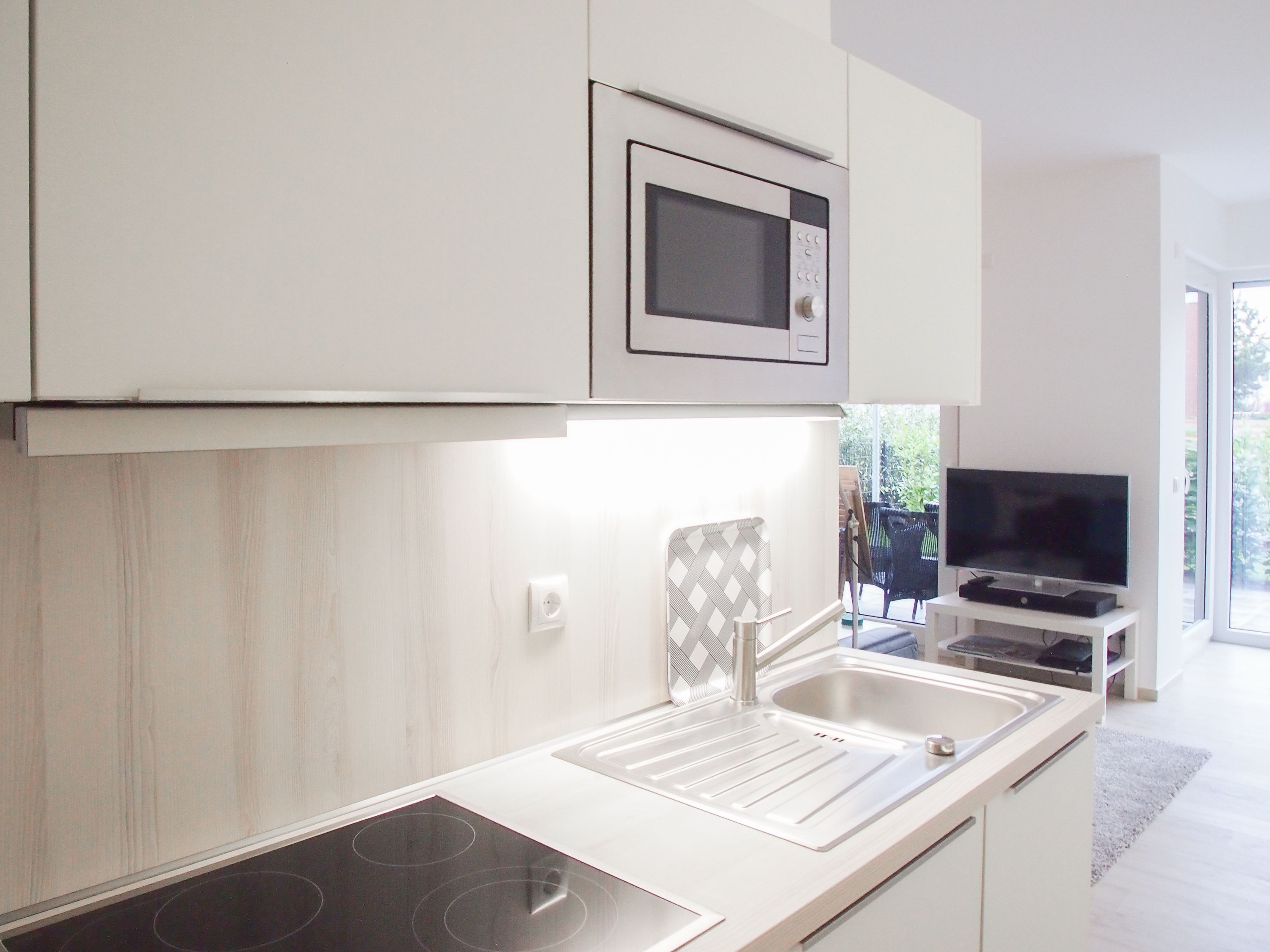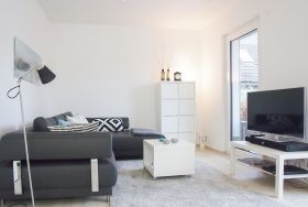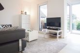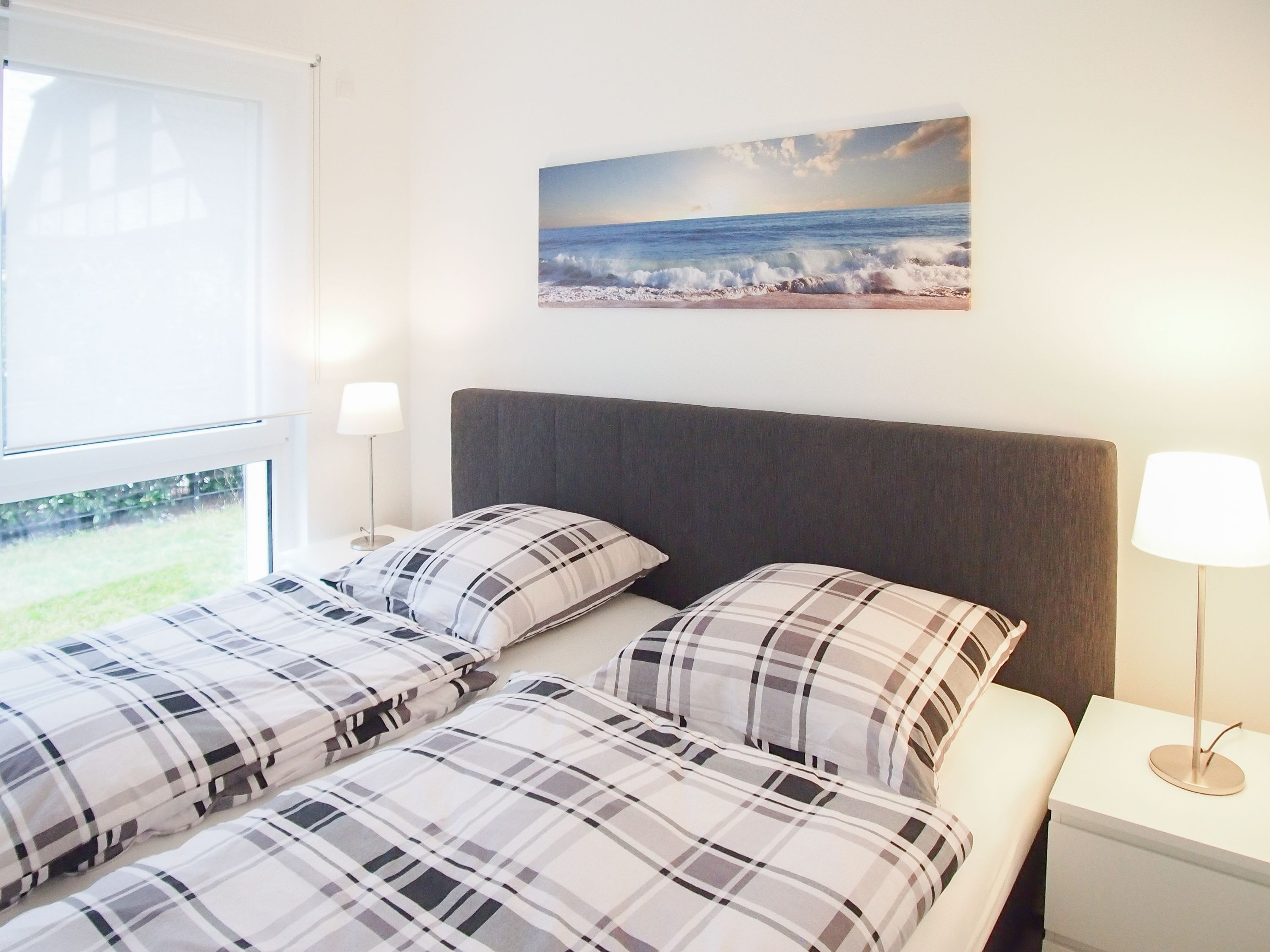 Diese Ferienwohnung befindet sich im Erdgeschoss  nur ca. 100 Meter vom Ostseestrand entfernt. Die Einrichtung ist sehr hochwertig sowie komfortabel und auf 2-3 Personen (plus Kleinkind) ausgerichtet. Bodentiefe Fensterelemente sorgen für helle, sonnige Räumlichkeiten und die Fußbodenheizung für ein angenehmes Raumklima. Alle Fenster sind  mit elektrischen Außenjalousien versehen. Es erwartet Sie eine bestens ausgestattete Einbauküche mit angrenzendem Essbereich sowie ein geschmackvoll eingerichtetes Wohnzimmer mit hochwertiger Ledergarnitur mit Schlaffunktion und TV (Heimkino für optimale Klangqualität). Kostenloser Internetzugang steht über WLAN zur Verfügung. Die vorgelagerte über 20 qm große Südterrasse mit kleinem Gartenanteil ist teilweise überdacht und lädt zu jeder Tageszeit zum Entspannen ein. Gartenmöbel und Sonnenliegen sind vorhanden. Das separate Schlafzimmer ist mit einem hochwertigem Boxspringbett (180x200), einem zusätzlichem TV sowie einem großen Einbauschrank mit viel Staufläche ausgestattet. Ein modernes Duschbad mit viel Tageslicht rundet das Angebot ab.