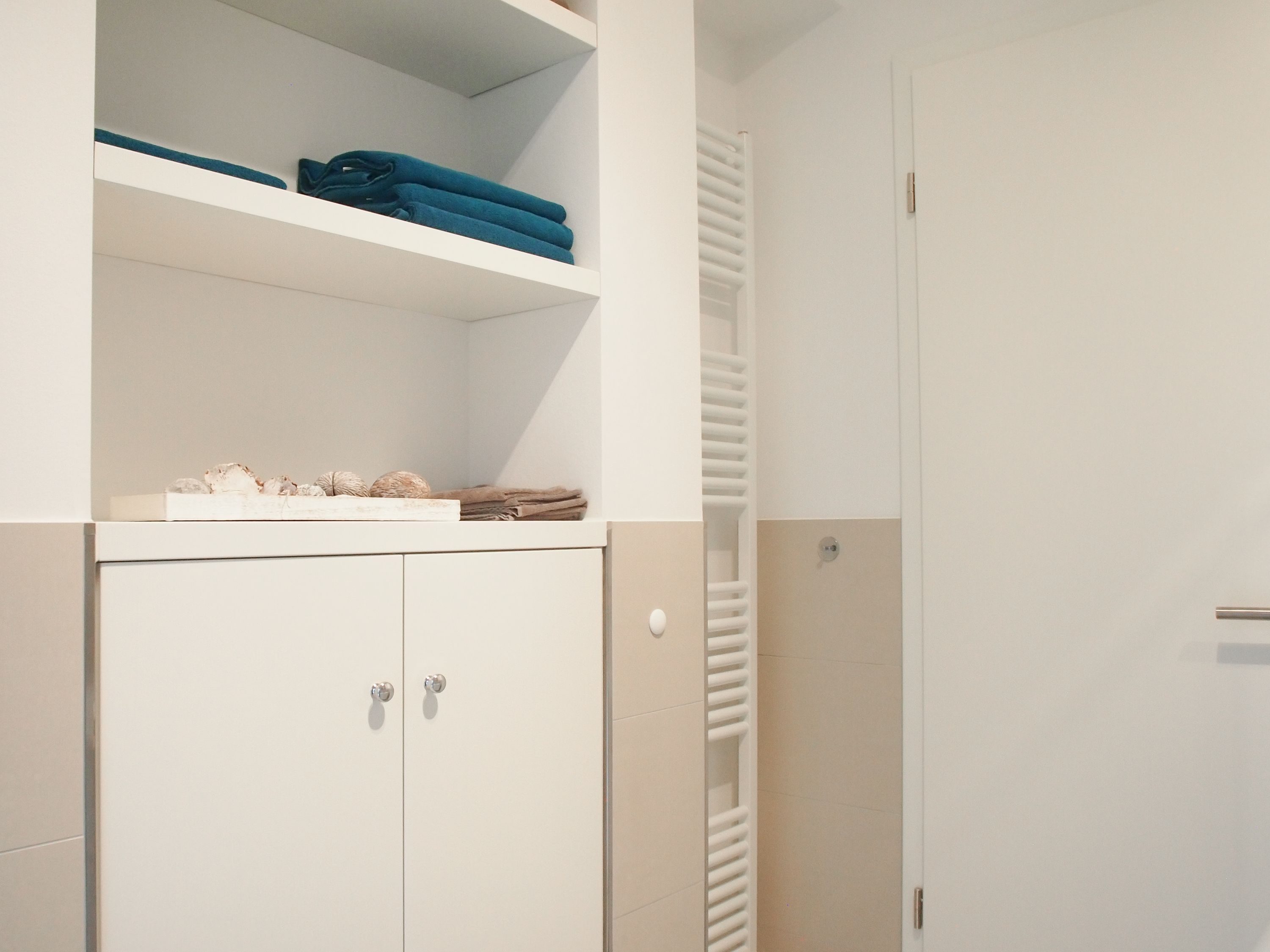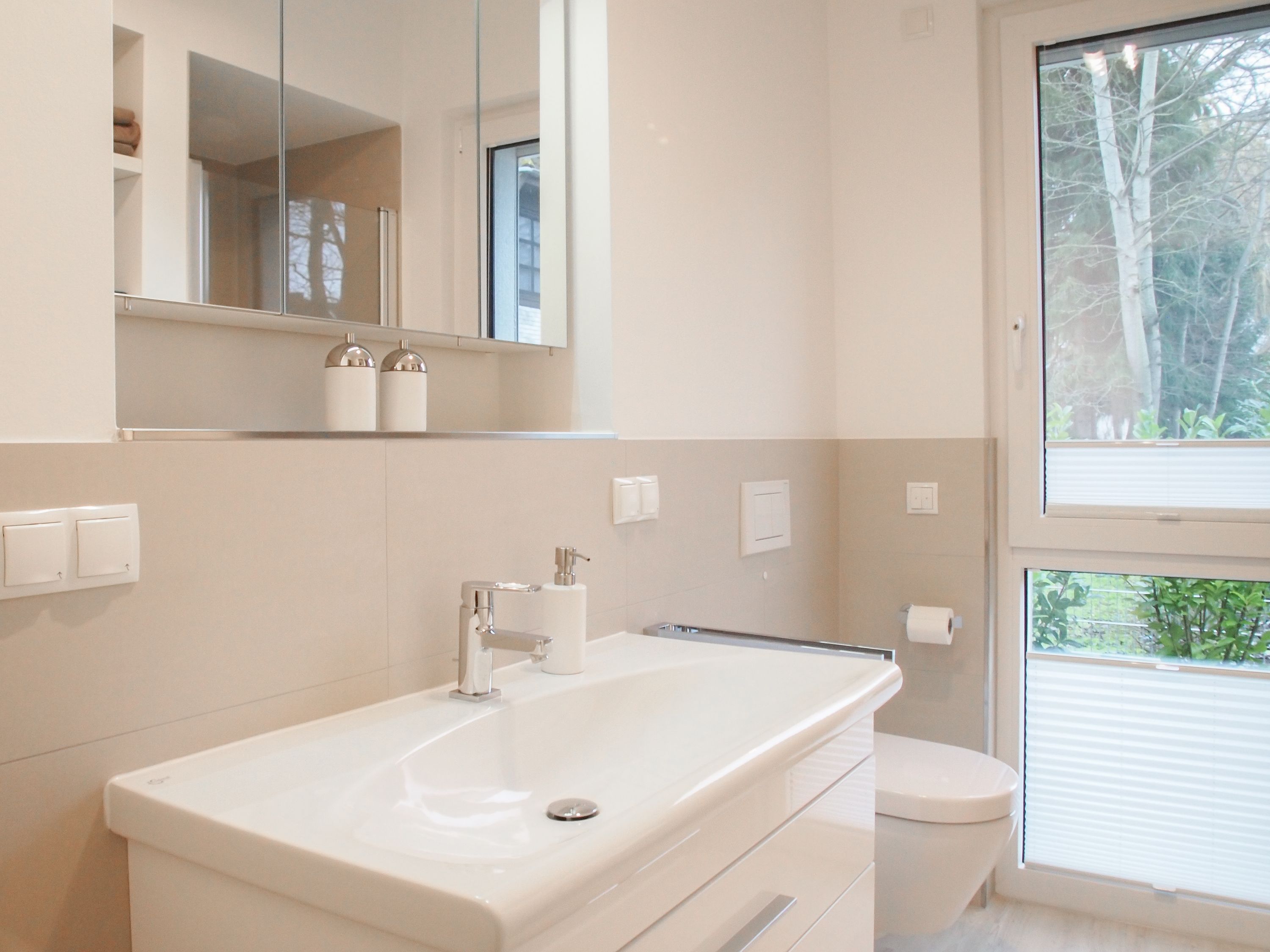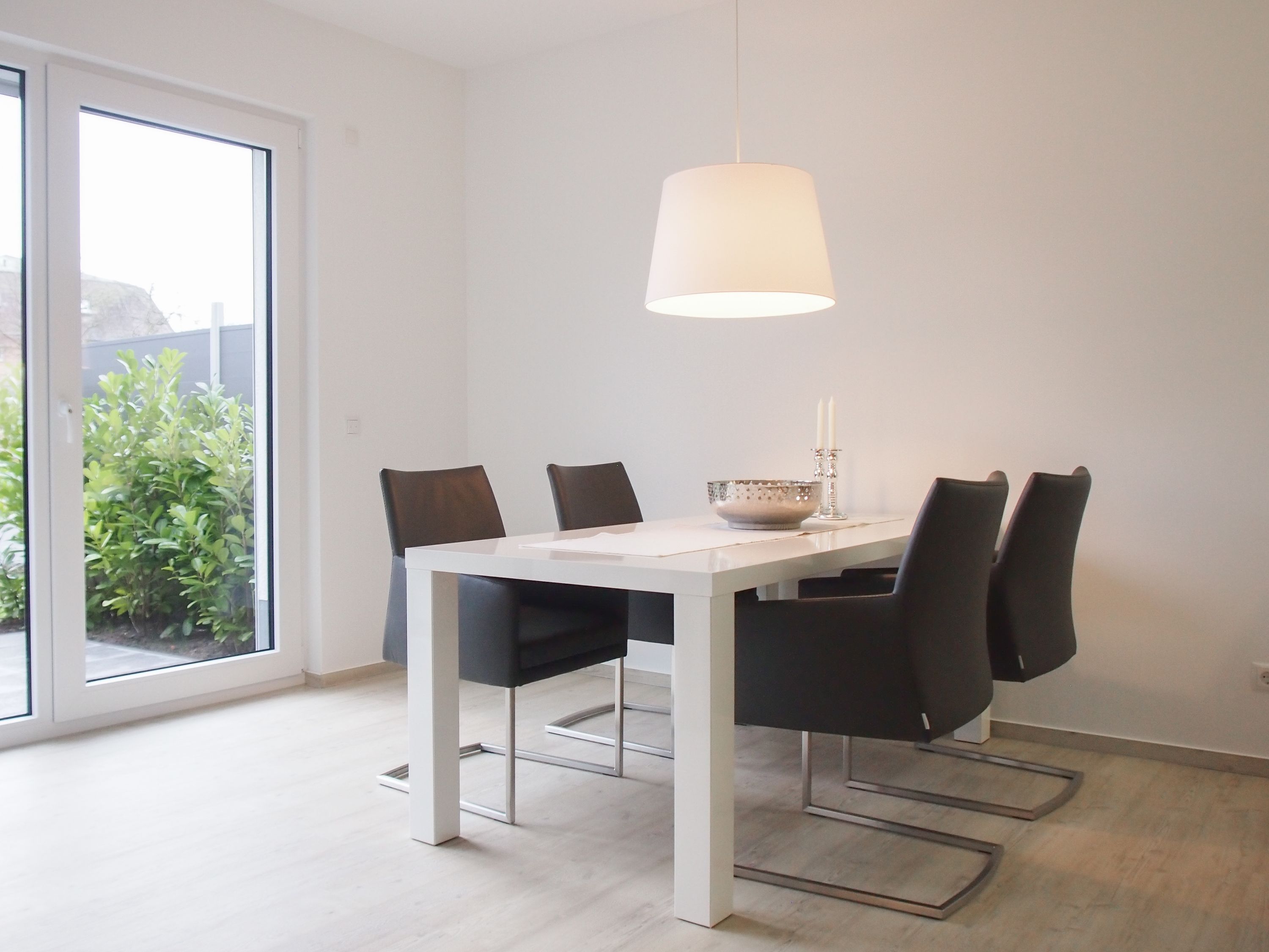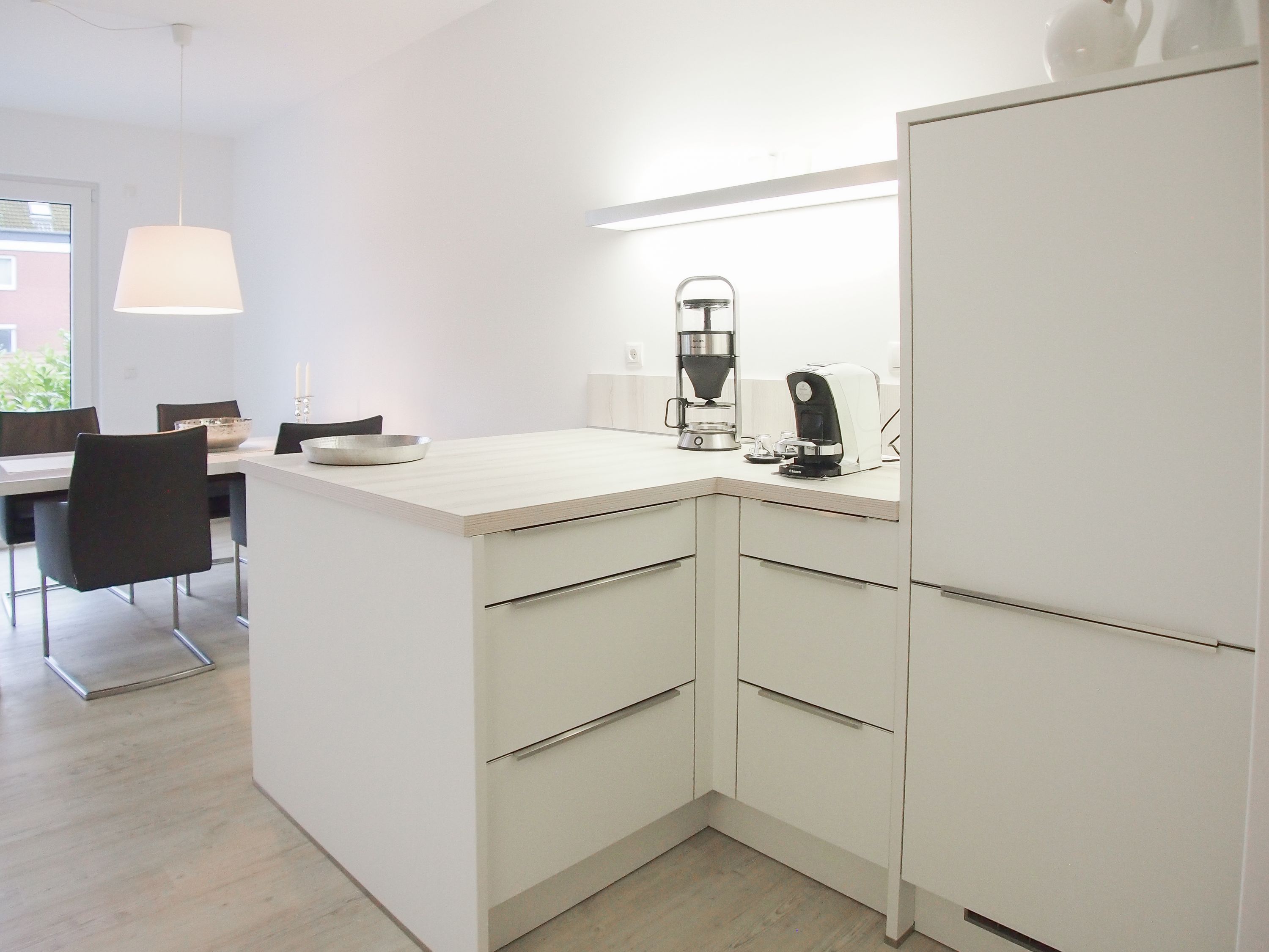 Diese Ferienwohnung befindet sich im Erdgeschoss  nur ca. 100 Meter vom Ostseestrand entfernt. Die Einrichtung ist sehr hochwertig sowie komfortabel und auf 2-3 Personen (plus Kleinkind) ausgerichtet. Bodentiefe Fensterelemente sorgen für helle, sonnige Räumlichkeiten und die Fußbodenheizung für ein angenehmes Raumklima. Alle Fenster sind  mit elektrischen Außenjalousien versehen. Es erwartet Sie eine bestens ausgestattete Einbauküche mit angrenzendem Essbereich sowie ein geschmackvoll eingerichtetes Wohnzimmer mit hochwertiger Ledergarnitur mit Schlaffunktion und TV (Heimkino für optimale Klangqualität). Kostenloser Internetzugang steht über WLAN zur Verfügung. Die vorgelagerte über 20 qm große Südterrasse mit kleinem Gartenanteil ist teilweise überdacht und lädt zu jeder Tageszeit zum Entspannen ein. Gartenmöbel und Sonnenliegen sind vorhanden. Das separate Schlafzimmer ist mit einem hochwertigem Boxspringbett (180x200), einem zusätzlichem TV sowie einem großen Einbauschrank mit viel Staufläche ausgestattet. Ein modernes Duschbad mit viel Tageslicht rundet das Angebot ab.