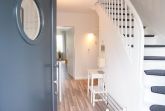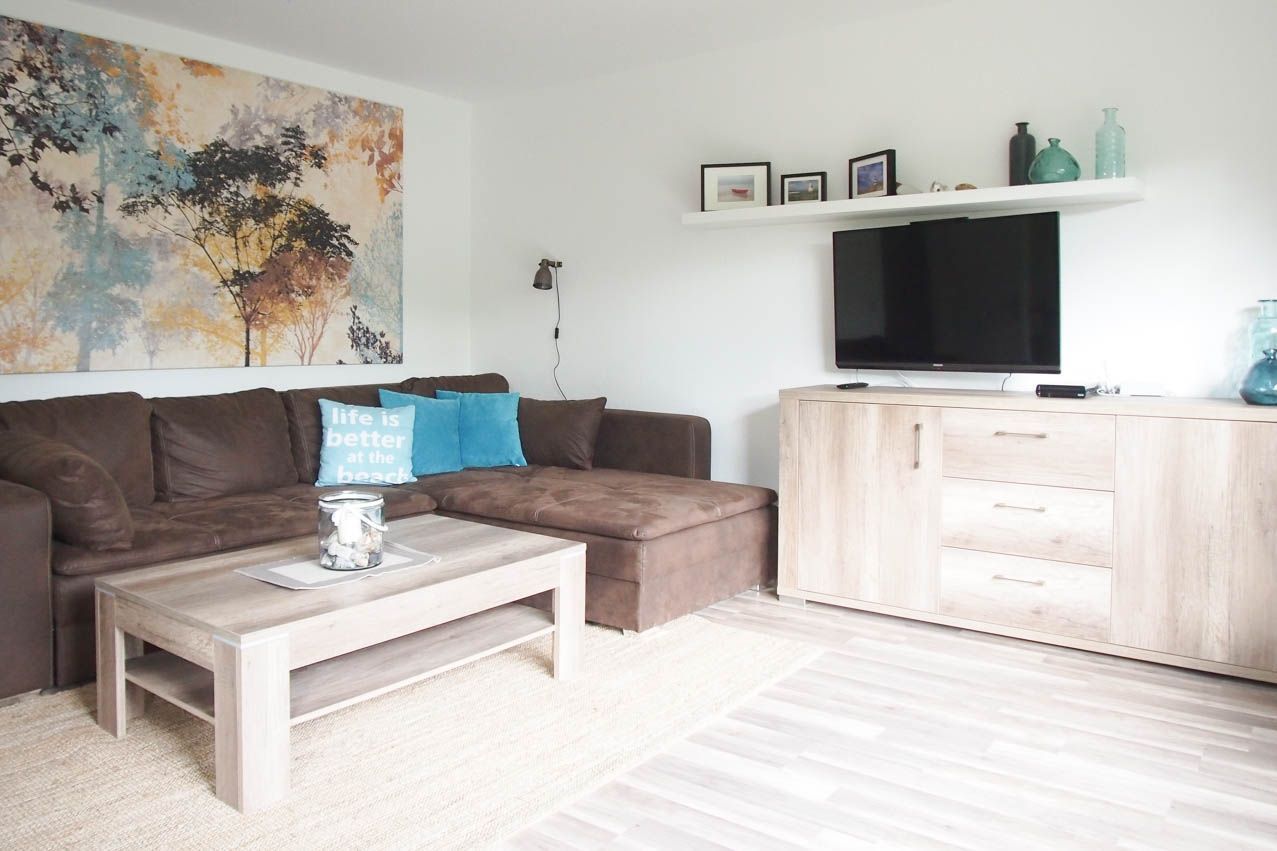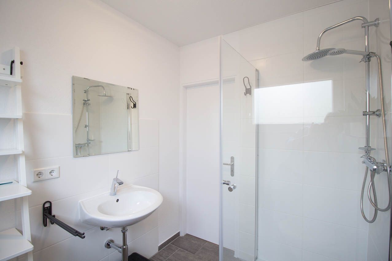 Im Erdgeschoss befindet sich ein geräumiger Wohnbereich mit Leseecke und Kaminofen, ein großzügiger Essbereich für 8 Personen sowie eine moderne Einbauküche, in der neben allen technischen Geräten auch eine Waschmaschine und ein Trockner integriert sind. Zwei Schlafzimmer, eines mit direktem Terrassenzugang und Doppelbett (180x200), ein weiteres mit einem Einzelbett mit Auszug (160x200) und ein modernes, helles Duschbad sind ebenfalls auf dieser Ebene untergebracht. Im Obergeschoss befinden sich 3 weitere Schlafzimmer, eines mit Doppelbett (180x200) und Kinderbett plus Wickeltisch, eines mit zwei Einzelbetten (90x200), ein weiteres mit einem Einzelbett mit Auszug (160x200). Ein großzügiges Bad mit Badewanne und Dusche sowie ein separates Gäste WC stehen im Obergeschoss zur Verfügung. Im Haus befinden sich drei TV.
