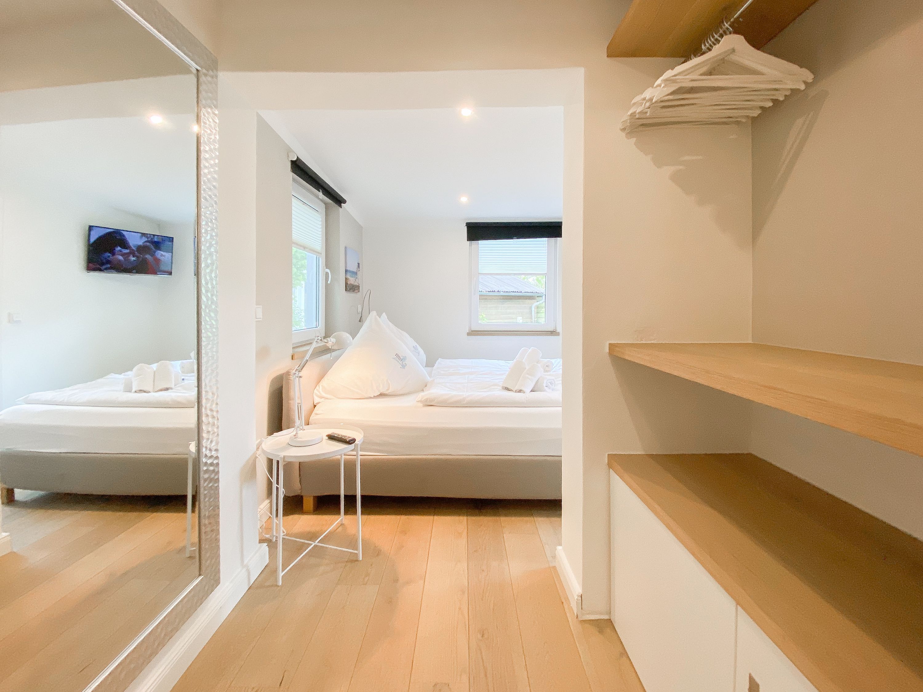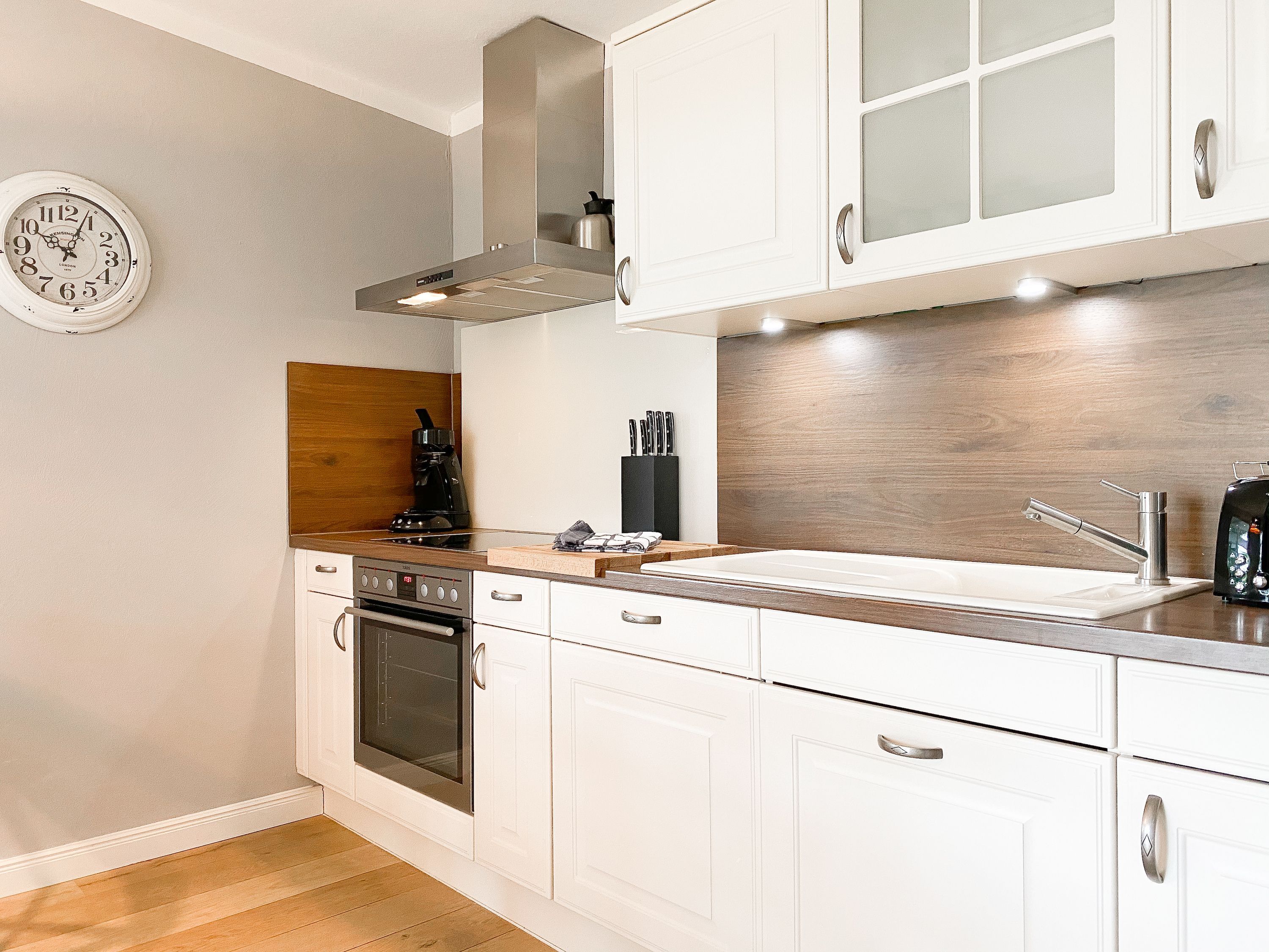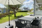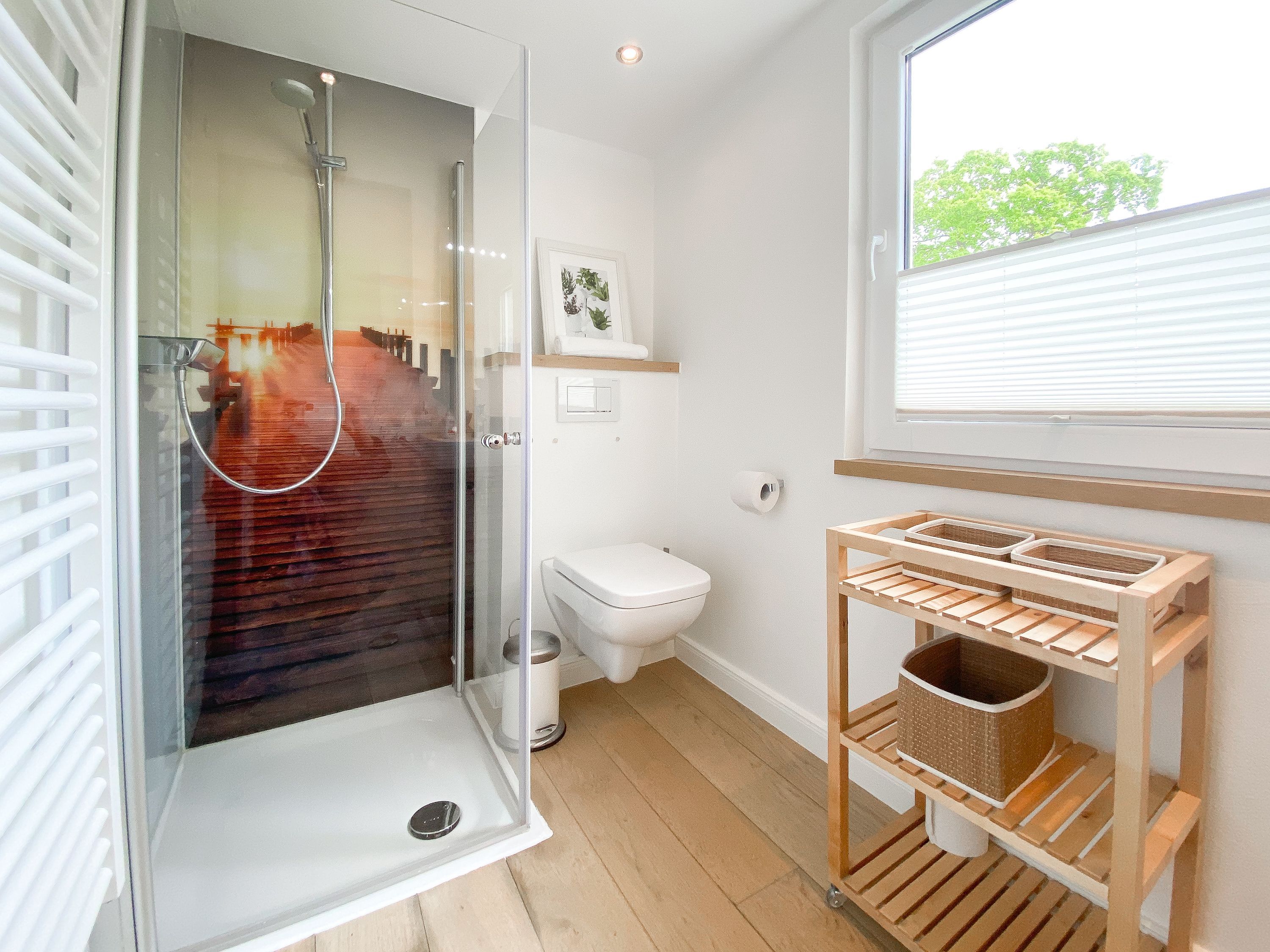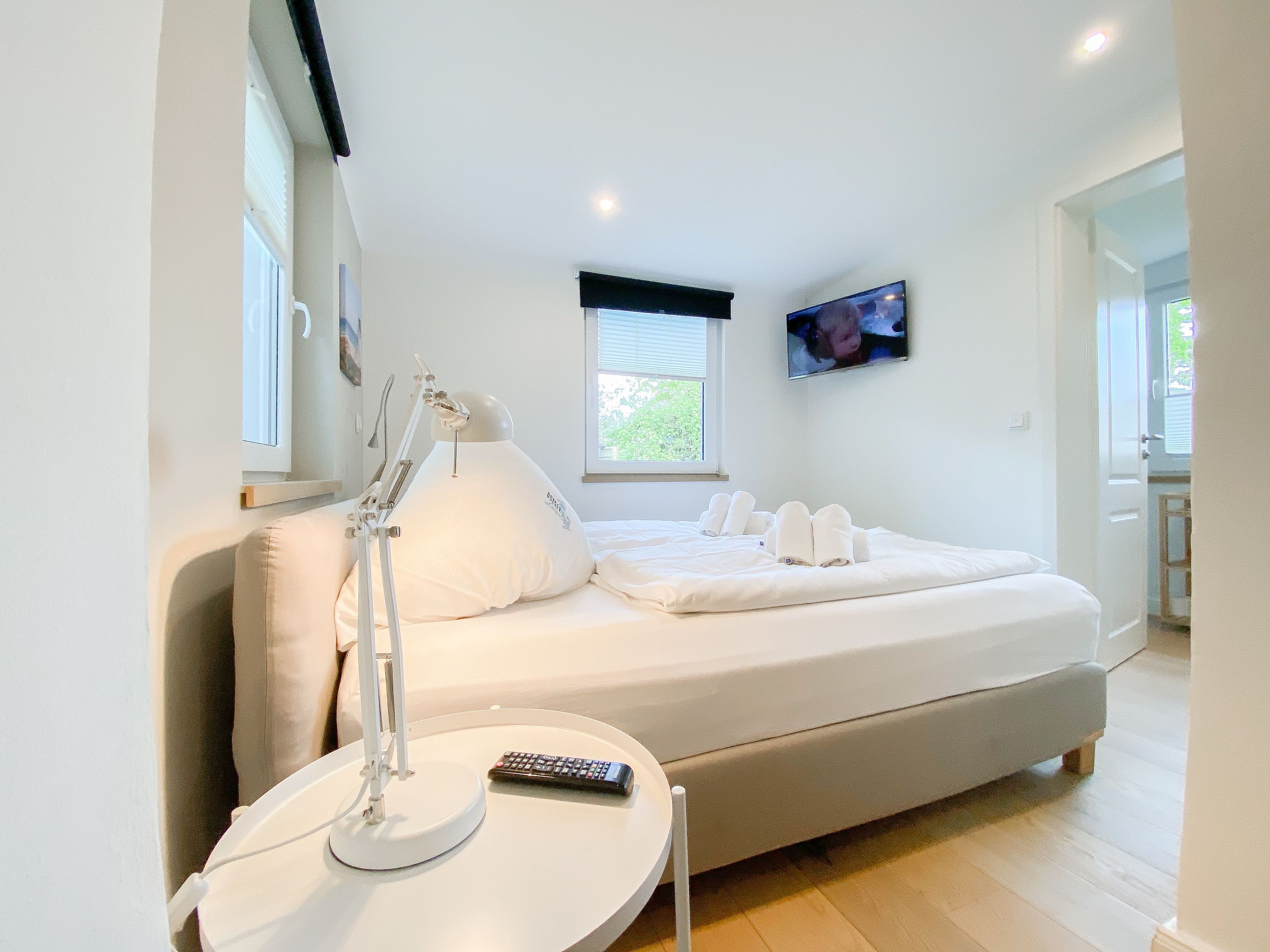 Mit circa 90 qm Wohnfläche, einem schönem eingewachsenem Garten in Südwestausrichtung, großer Terrasse und separatem Saunahaus, eignet es sich bestens für Familien und bietet ausreichend Platz für 5-6 Personen inklusive Kindern. Mittelpunkt des Hauses bildet der großzügige Wohnbereich mit riesigen Fensterflächen und wunderschönem Blick in den weitläufigen, eingezäunten Garten. Helle Räumlichkeiten, Echtholzböden und die geschmackvolle Einrichtung schaffen eine Atmosphäre zum Wohlfühlen. Es erwartet Sie eine hochwertige Wohnlandschaft, ein Kaminofen für gemütliche Abende und eine zeitgemäße Ausstattung wie TV, Bluetooth Lautsprecher, Radio und WLAN. Der großzügig angelegte Außenbereich verfügt über eine überdachte Terrasse in Südwest Ausrichtung mit reichlich Platz für gemütliche Stunden und einen schönen Garten mit Sonnenliegen und Gartenmöbeln. Erholung und Entspannung finden Sie im Saunahaus, das ebenfalls im Garten untergebracht ist. Die offene Einbauküche ist bestens ausgestattet(Geschirrspüler, Backofen, Mikrowelle) und der integrierte Essbereich bietet ausreichend Platz für 6 Personen. Das Haus verfügt über drei kleine Schlafzimmer mit Doppelbetten (160x200) und alle Fenster sind mit Plissees und Verdunkelungsvorhängen/Rollos versehen. Ein Schlafzimmer ist zusätzlich mit einem TV ausgestattet und verfügt über ein modernes Duschbad ensuite. Das zweite Duschbad ist über den Flur zu erreichen. Der vorhandene Stauraum für die Urlaubsgarderobe ist in zwei Schlafzimmern relativ gering.