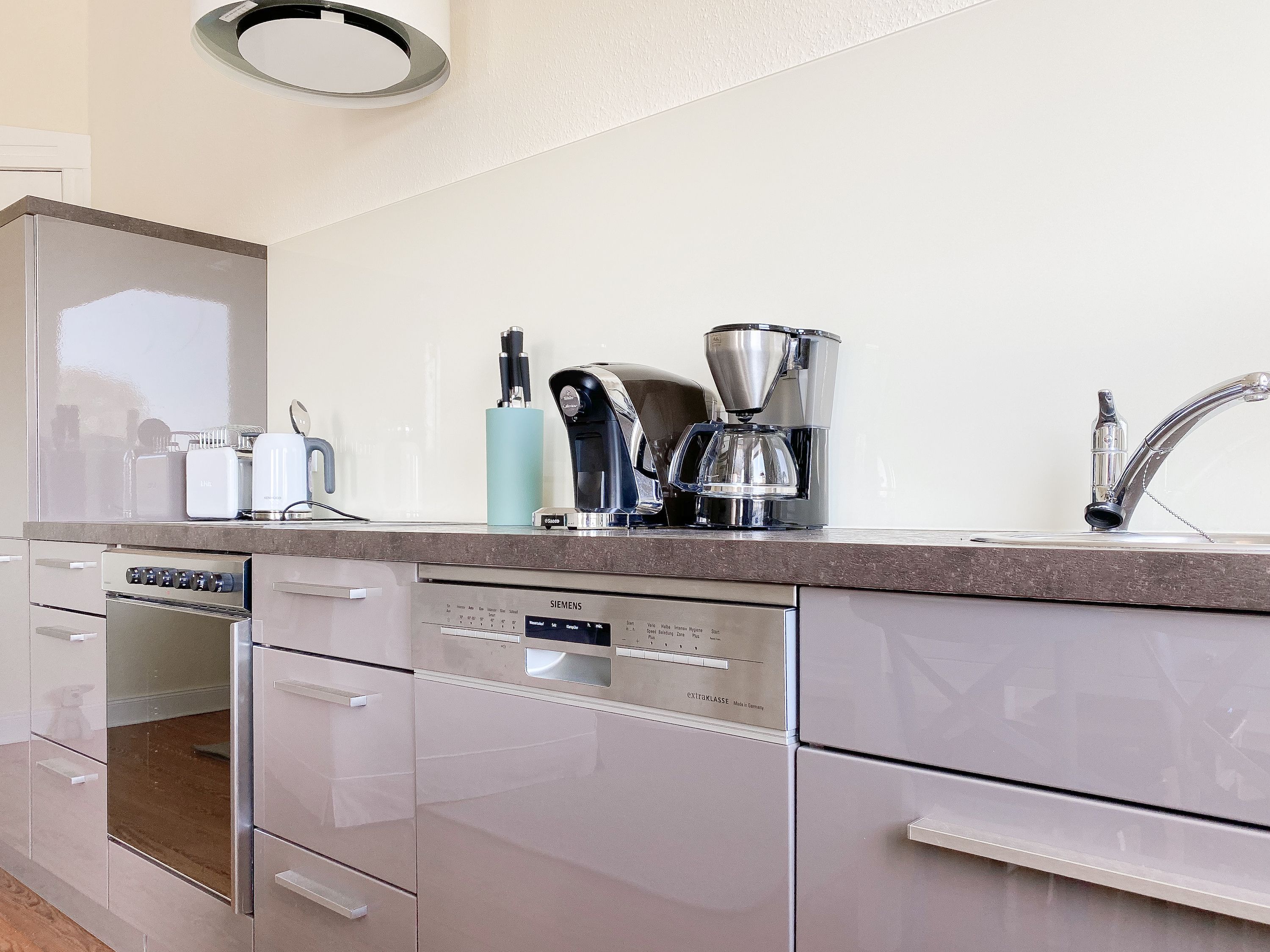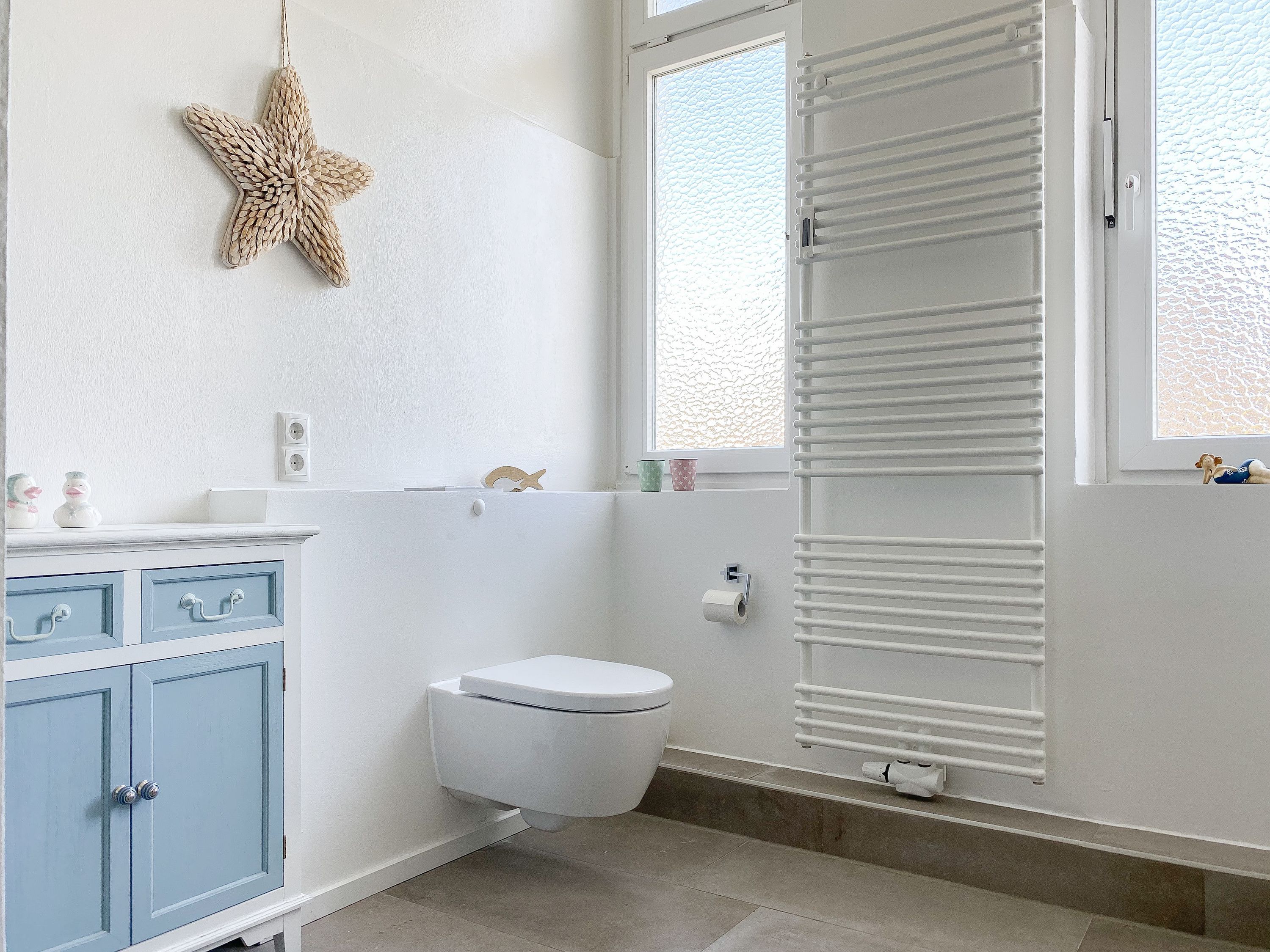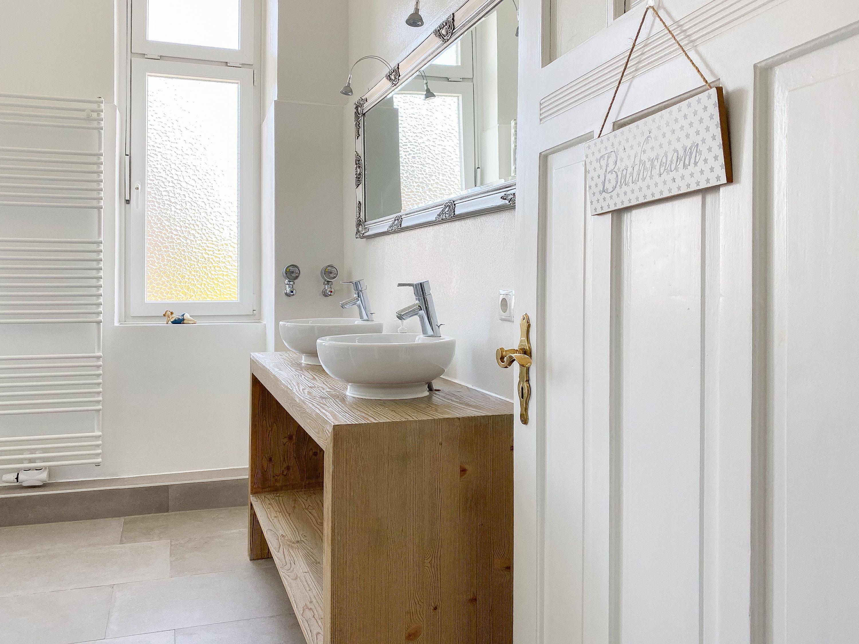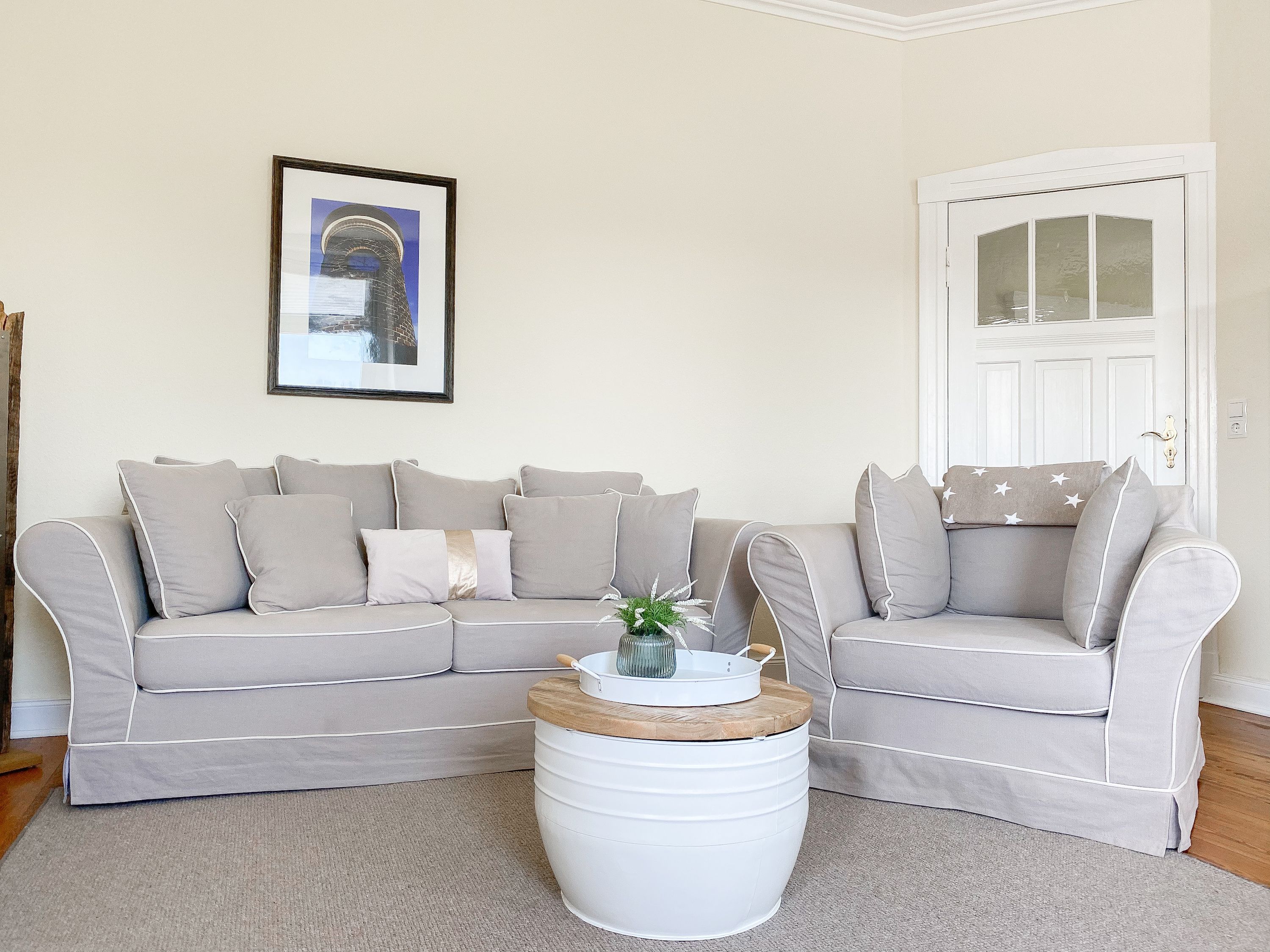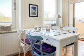 Die charmante Ferienwohnung im 3. OG wurde mit viel Liebe zum Detail saniert und eingerichtet. Die hohen Decken und großen Fenster schaffen eine helle, besondere Wohnatmosphäre. Ankommen und wohl fühlen! Die Wohnung verfügt über ein großes Schlafzimmer mit Doppelbett (180x200), TV und Zugang zur Loggia, über ein kleineres Schlafzimmer mit Einzelbett, das sich zu einem Doppelbett von 160x200 ausziehen lässt sowie ein hochwertiges, großes Duschbad mit viel Tageslicht. Das Zentrum bildet der Wohnbereich, ausgestattet mit einem gemütlichen Sofa , TV und kostenlosem Internetzugang über WLAN, die moderne Einbauküche mit allen notwendigen technischen Geräten und der Essbereich. Von hier ist auch die sonnige, geschützte Loggia zu betreten, die bei Sonne, Wind und Wetter zum Entspannen einlädt.