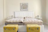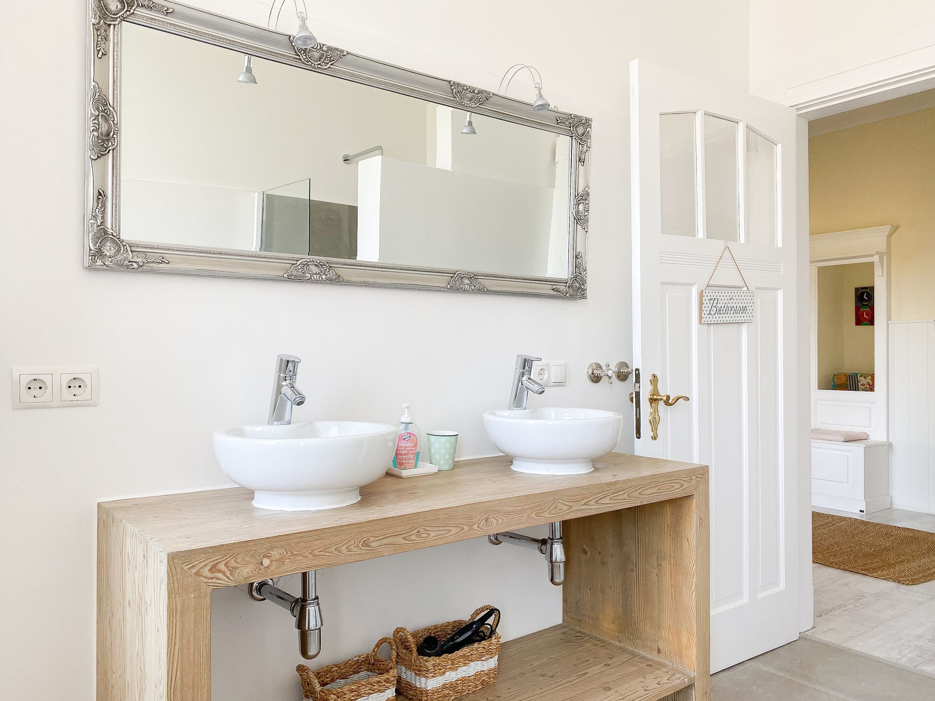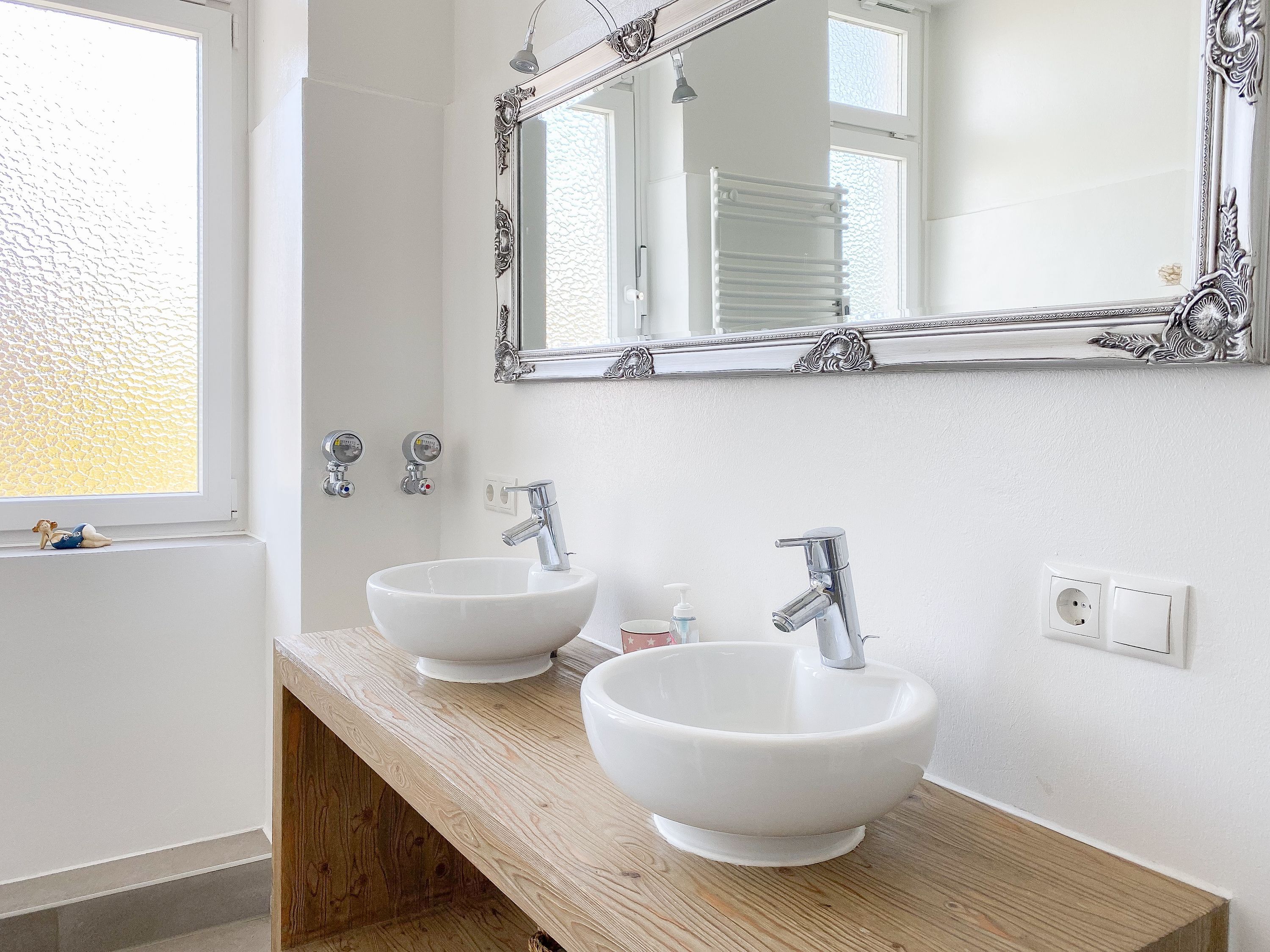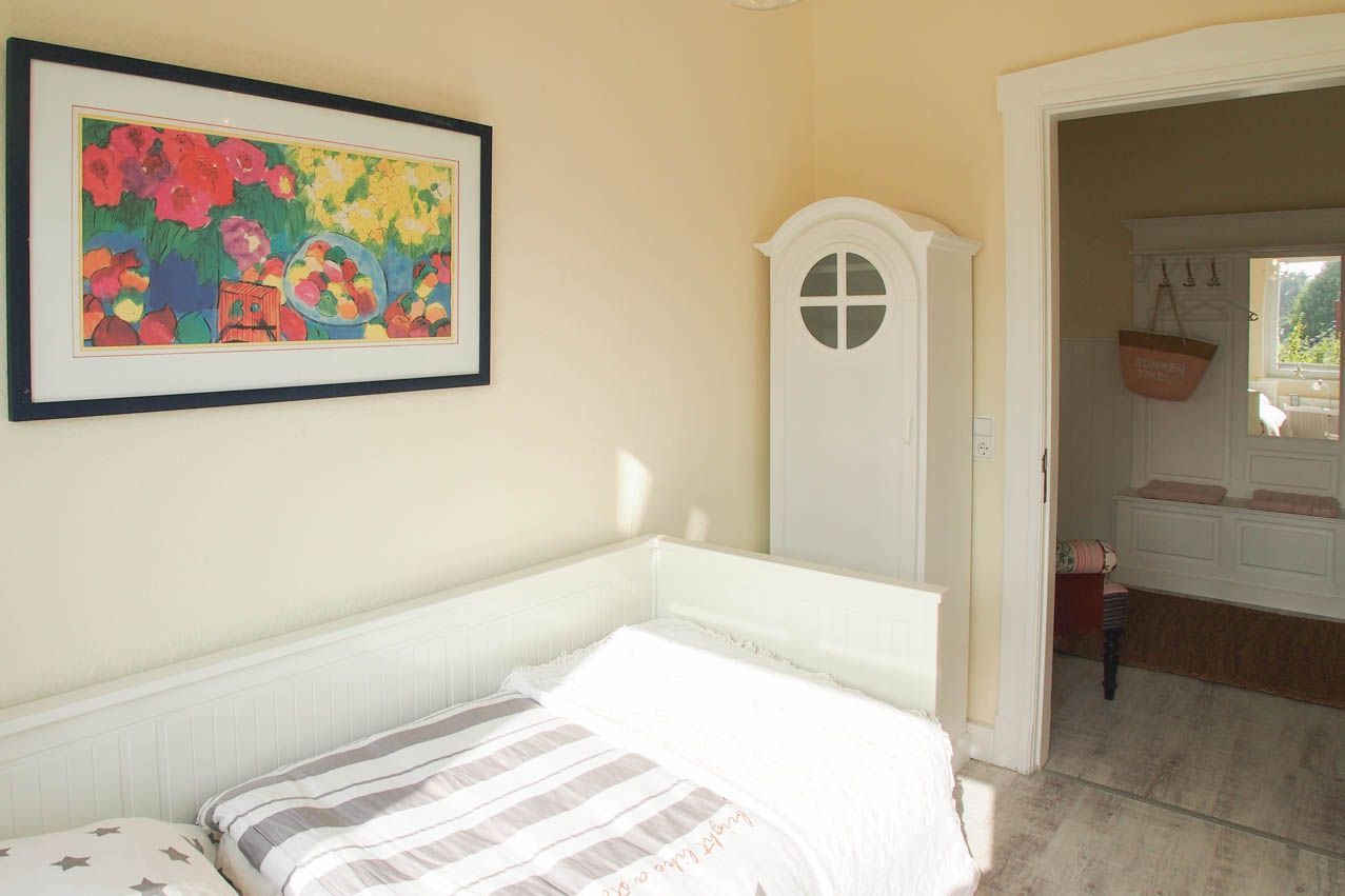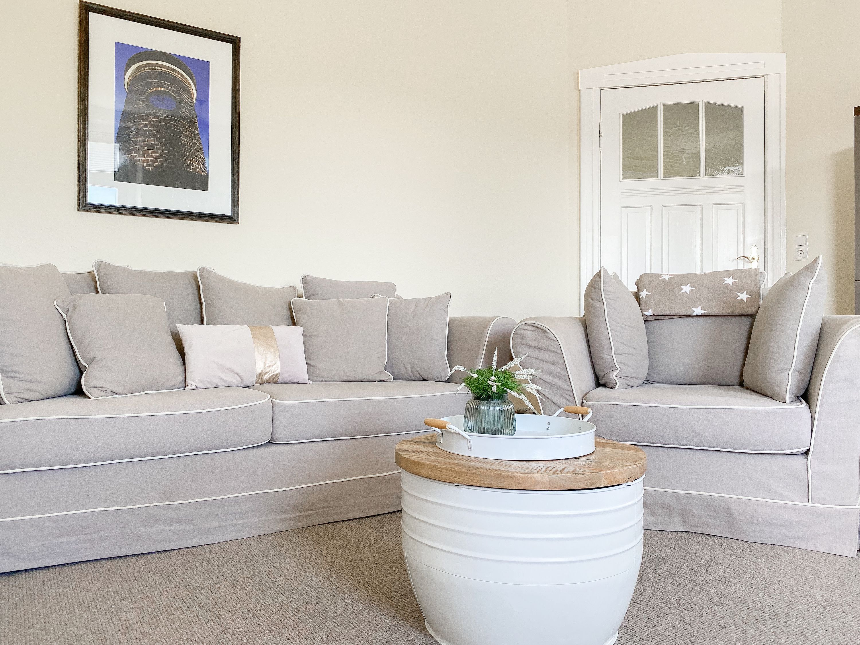 Die charmante Ferienwohnung im 3. OG wurde mit viel Liebe zum Detail saniert und eingerichtet. Die hohen Decken und großen Fenster schaffen eine helle, besondere Wohnatmosphäre. Ankommen und wohl fühlen! Die Wohnung verfügt über ein großes Schlafzimmer mit Doppelbett (180x200), TV und Zugang zur Loggia, über ein kleineres Schlafzimmer mit Einzelbett, das sich zu einem Doppelbett von 160x200 ausziehen lässt sowie ein hochwertiges, großes Duschbad mit viel Tageslicht. Das Zentrum bildet der Wohnbereich, ausgestattet mit einem gemütlichen Sofa , TV und kostenlosem Internetzugang über WLAN, die moderne Einbauküche mit allen notwendigen technischen Geräten und der Essbereich. Von hier ist auch die sonnige, geschützte Loggia zu betreten, die bei Sonne, Wind und Wetter zum Entspannen einlädt.