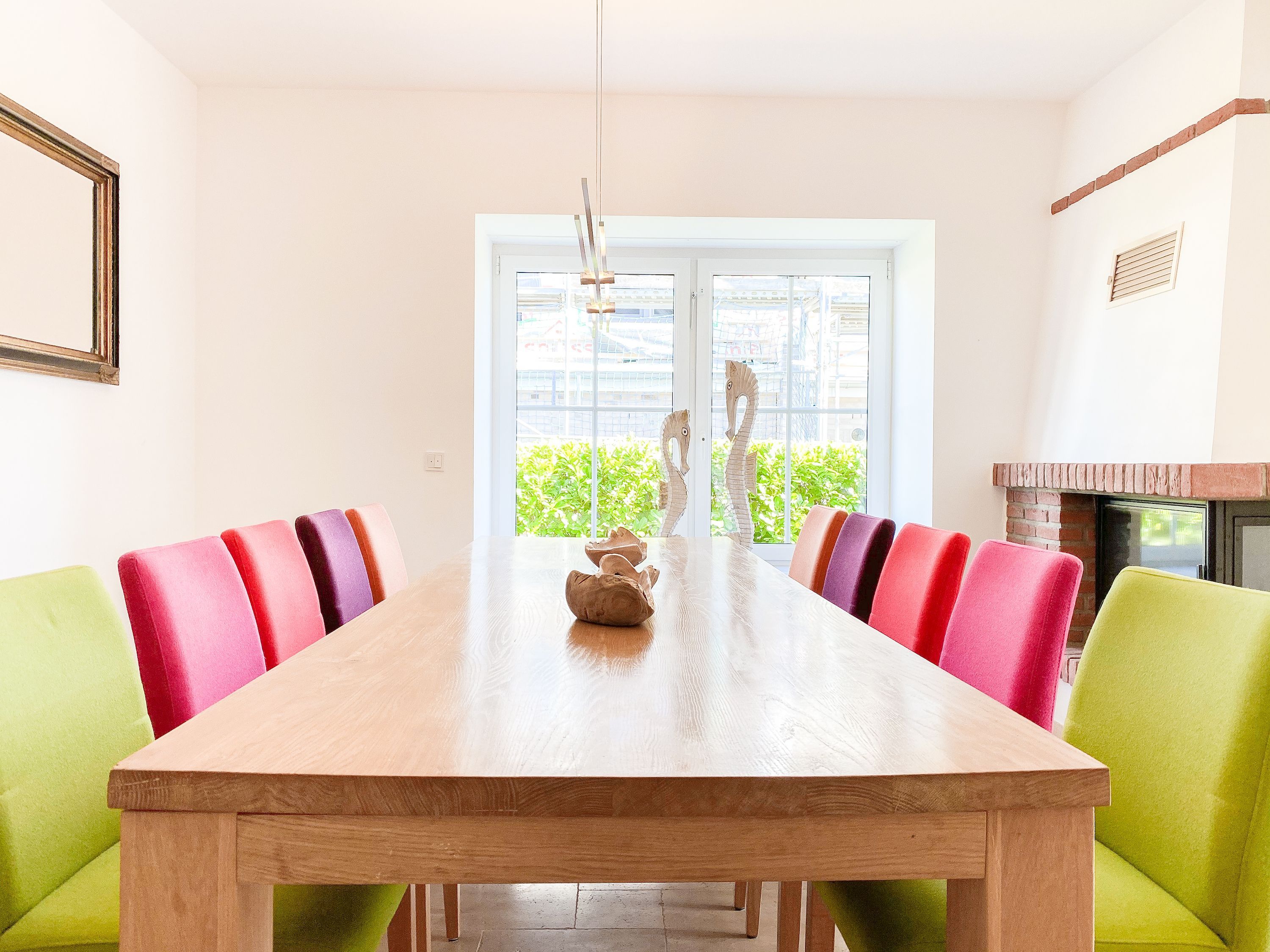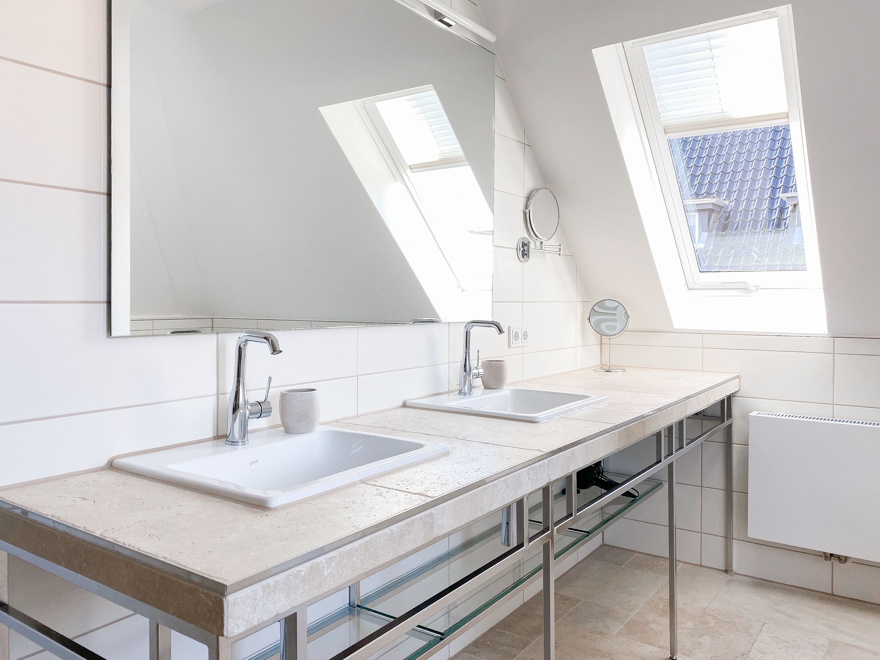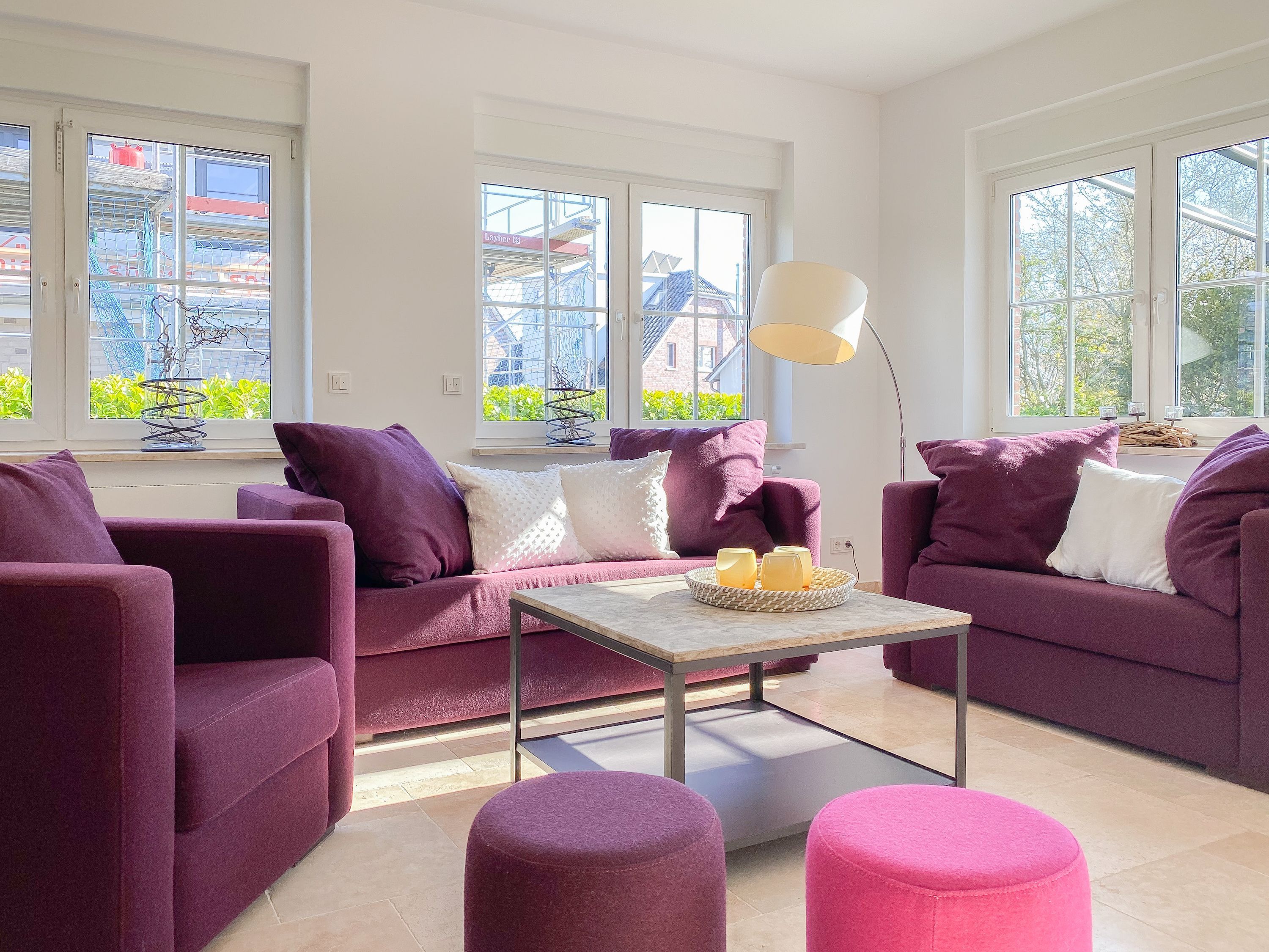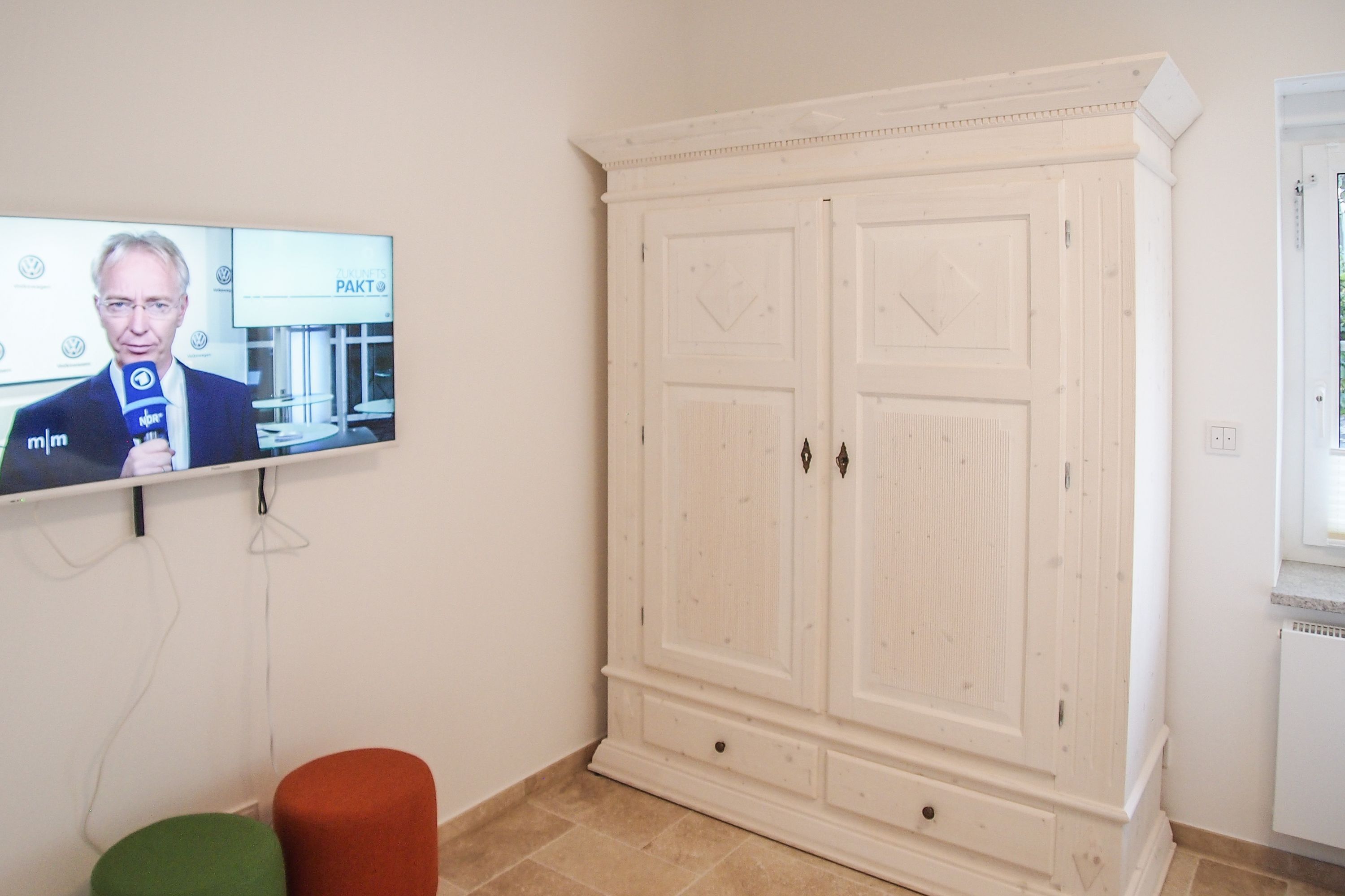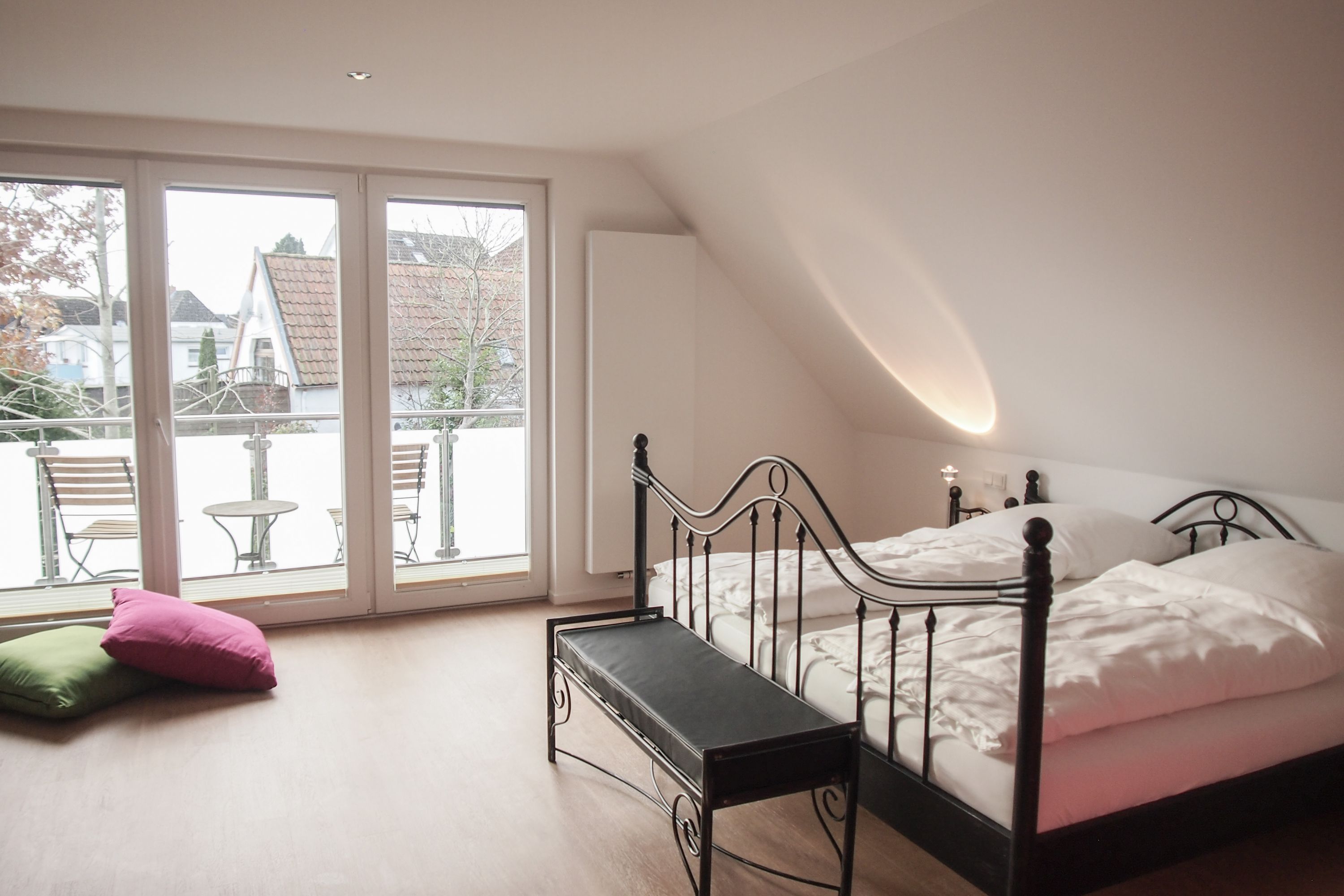 Im Erdgeschoss befinden sich zwei geräumige Schlafzimmer mit Doppelbetten und TV, zwei moderne Duschbäder sowie ein weiteres Schlafzimmer mit Einzelbett, Kinderbett und Wickelkommode für die Kleinsten. Weiter eine abgeschlossene, gut ausgestattete Küche mit gemütlichem Frühstücksbereich. Über den Flur ist das für 9 Personen ausgelegte Esszimmer sowie das großzügige, angeschlossene Wohnzimmer (TV, Sonosanlage, WLAN) zu erreichen. Im Obergeschoss sind zwei weitere große Schlafzimmer mit Doppelbetten, Balkon und TV sowie das Masterbad mit Badewanne, Dusche und integrierter Sauna. Alle Fenster sind mit elektrischen Außenjalousien versehen. Waschmaschine und Trockner sind im Keller untergebracht. Auf dem Grundstück befinden sich drei PKW Stellplätze. Am Haus befindet sich eine Wallbox zum Laden von E -Fahrzeugen (vorherige Anmeldung notwendig).