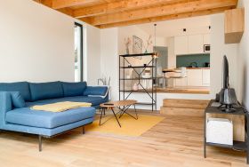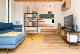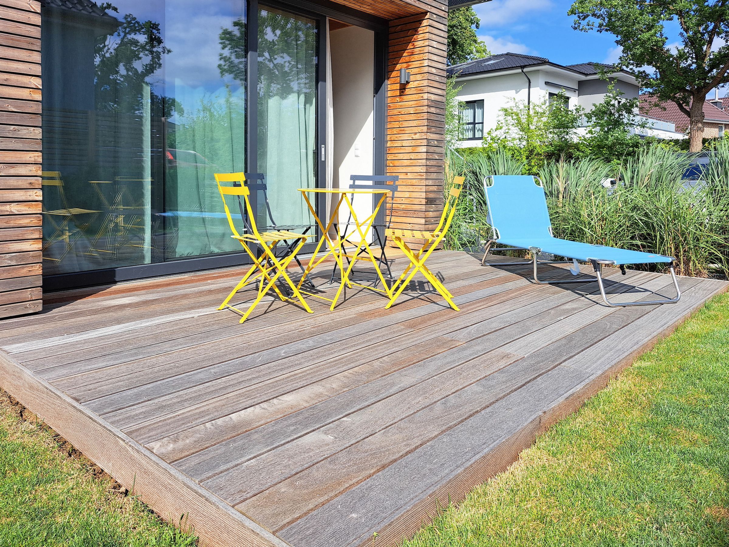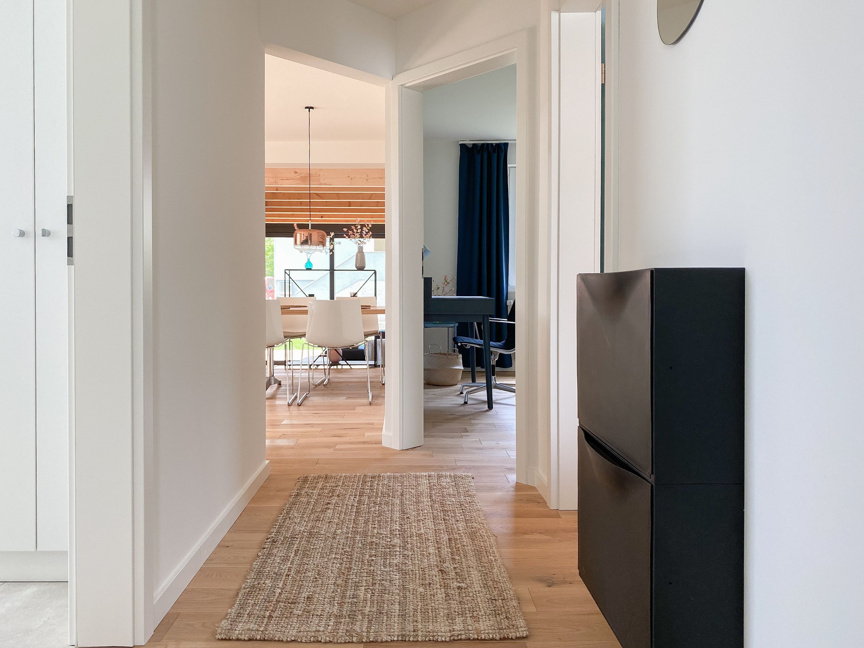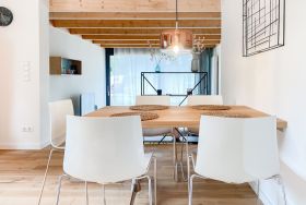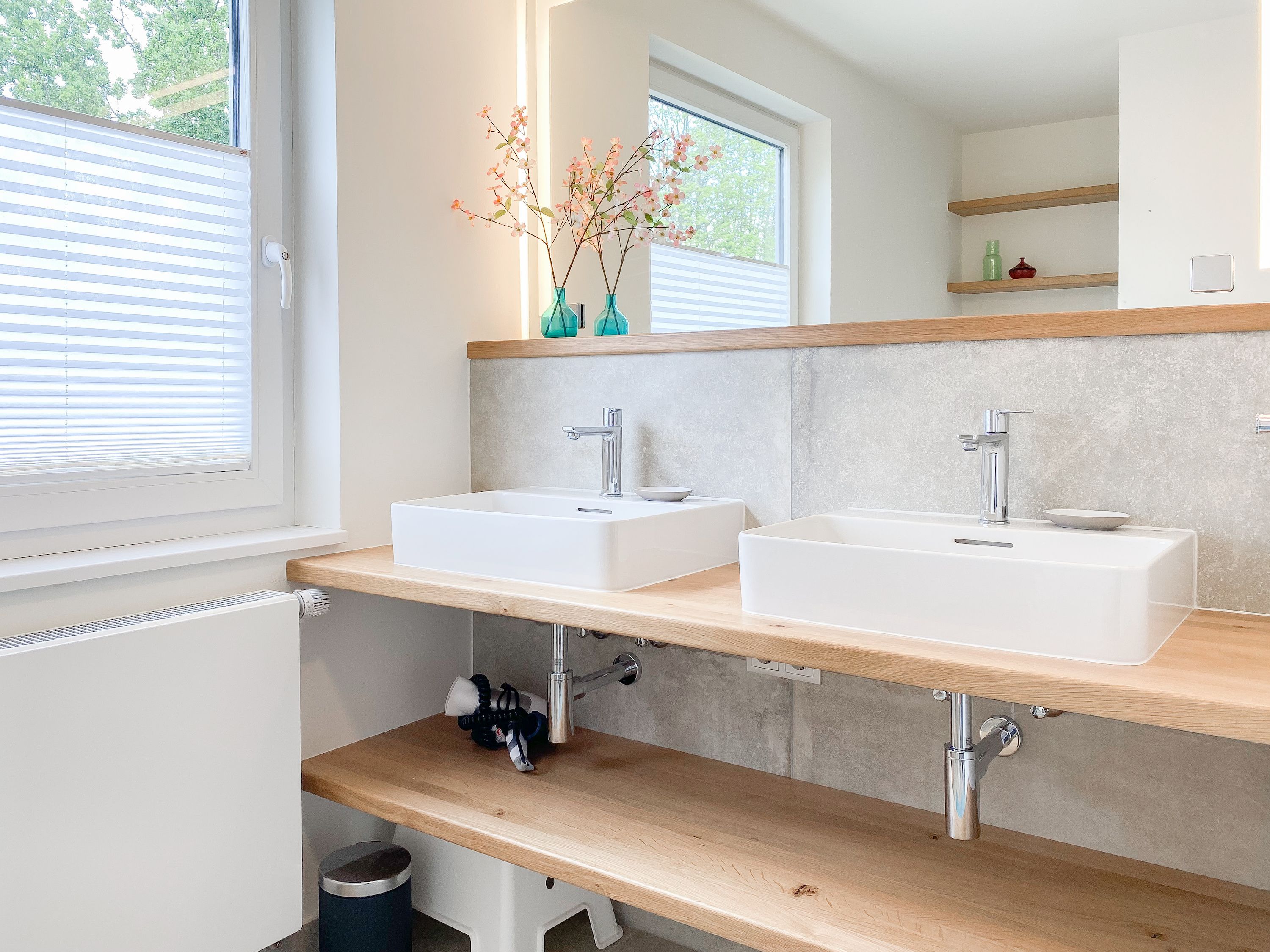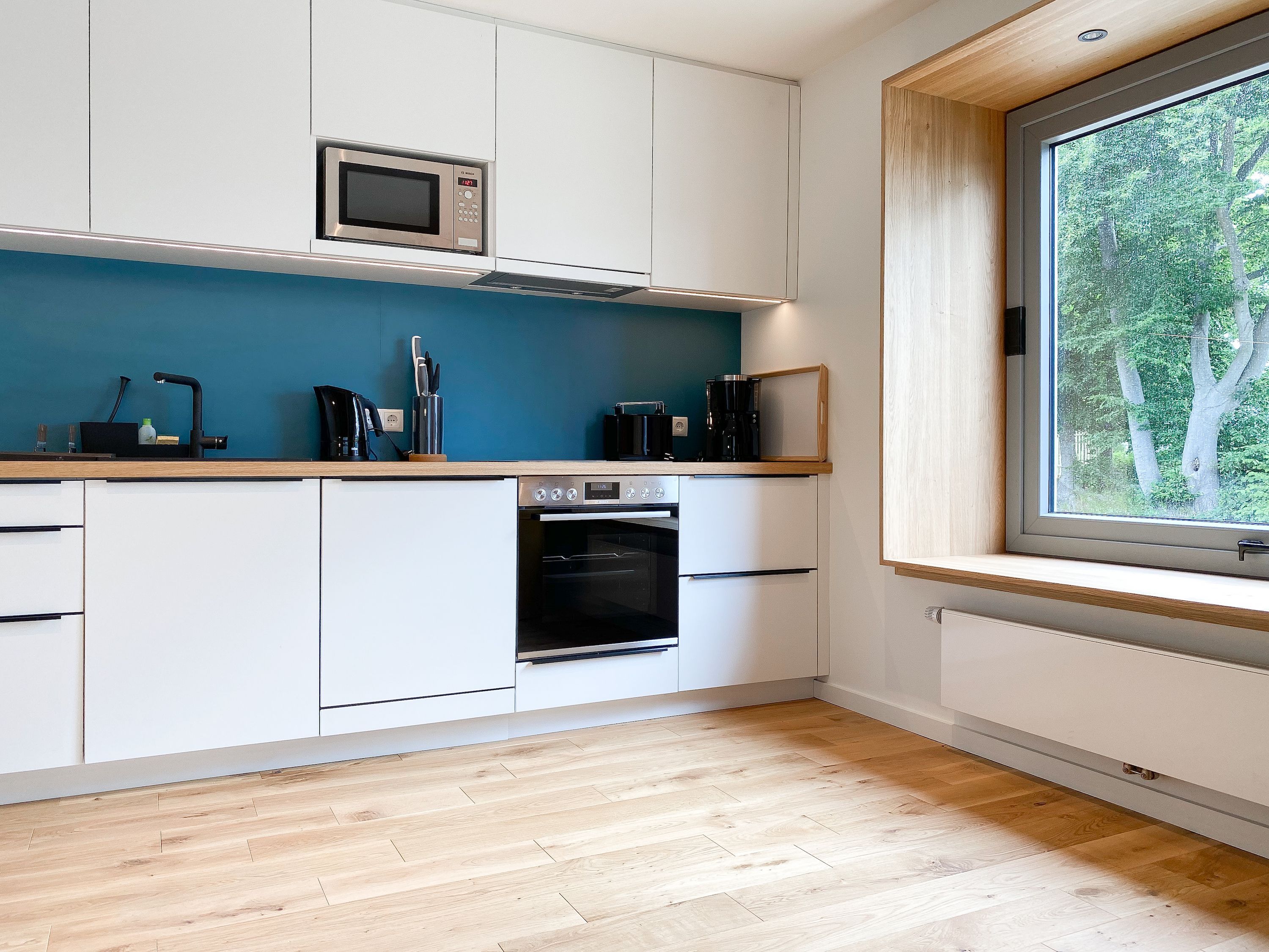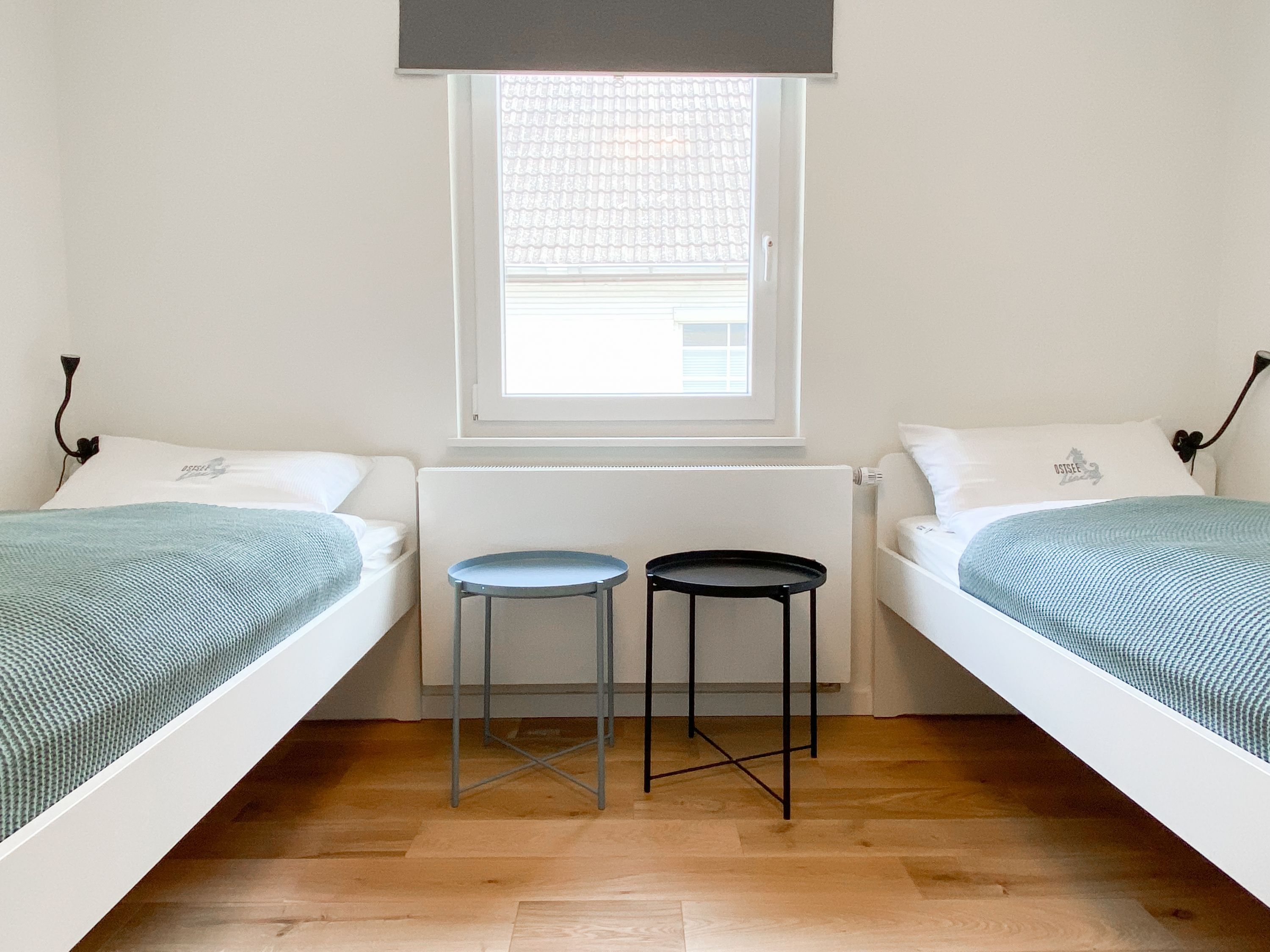 Es erwartet Sie eine wunderschöne Ferienwohnung im hyggeligen Wohnstil, der Gemütlichkeit und Wohlbefinden vermittelt. Natürliche Materialien, warme Farben und ein durchdachtes Raumkonzept schaffen eine ganz besondere Atmosphäre, um wohl verdiente Urlaubstage zu genießen. Herzstück der Wohnung bildet der großzügige Essbereich mit offener Einbauküche in bester Ausstattung zum geselligen Beisammensein und gemeinsamen Kochen. Der um zwei Stufen abgesenkte Wohnbereich ist mit einem gemütlichen Ecksofa und TV eingerichtet. Die anschließende Holzterrasse in Südwest Ausrichtung ist großzügig angelegt und von einer Rasenfläche umgeben. Es gibt 2 Schlafzimmer, ausgestattet mit einem Doppelbett (180x200) und zwei Einzelbetten (90x200) sowie Verdunkelungsvorhängen bzw. Verdunkelungsrollo. Das hochwertige Bad mit Doppelwaschtisch, WC und Walk In Dusche ist lichtdurchflutet und großzügig gestaltet. Zusätzlich gibt es ein separates Gäste WC. WLAN steht selbstverständlich kostenlos zur Verfügung.