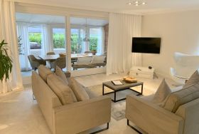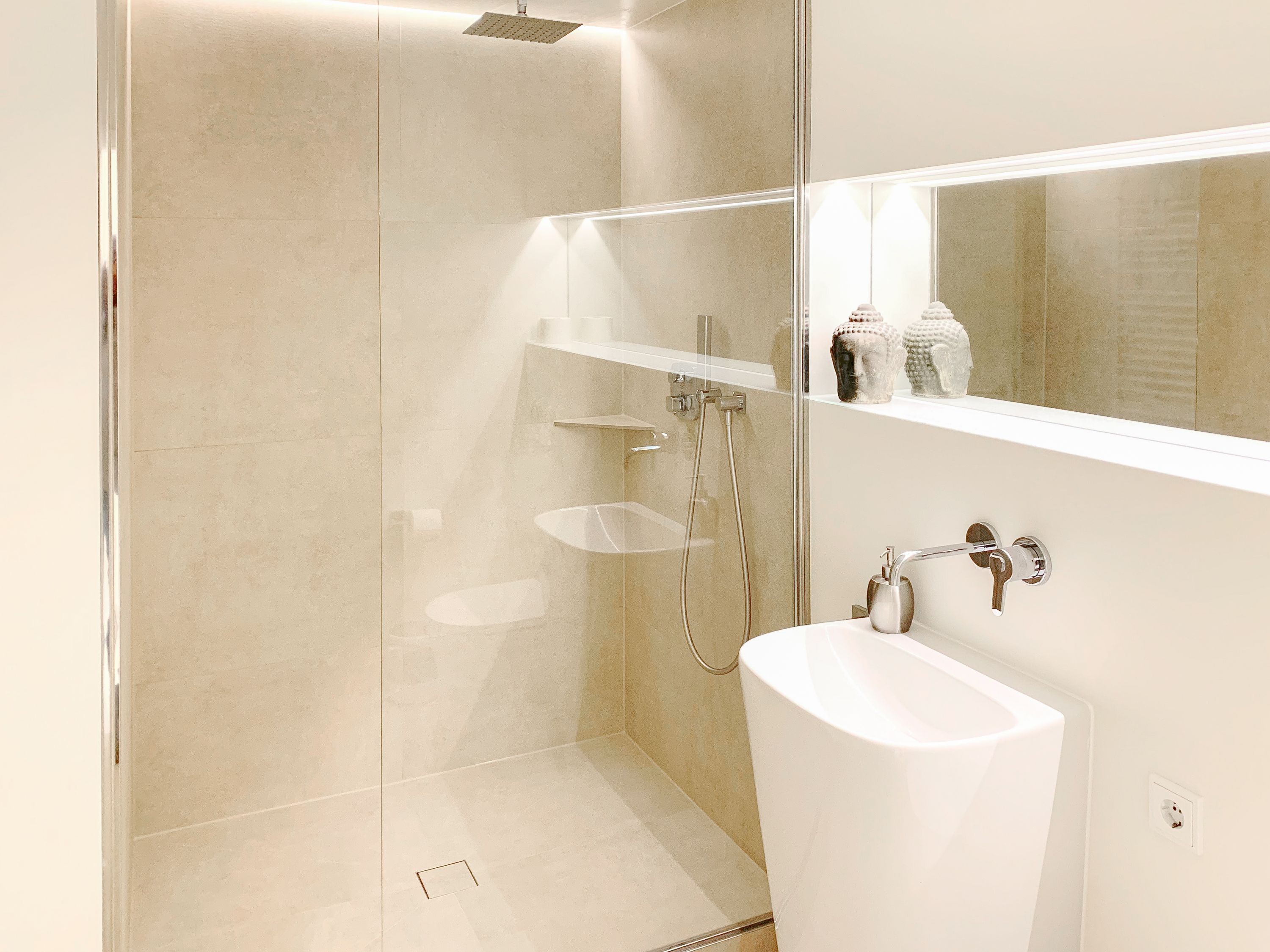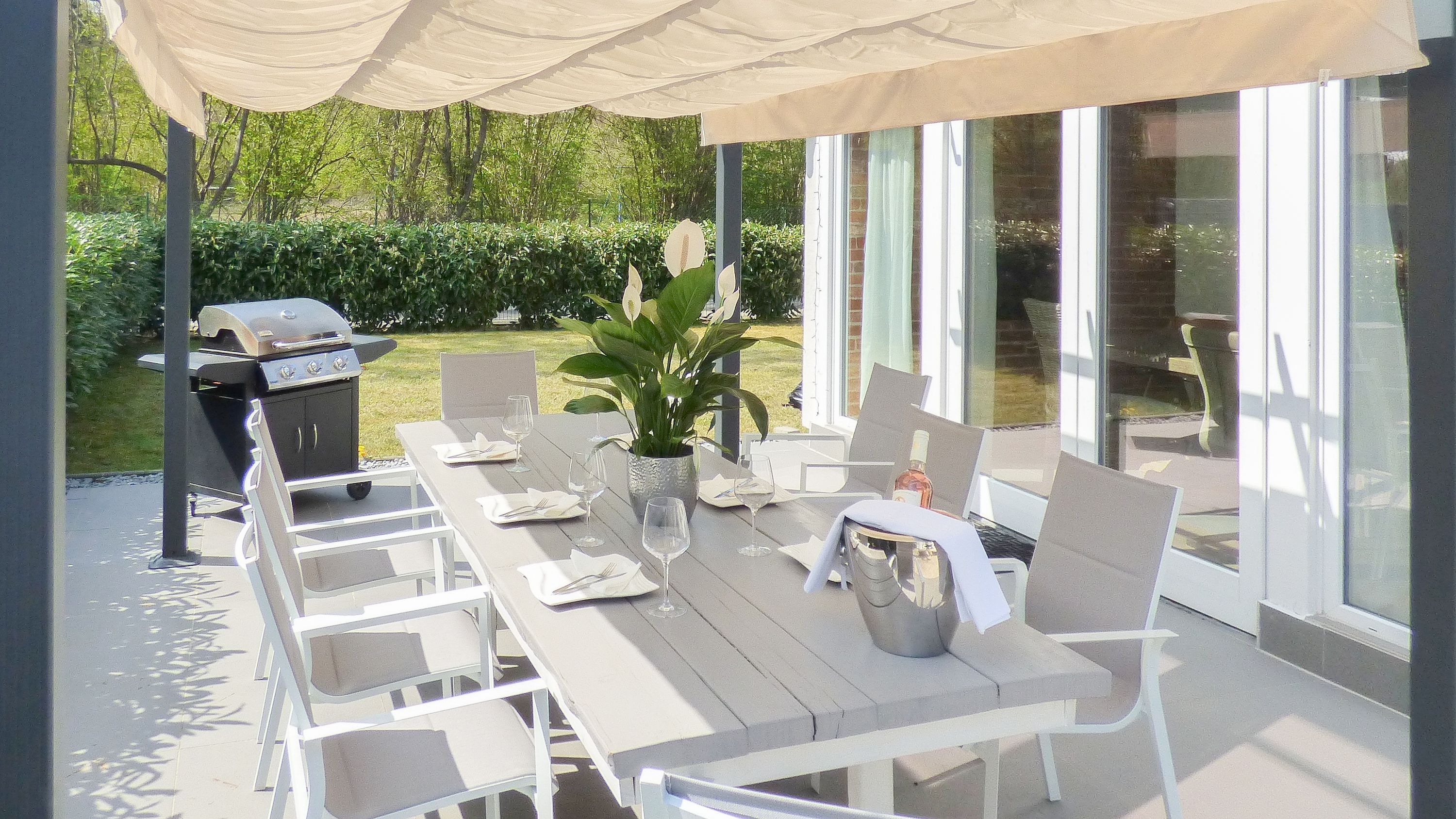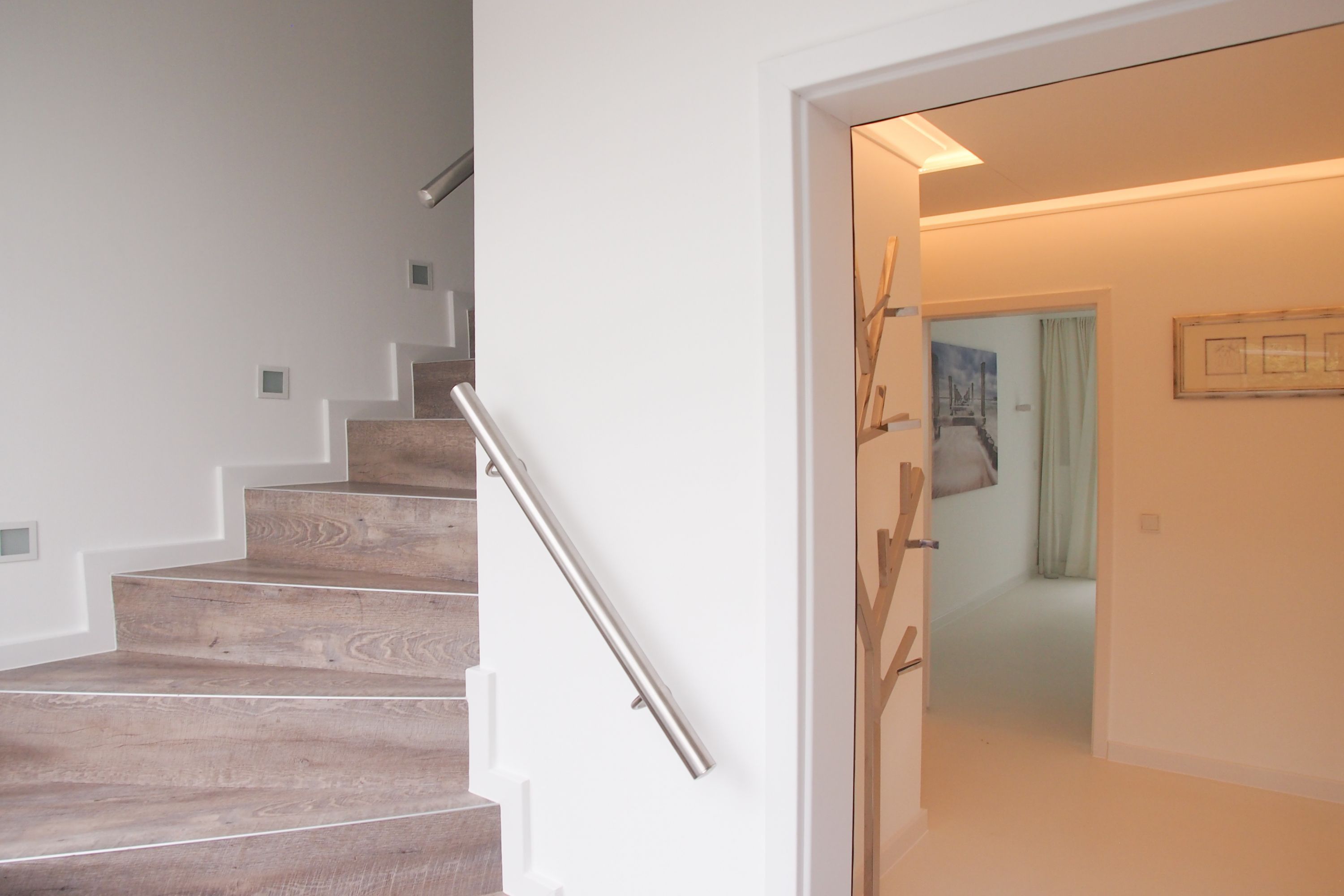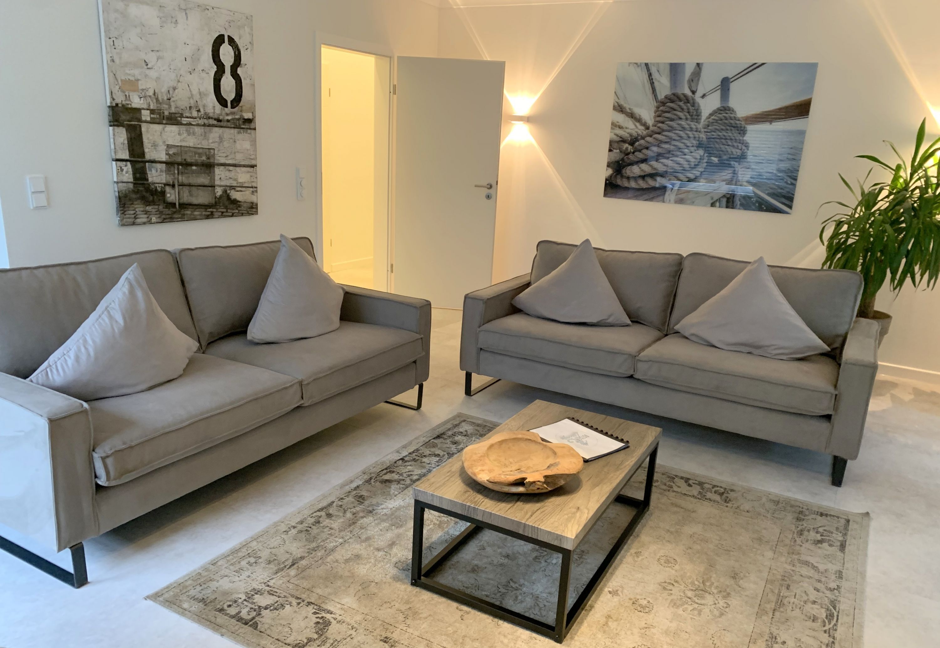 Im Erdgeschoss der stilvoll eingerichteten Wohnung befindet sich eine moderne Designküche mit allen technischen Geräten, ein großzügiger Wohnbereich mit TV und WLAN sowie ein gemütlicher Essbereich im Wintergarten. Die vorgelagerter Sonnenterrasse ist mit schönen Lounge Möbeln ausgestattet und der anschließende Garten steht unseren Gästen zur alleinigen Nutzung zur Verfügung. Ein großzügiges Schlafzimmer und ein modernes Duschbad sind ebenfalls auf dieser Ebene untergebracht. Im Untergeschoss befindet sich neben einem weiteren Schlafraum mit TV, ein modernes Duschbad, eine Sauna, ein Fitnessraum mit Sportgeräten und TV sowie Waschmaschine und Trockner in einem separaten Raum.