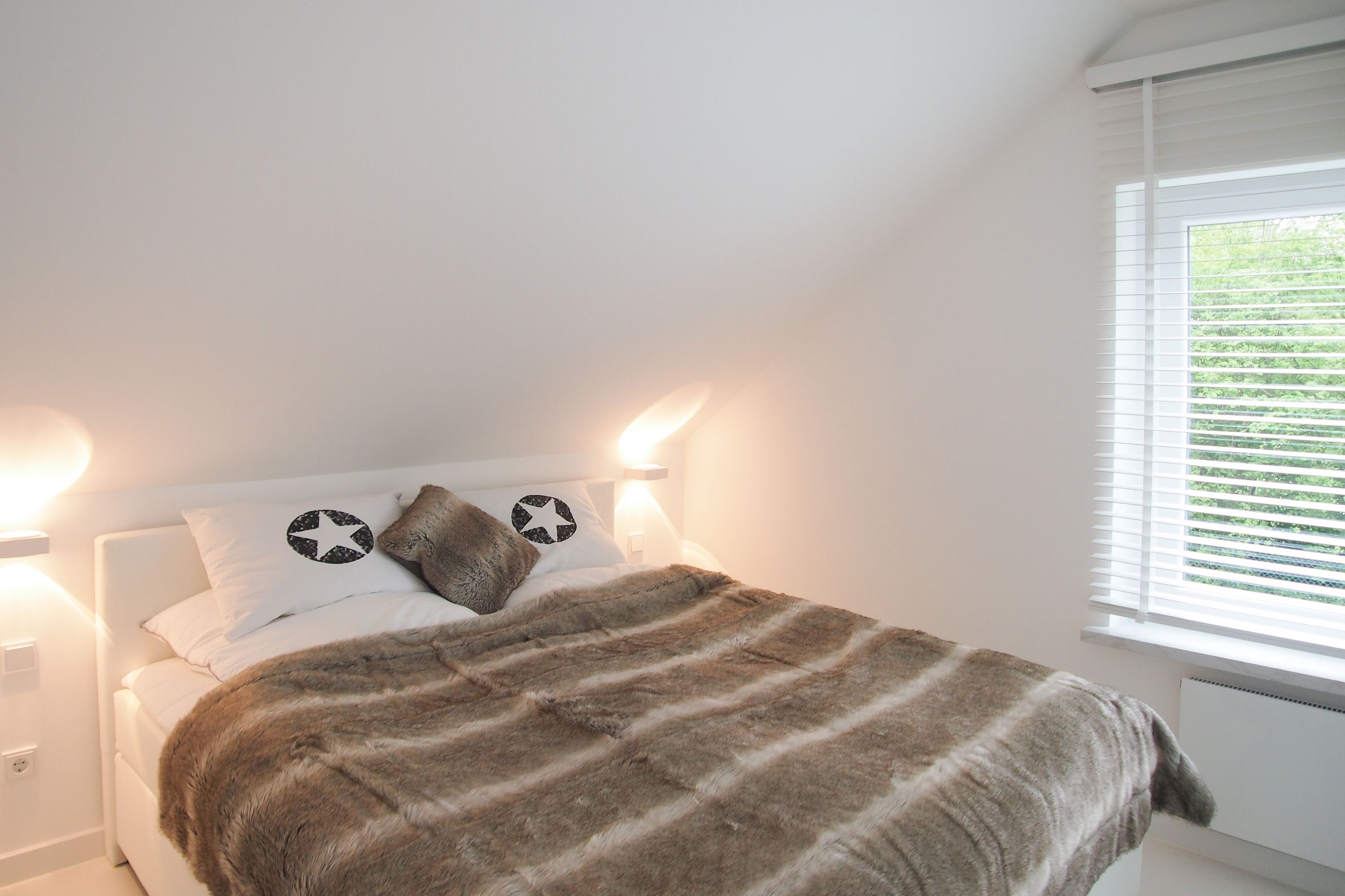 Im Obergeschoss befinden sich zwei weitere Schlafzimmern, ausgestattet mit 2 Doppelbetten und TV, ein Bad mit Badewanne sowie eine weitere Küche. Der Bereich im Oberschoss ist eine in sich geschlossene Einheit, das heißt nicht direkt mit dem Wohnbereich der Erdgeschossebene verbunden sondern über ein gemeinsames Treppenhaus mit der Ferienwohnung Pier 3 zu erreichen. PKW-Stellplätze befinden sich auf dem Grundstück. Das Grundstück grenzt an die Bäderrandstraße (B76).