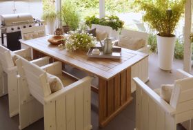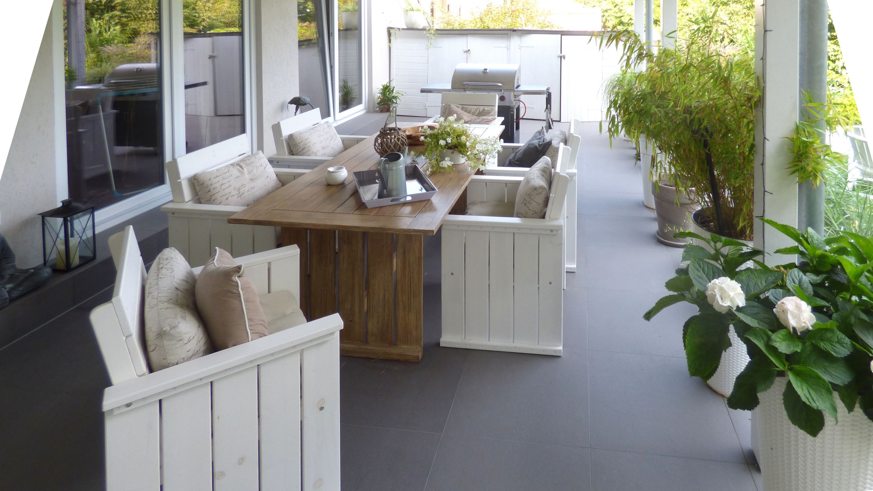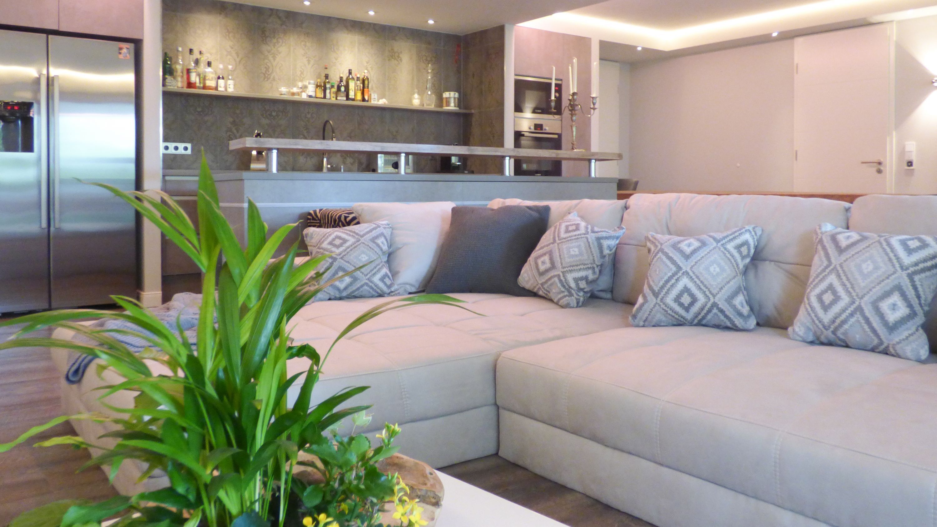 Das Herzstück der Wohnung bilden die großzügigen Bereiche Wohnen, Essen und Kochen, ausgestattet mit bodentiefen Fensterelementen mit Blick auf die riesige, überdachte Veranda, die sich über die gesamte Hausbreite erstreckt und den Garten. Genießen Sie den tollen Außenbereich zu jeder Tageszeit. Es erwartet Sie eine hochmoderne Designküche, perfekt ausgestattet mit allen technischen Geräten und integriertem Weinkühlschrank, ein großzügiger Essbereich sowie eine hochwertige Wohnlandschaft mit TV und Highspeed WLAN. Es stehen zwei separate Schlafzimmer, ausgestattet mit Boxspringbetten und TV sowie ein tolles Wellnessbad mit riesiger Badewanne und ein weiteres Duschbad zur Verfügung. Im Abstellraum ist ein Waschtrockner untergebracht. Ein PKW Stellplatz befindet sich auf dem Grundstück direkt an der Wohnung.
