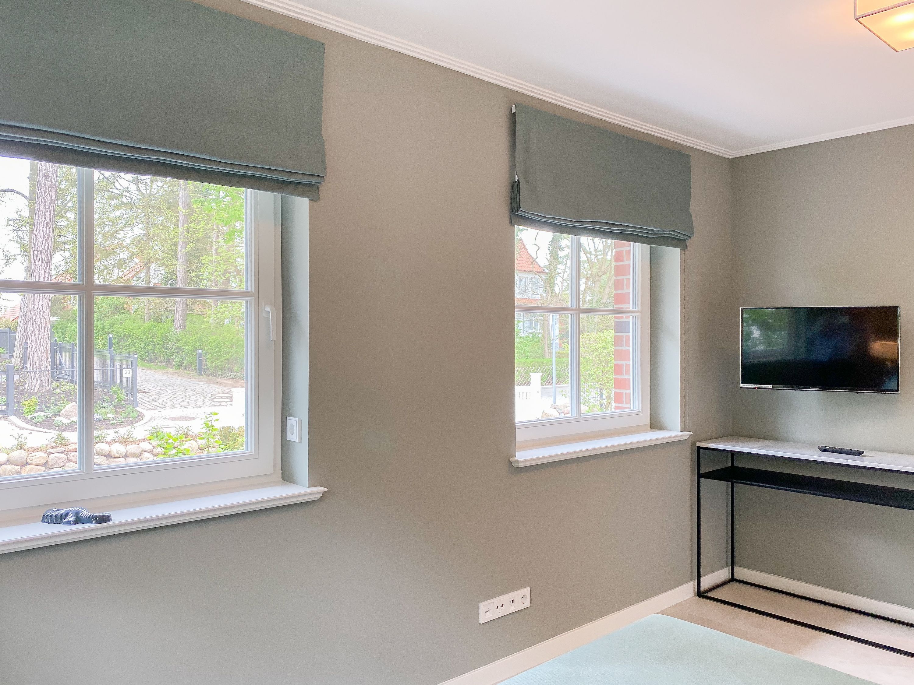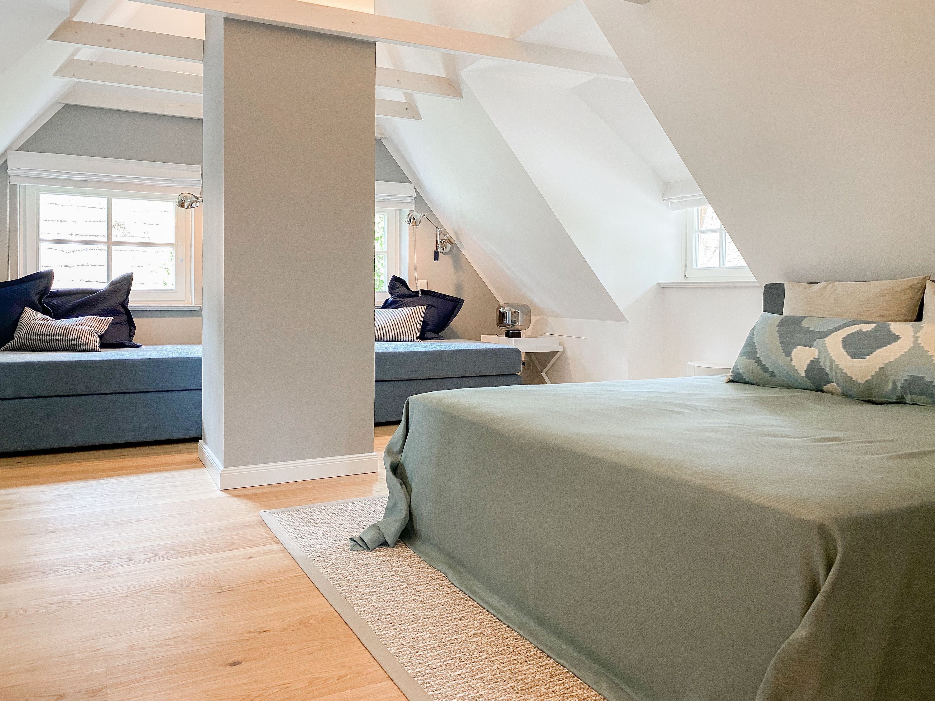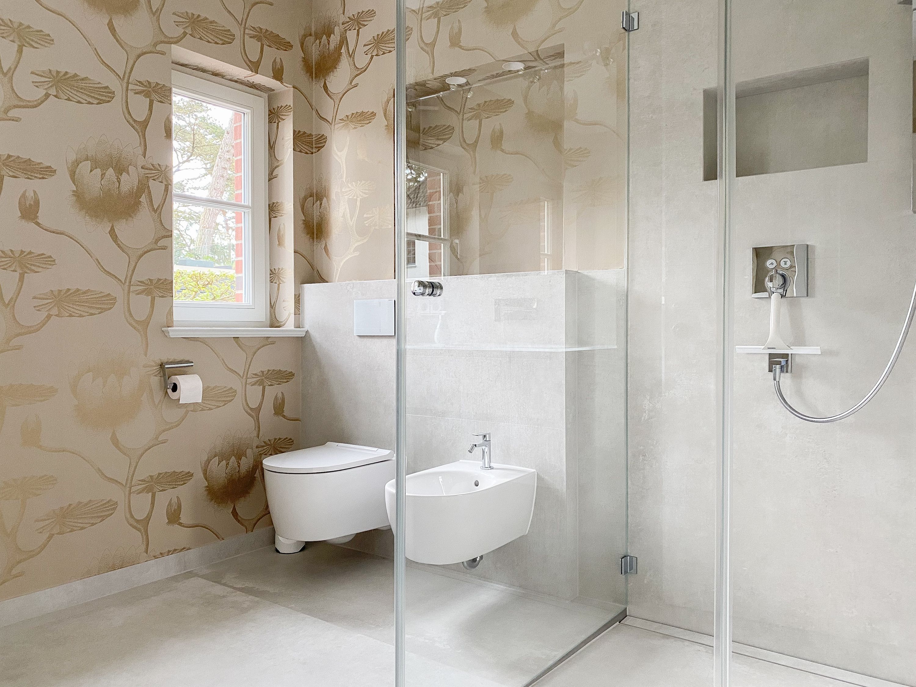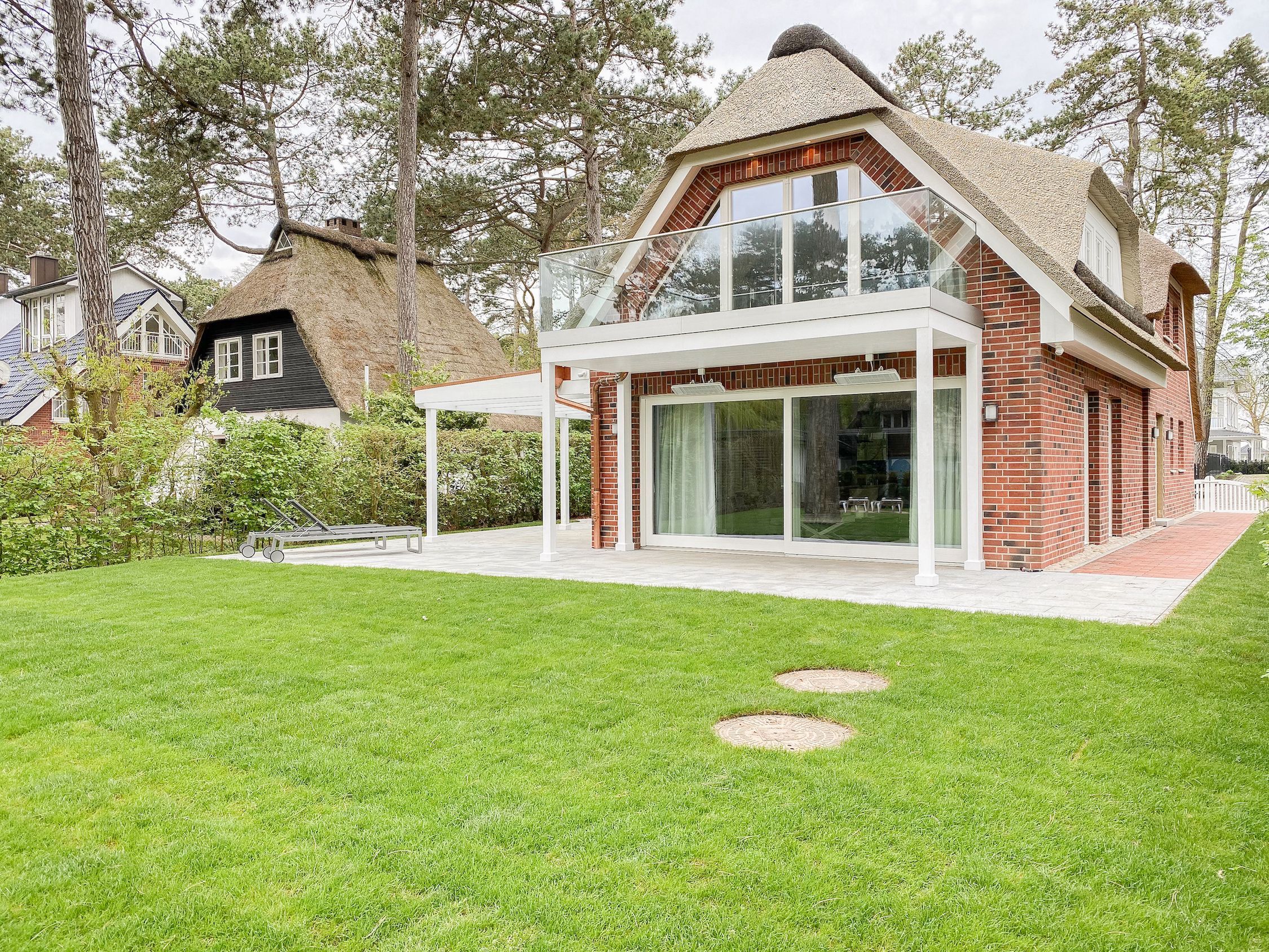 Zeitgemäßer Luxus in Perfektion. Das Captains Huus wurde aufwendig saniert ohne den ursprünglichen Charme zu verlieren. Dem Innenarchitekten ist es gelungen, unter Verwendung warmer Farben, hochwertiger Materialien und exklusivem Mobiliar, ein besonderes Ambiente zum Wohlfühlen zu schaffen, das höchsten Ansprüchen gerecht wird. Im Erdgeschoss erwartet Sie ein äußerst geschmackvoller Wohnbereich, lichtdurchflutet und mit herrlichem Blick in den großzügigen Garten in Südwest Ausrichtung. Es gibt zwei große Terrassen, überdacht und mit Heizstrahlern versehen, sodass auch an kühleren Abenden der wunderschöne Außenbereich genutzt werden kann. Selbstverständlich stehen hochwertige Gartenmöbel, Sonnenliegen und ein Gasgrill bereit. Der großzügig gestaltete Essbereich bietet ausreichend Platz für acht Personen und die anschließende Küche ist bestens ausgestattet. Eines der drei Schlafzimmer, ein exklusives Bad mit Walk In Dusche und zusätzlichem Bidet sowie ein weiterer Raum, in dem neben der Garderobe auch eine Waschmaschine und ein Trockner untergebracht sind, befinden sich ebenfalls im Erdgeschoss. Im Obergeschoss sind zwei weitere großzügige Schlafzimmer und ein traumhaftes Bad mit Ostseeblick, freistehender Badewanne, Walk In Dusche und Doppelwaschtisch, untergebracht. Alle Schlafzimmer sind mit Boxspringdoppelbetten (180x200), TV und Verdunkelungsrollos ausgestattet. Das Haus verfügt über eine Fußbodenheizung.