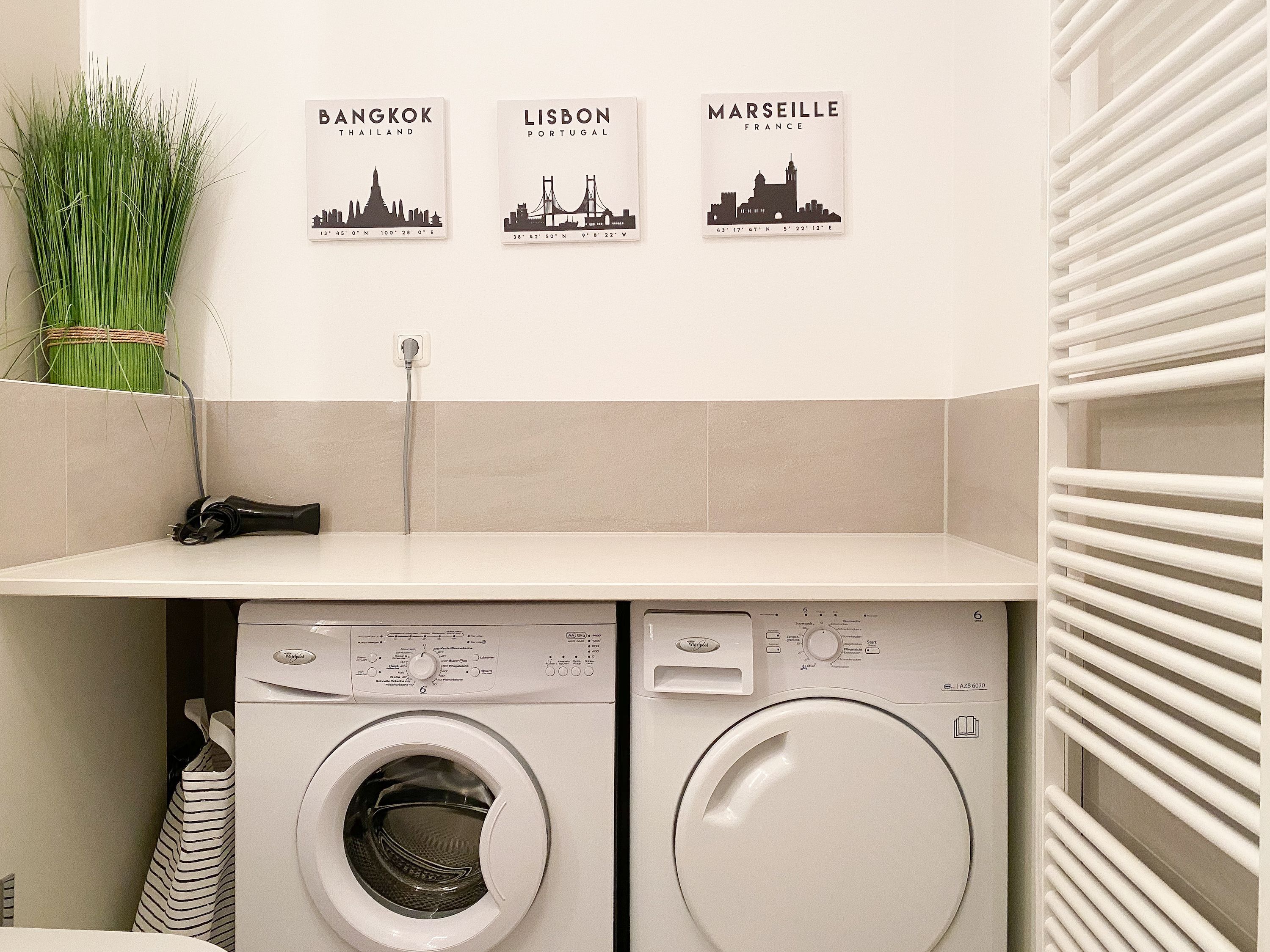 Das Haus am Meer verfügt über einen Fahrstuhl und eine Tiefgarage (Einfahrtshöhe 2 m), in der ein Stellplatz reserviert ist. Ein Fahrradkeller, Münzwaschmaschine und -Trockner sind vorhanden.